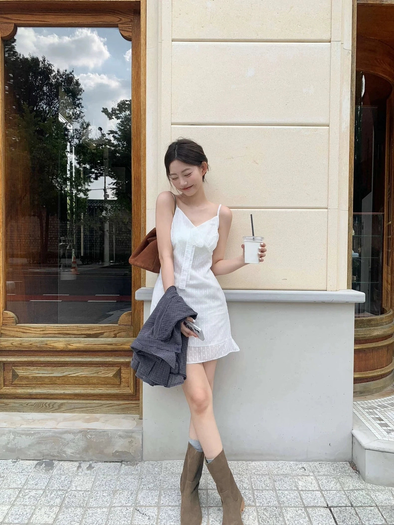 한국 동대문 2026 새로운 한 부서 부드러운 순수한 욕망 레이스 레이스업 루즈핏 V넥 슬립 드레스 드레스
