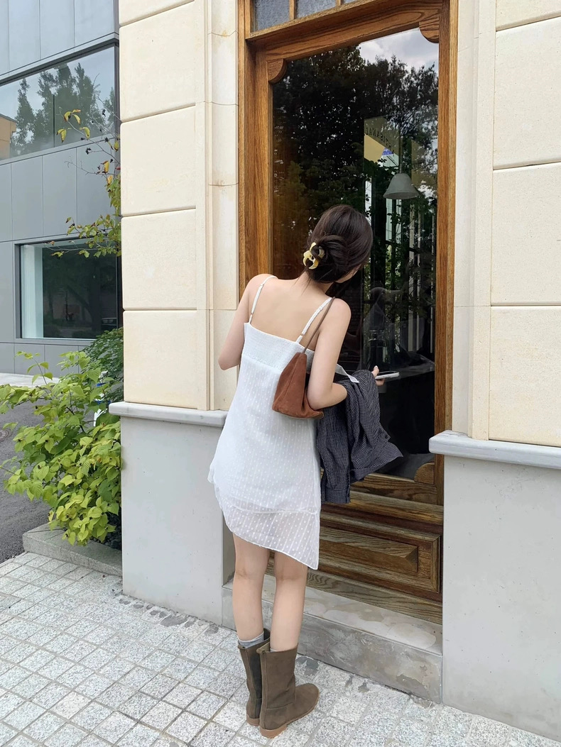한국 동대문 2026 새로운 한국 스타일 프랑스식 불규칙 드레스 슬립 여성