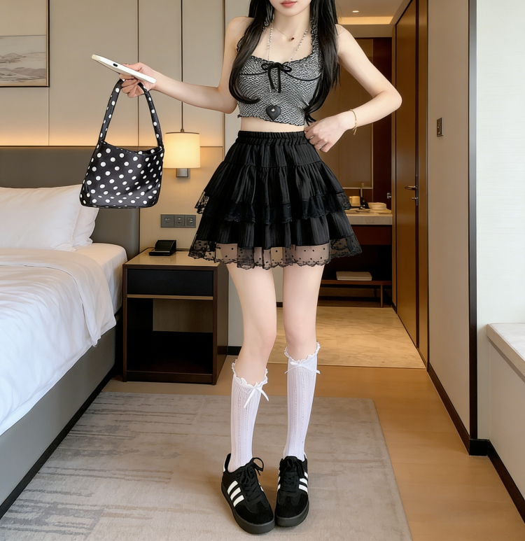 실사 지방 mm 발레 바람 레이스 레이스 퍼프 반신 스커트 여성 여름 하이웨이스트 한 마디 달콤함 케이크 짧은 치마