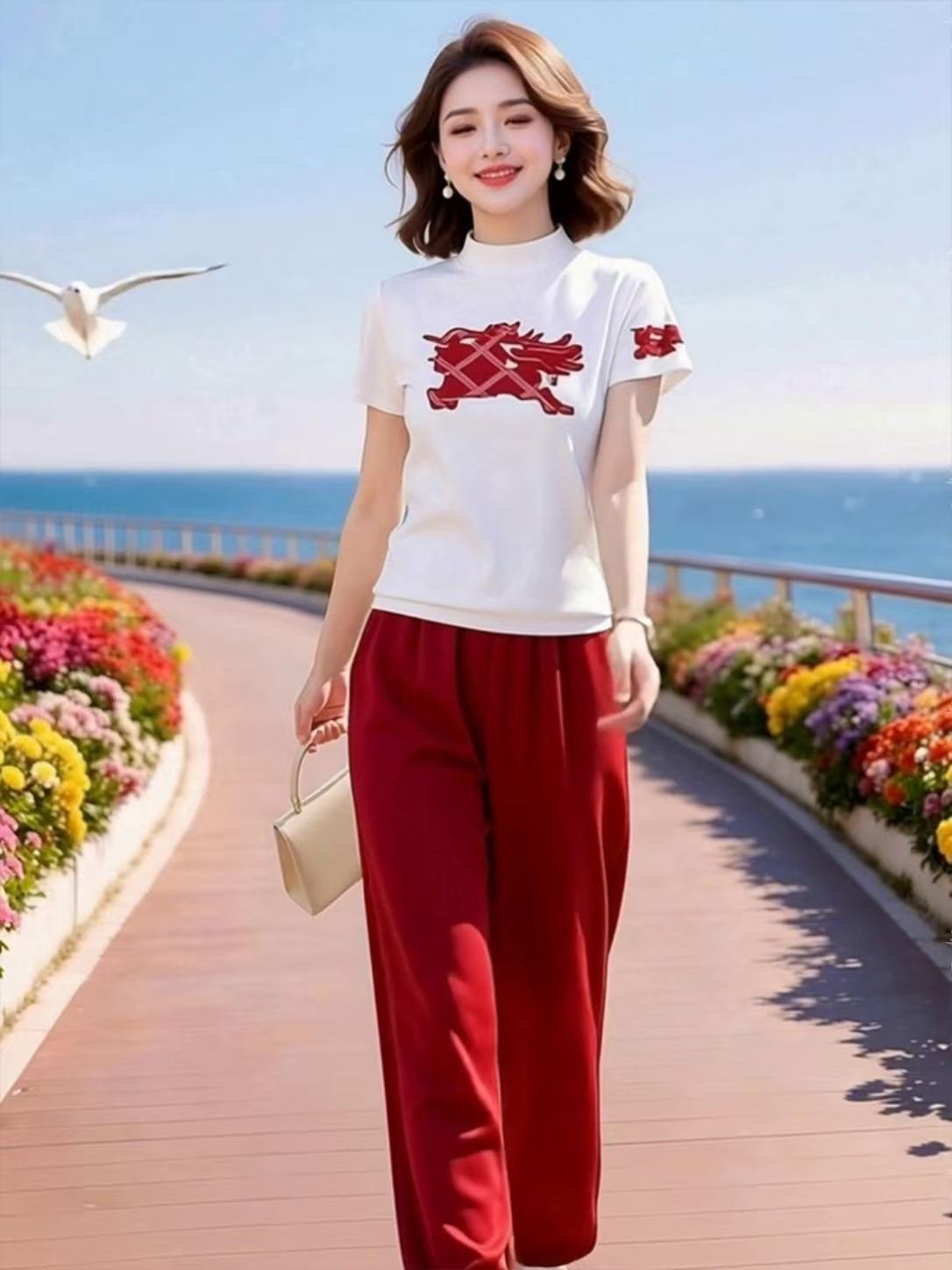 2026 문예 국풍 맨위 꽃무늬 반 스커트 품격 세트 여름 새로운