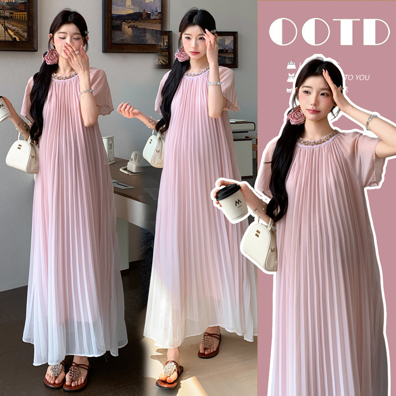 실사 지금 지금 여름 드레스 새로운 출산 착용 백퍼센트 그라데이션 우아한 요정 임산부 드레스