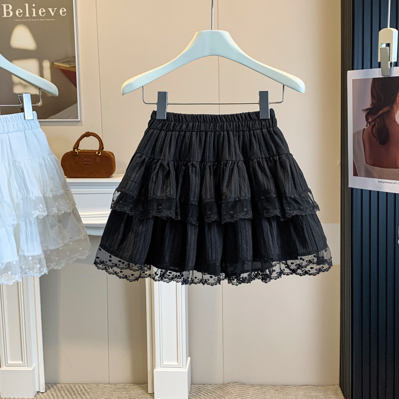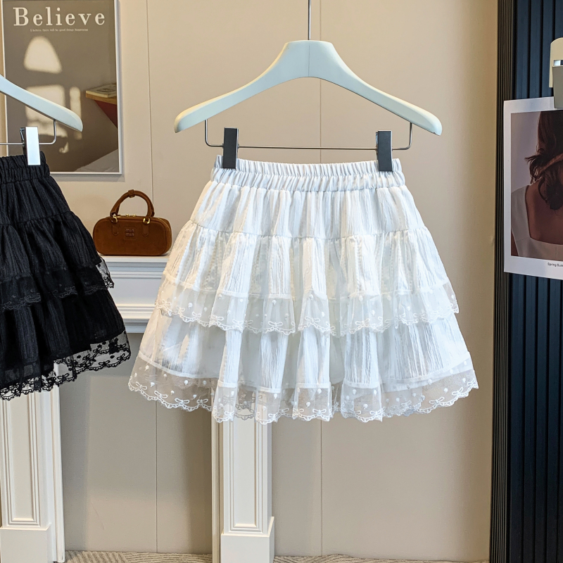 실사 지방 mm 빅 사이즈 레이스 레이스 반신 스커트 케이크 드레스 여성 하이웨이스트 노출 방지 퍼프 스커트 미니 스커트