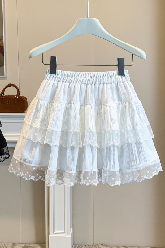 실사 지방 mm 발레 바람 레이스 레이스 퍼프 반신 스커트 여성 여름 하이웨이스트 한 마디 달콤함 케이크 짧은 치마