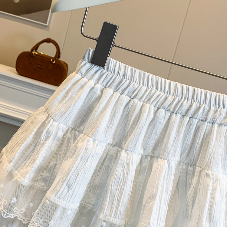 실사 지방 mm 빅 사이즈 화이트 목이버섯 레이스 케이크 반신 스커트 여성 여름 슬림해 보이는 하이웨이스트 한 마디 ins 짧은 치마
