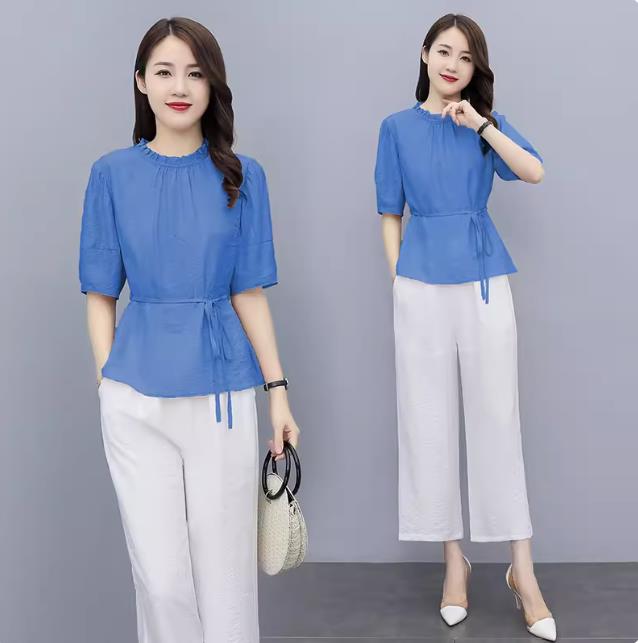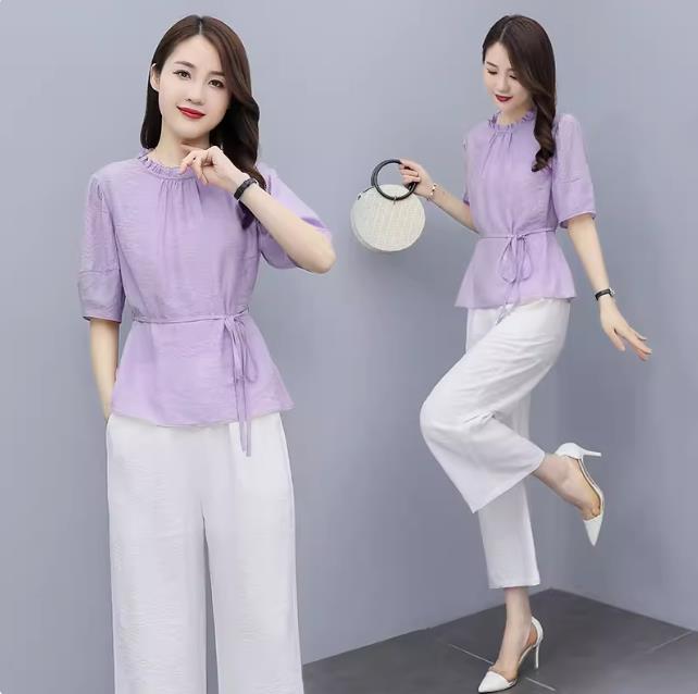 면 린넨 캐주얼 세트 여성 여름 고급 센스 품격 슬림해 보이는 작은 키 외국 가스 연령 감소 아마 패션 투피스 세트