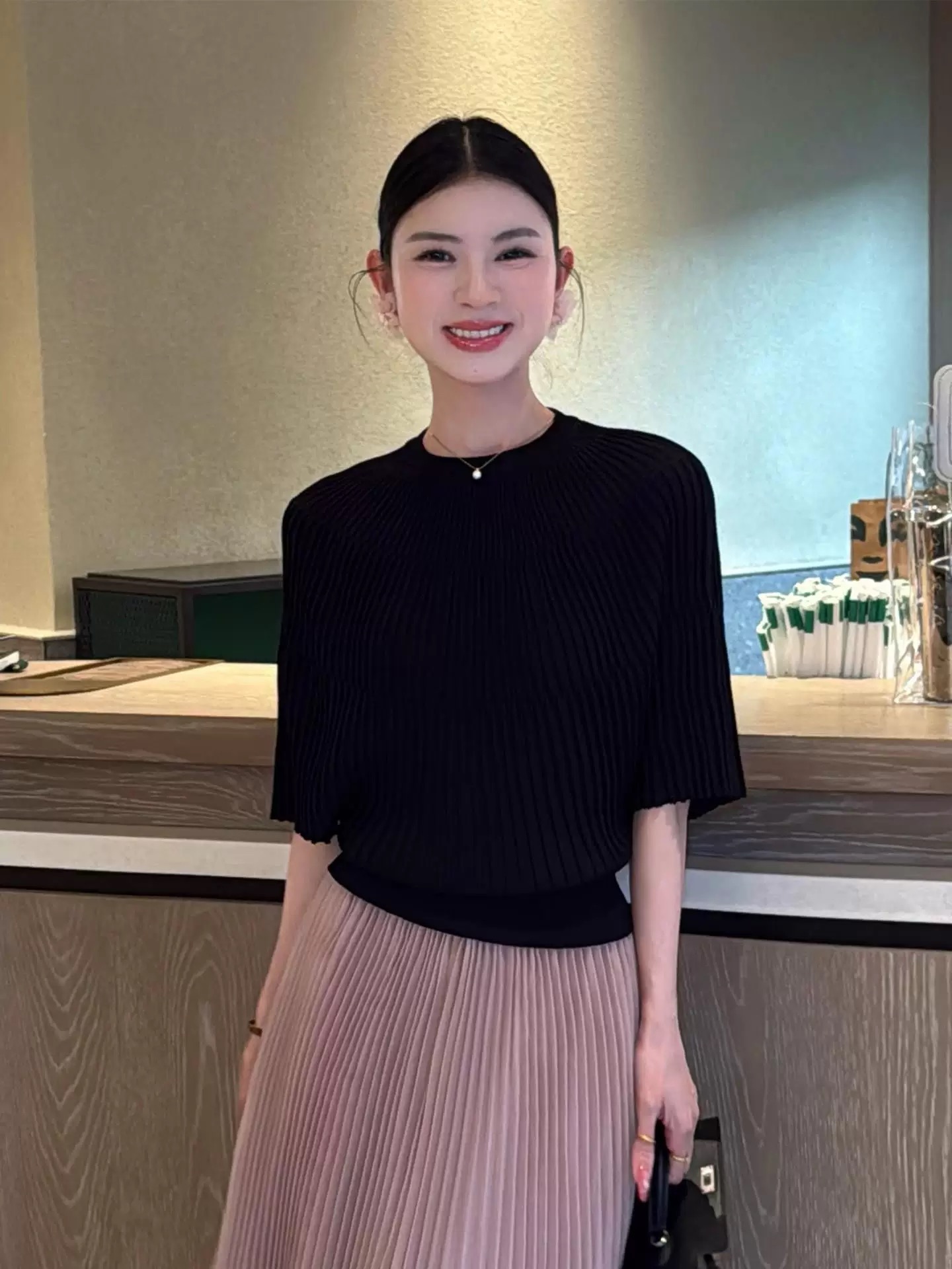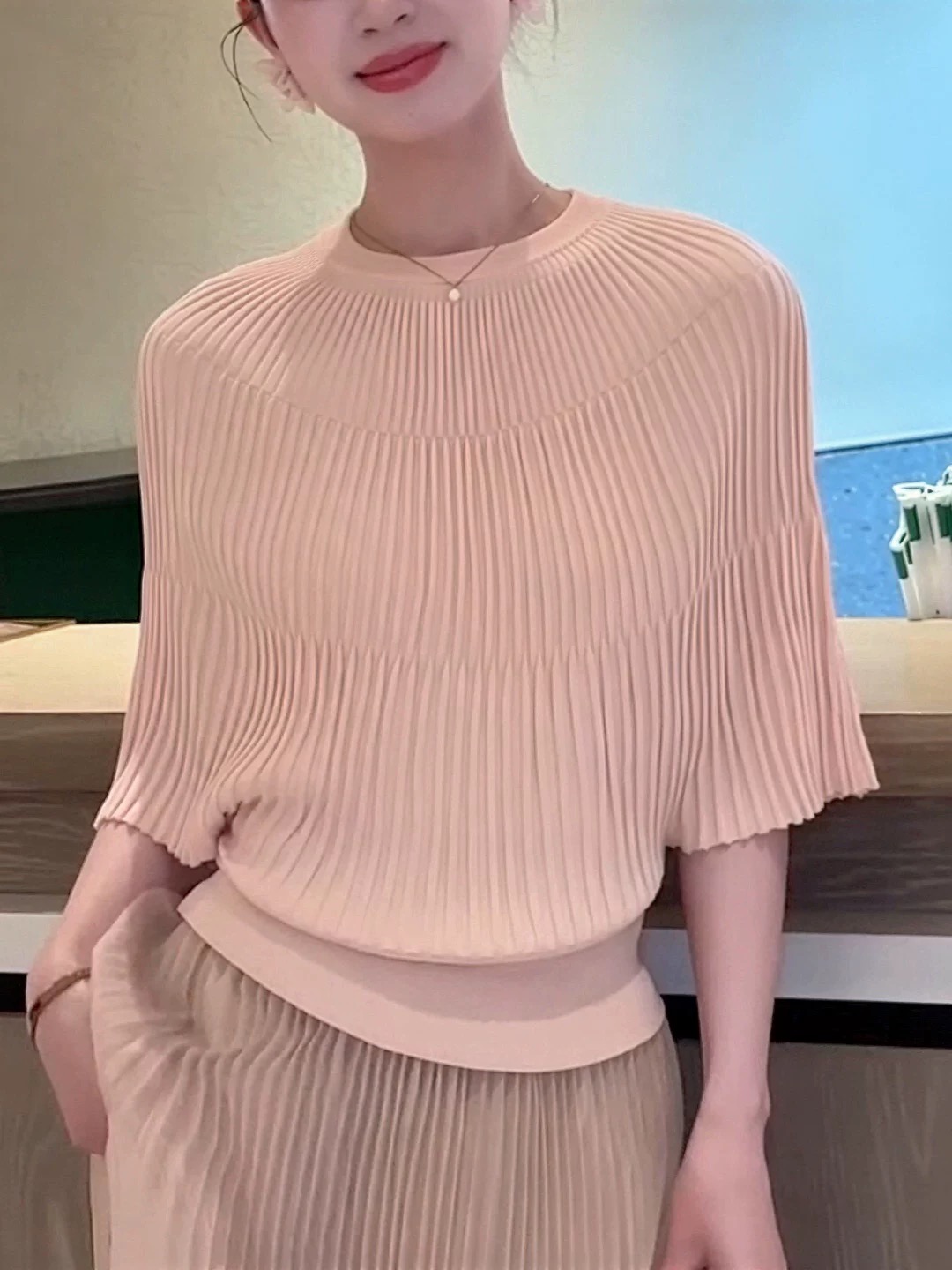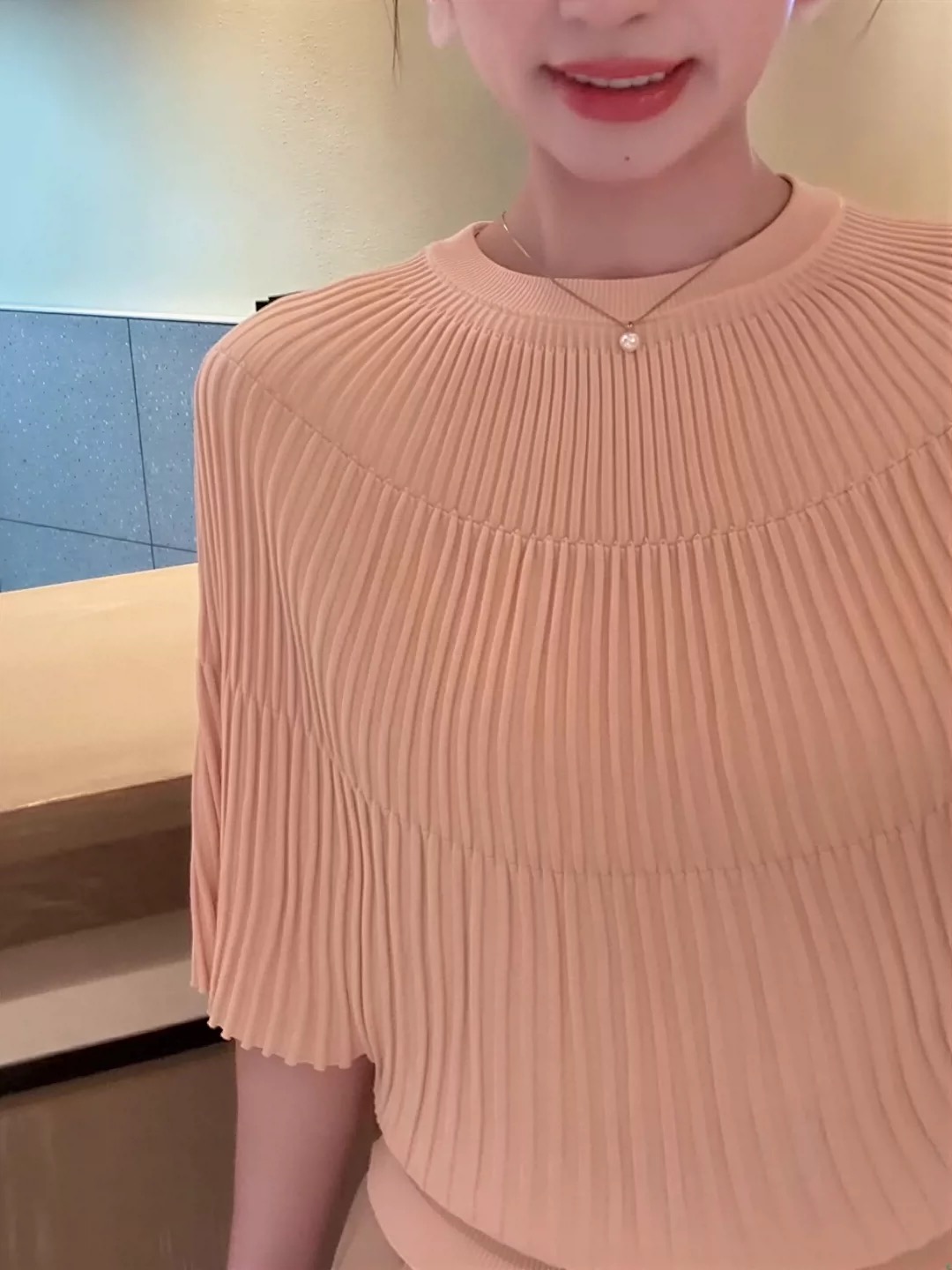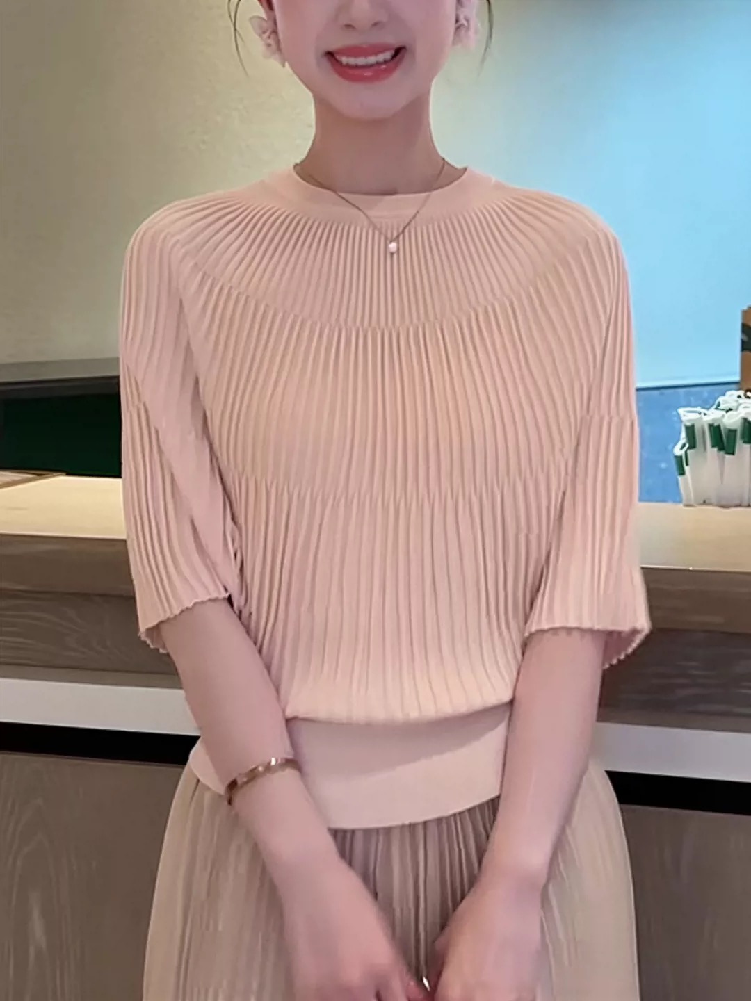 한 부서 착용 가져 가라. 반팔 니트 스웨터 여성 2026 새로운 여름 얇은 스타일 작은 셔츠 패션 슬림해 보이는 표지 고기 품격 맨위