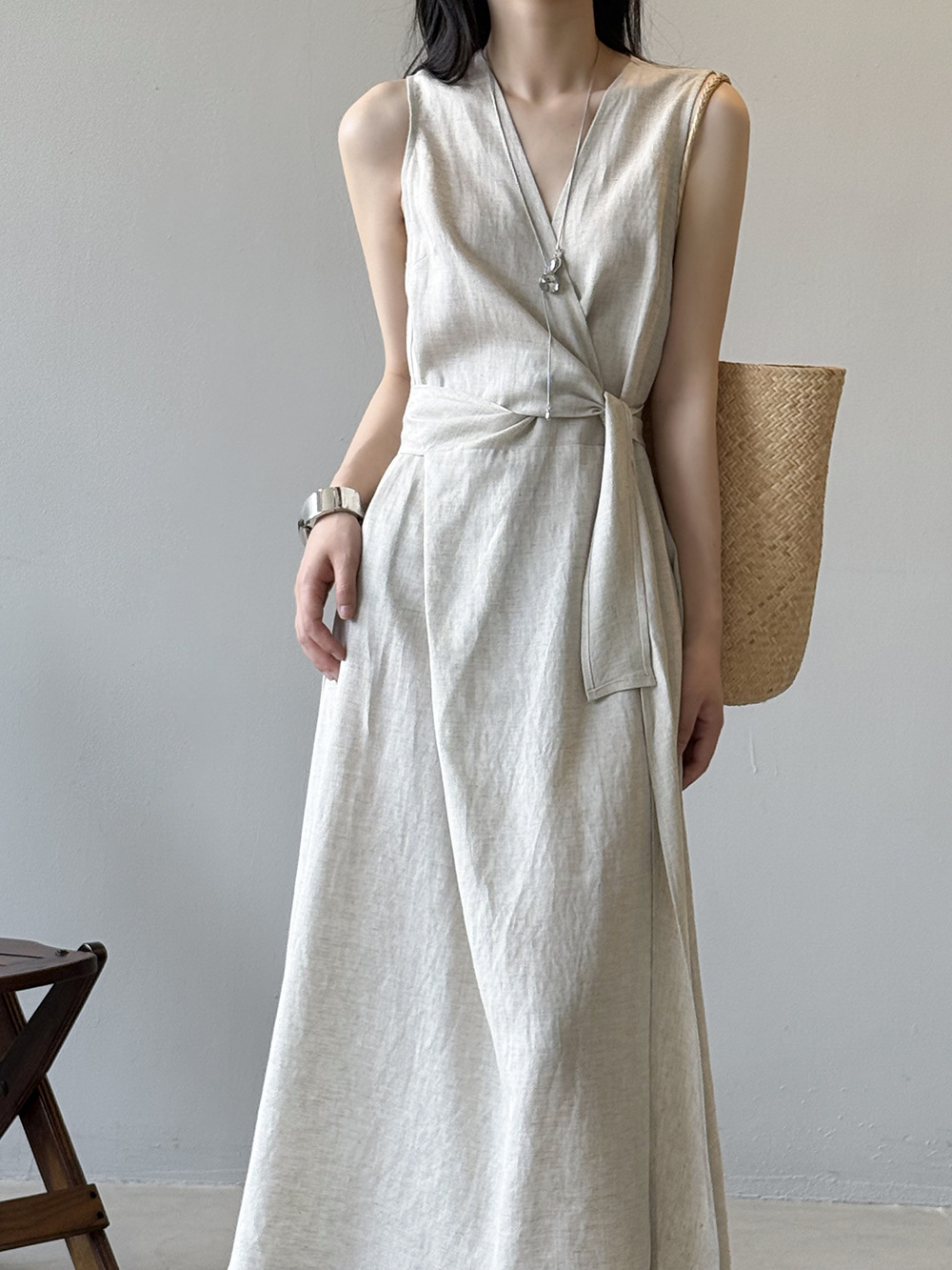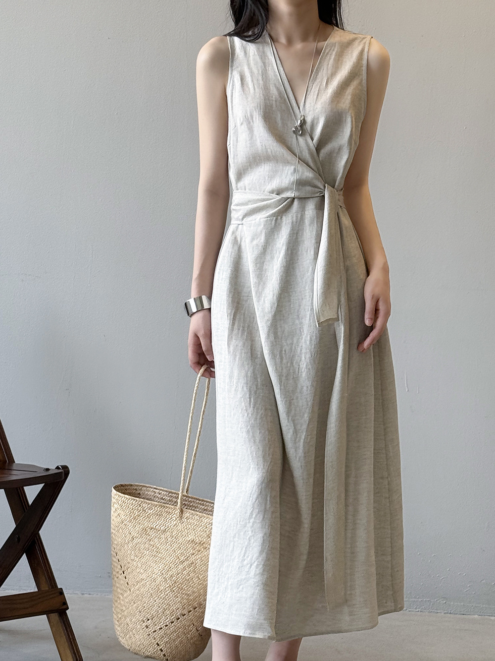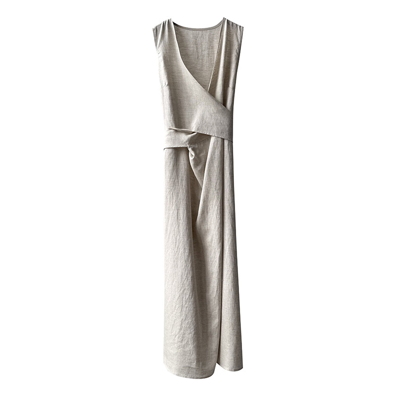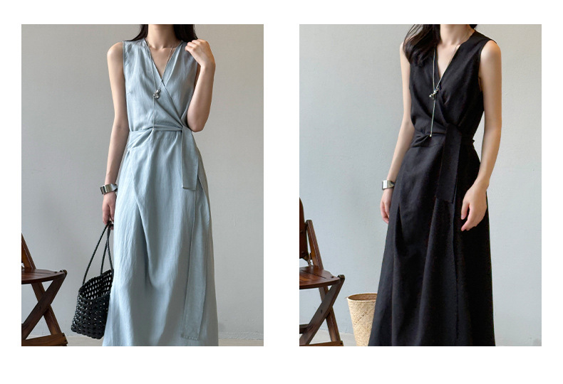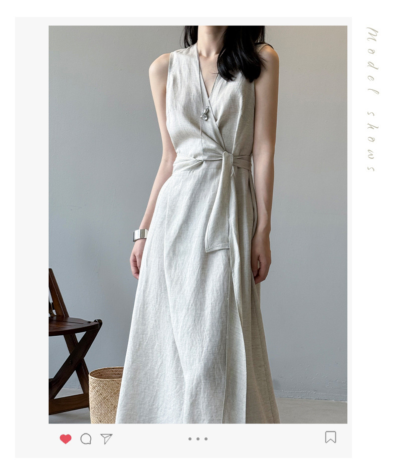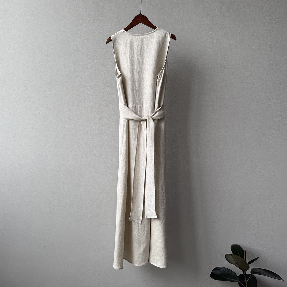 오래된 돈 바람 V넥 아마 스트랩 허리 수축 민소매 맨위 캐주얼 바지 여름 새로운 투피스 세트