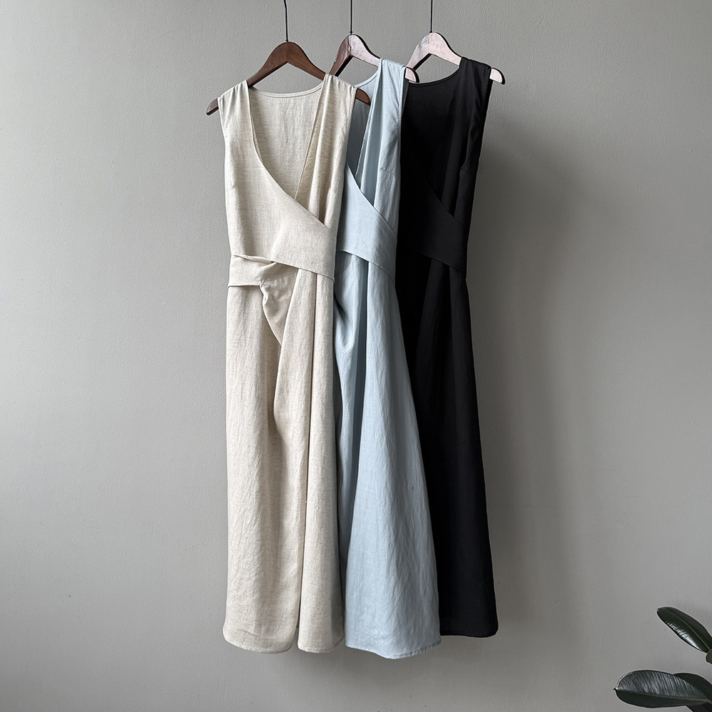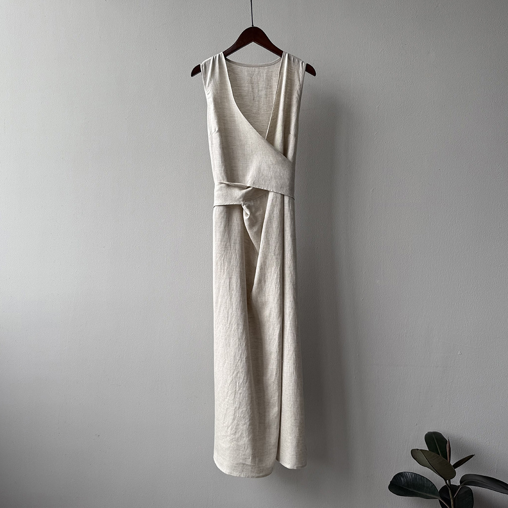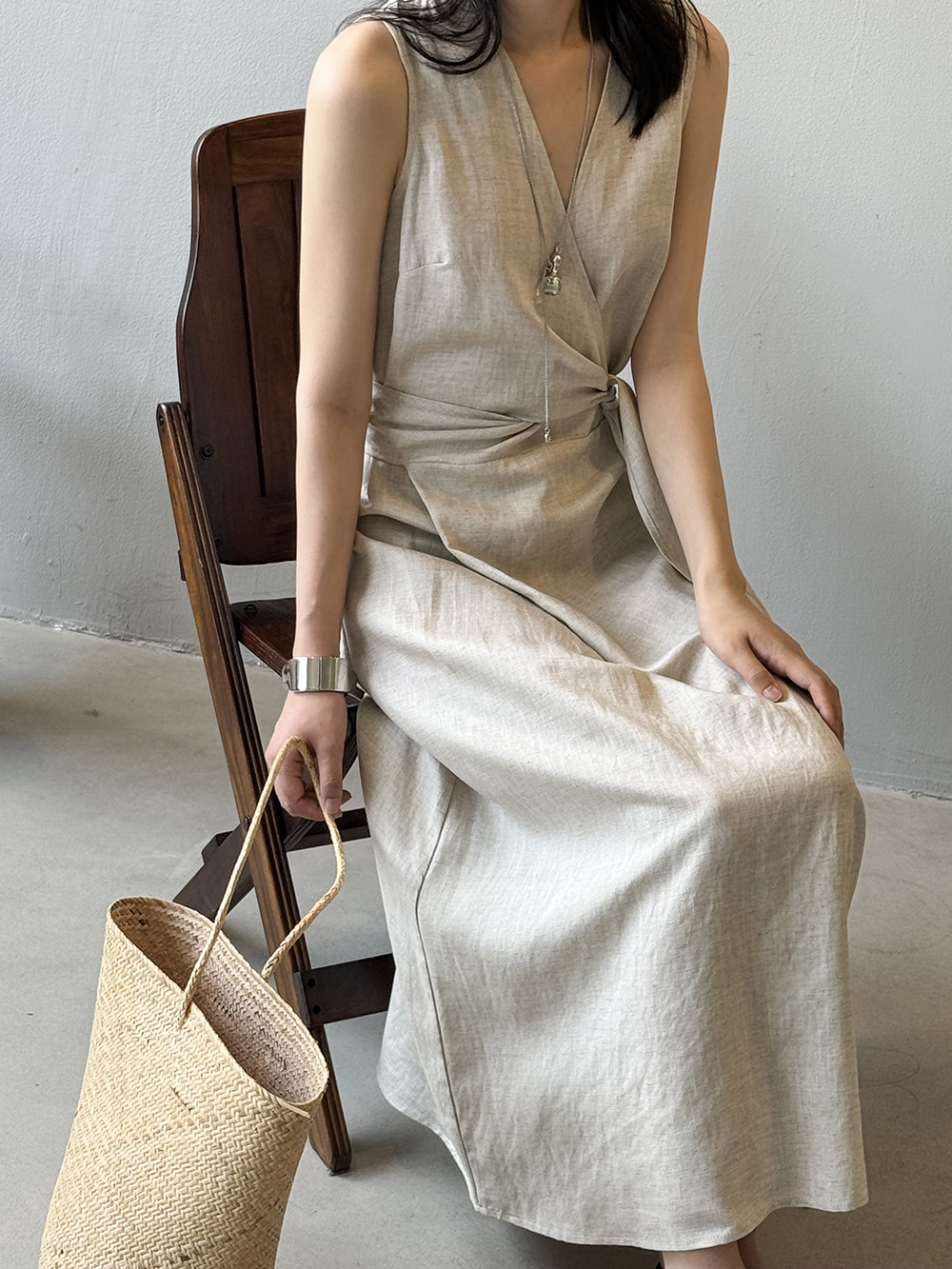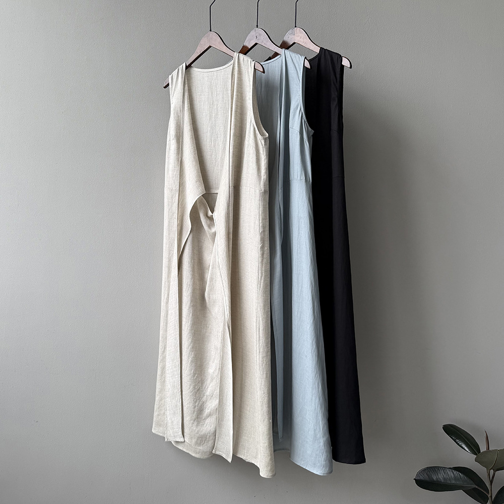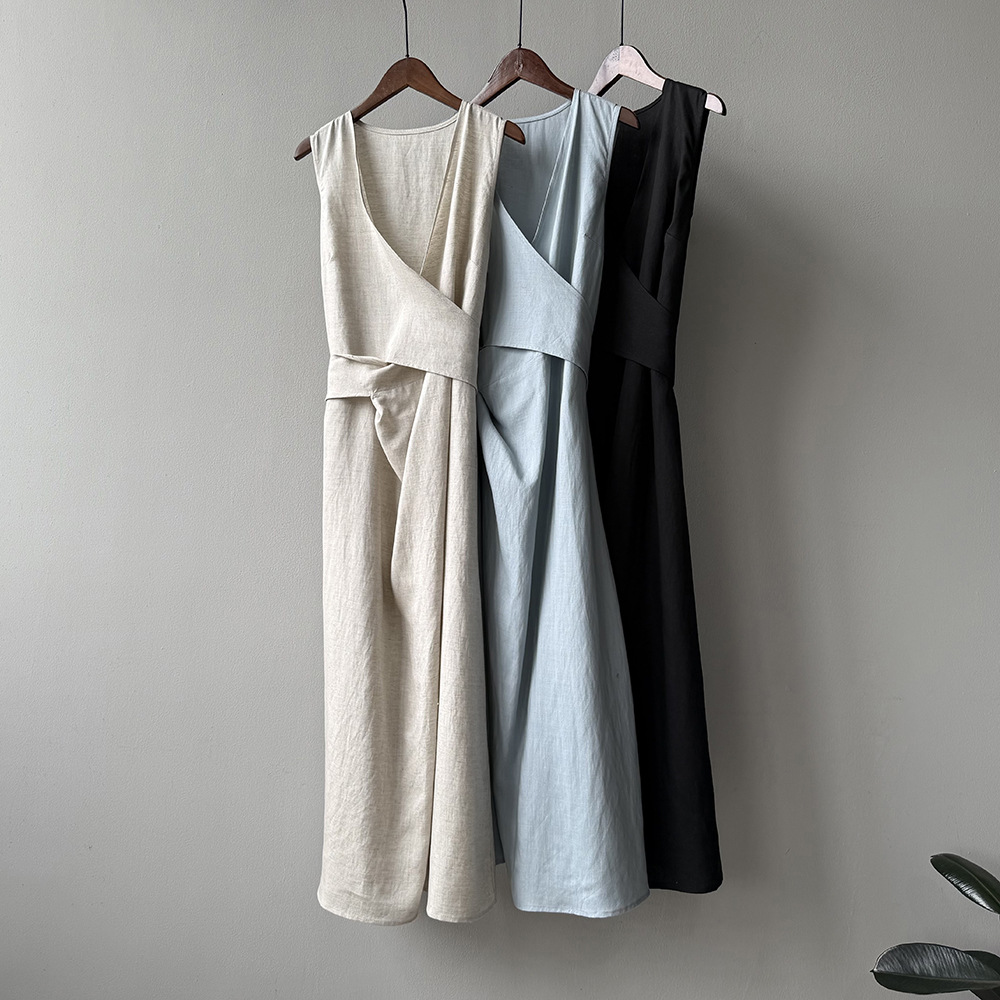 오래된 돈 바람 V넥 아마 스트랩 허리 수축 민소매 맨위 캐주얼 바지 여름 새로운 투피스 세트