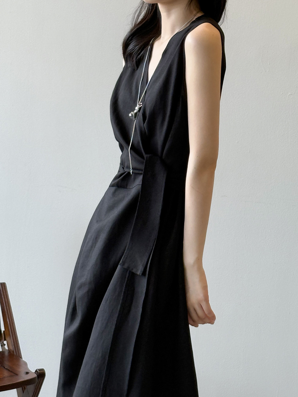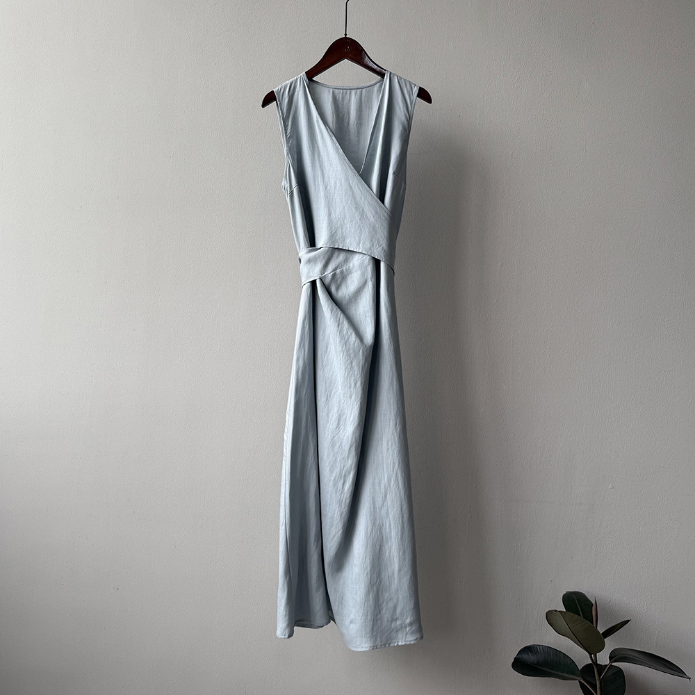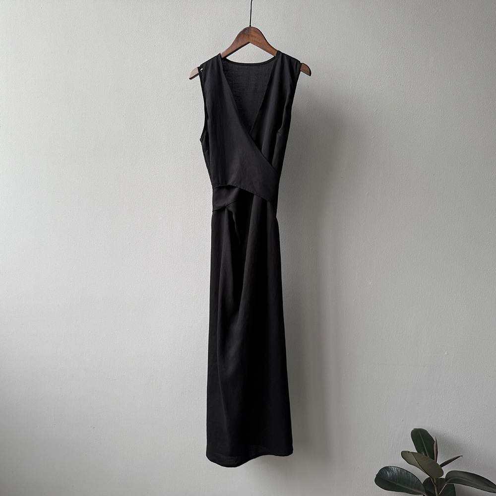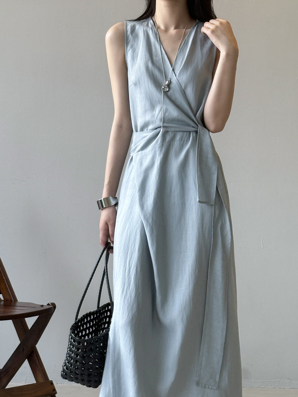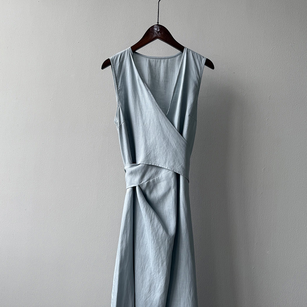 오래된 돈 바람 V넥 아마 스트랩 허리 수축 민소매 맨위 캐주얼 바지 여름 새로운 투피스 세트