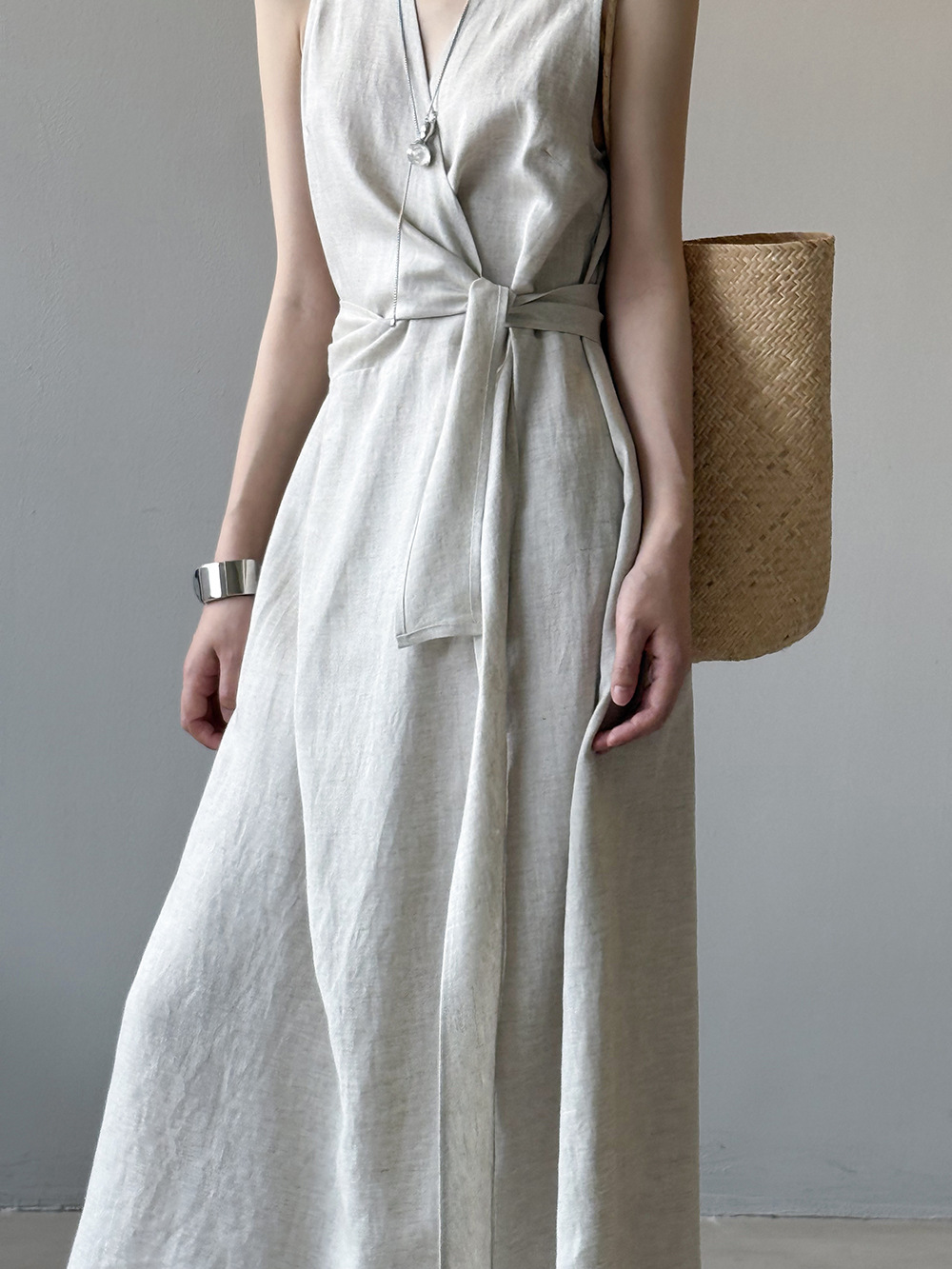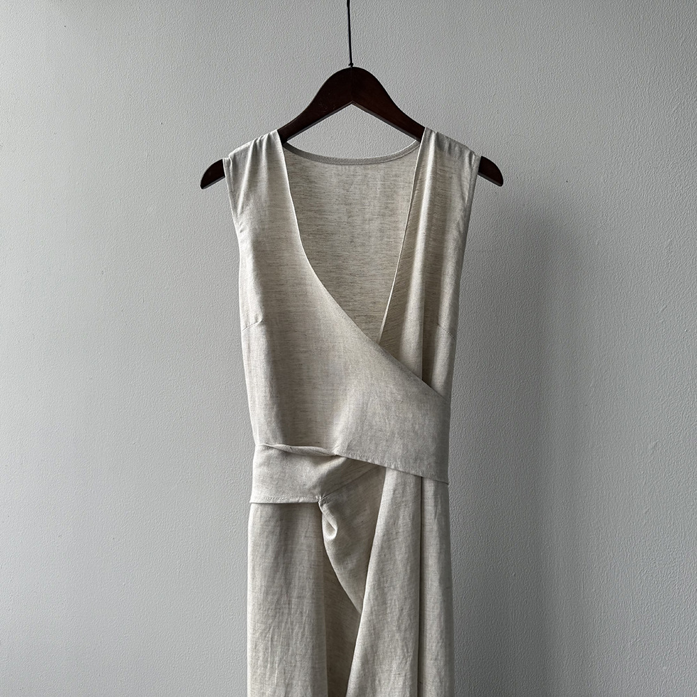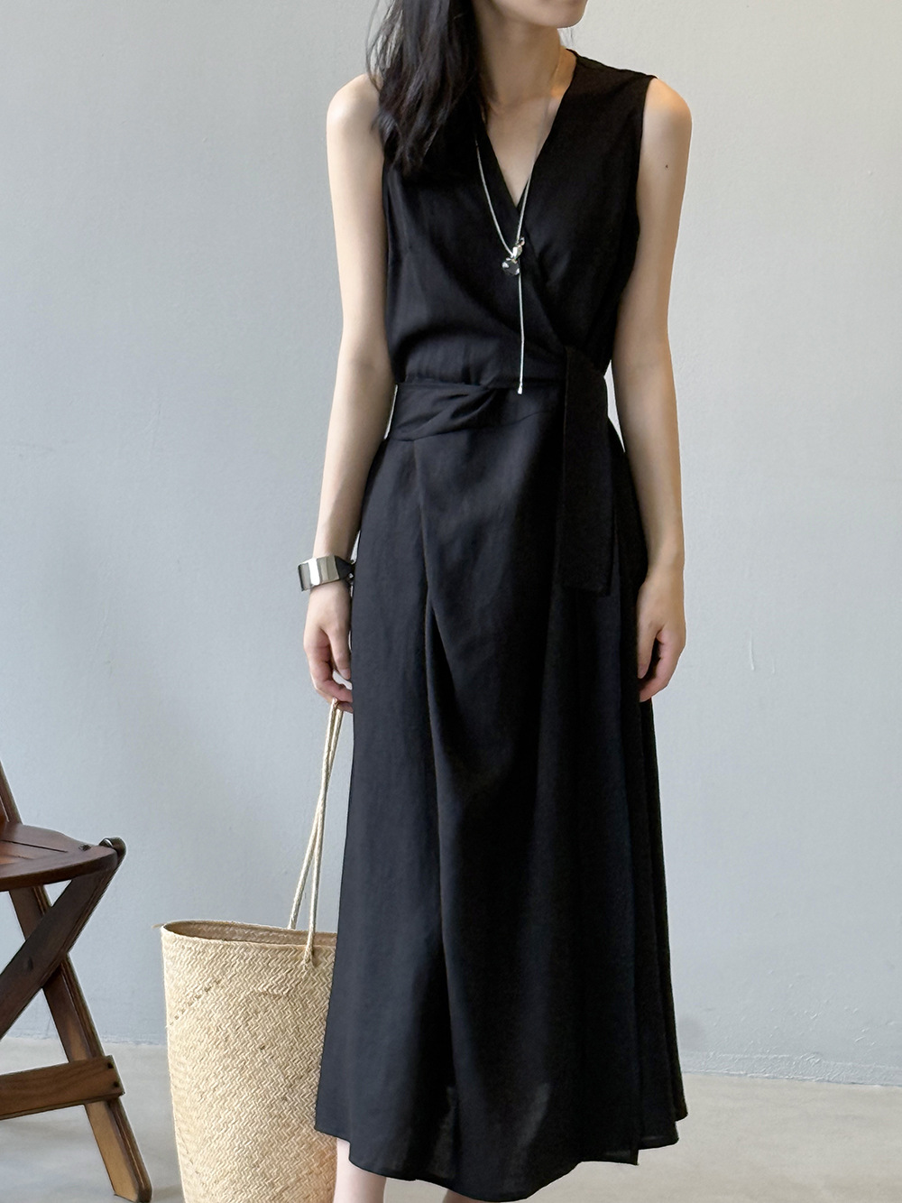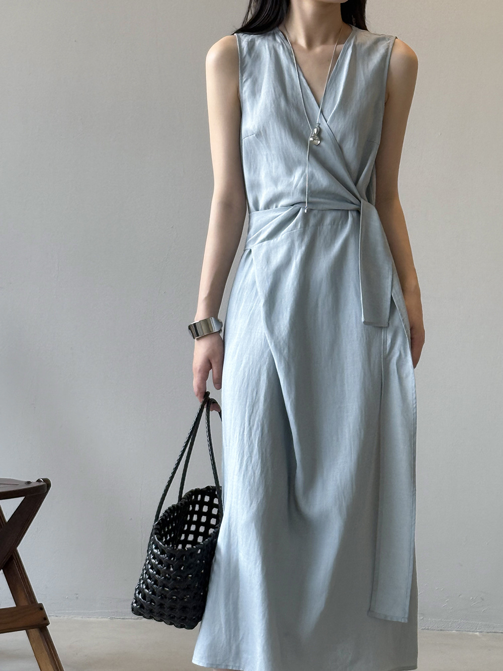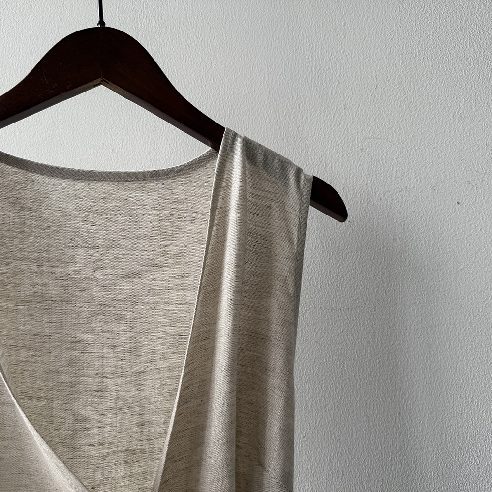 오래된 돈 바람 V넥 아마 스트랩 허리 수축 민소매 맨위 캐주얼 바지 여름 새로운 투피스 세트