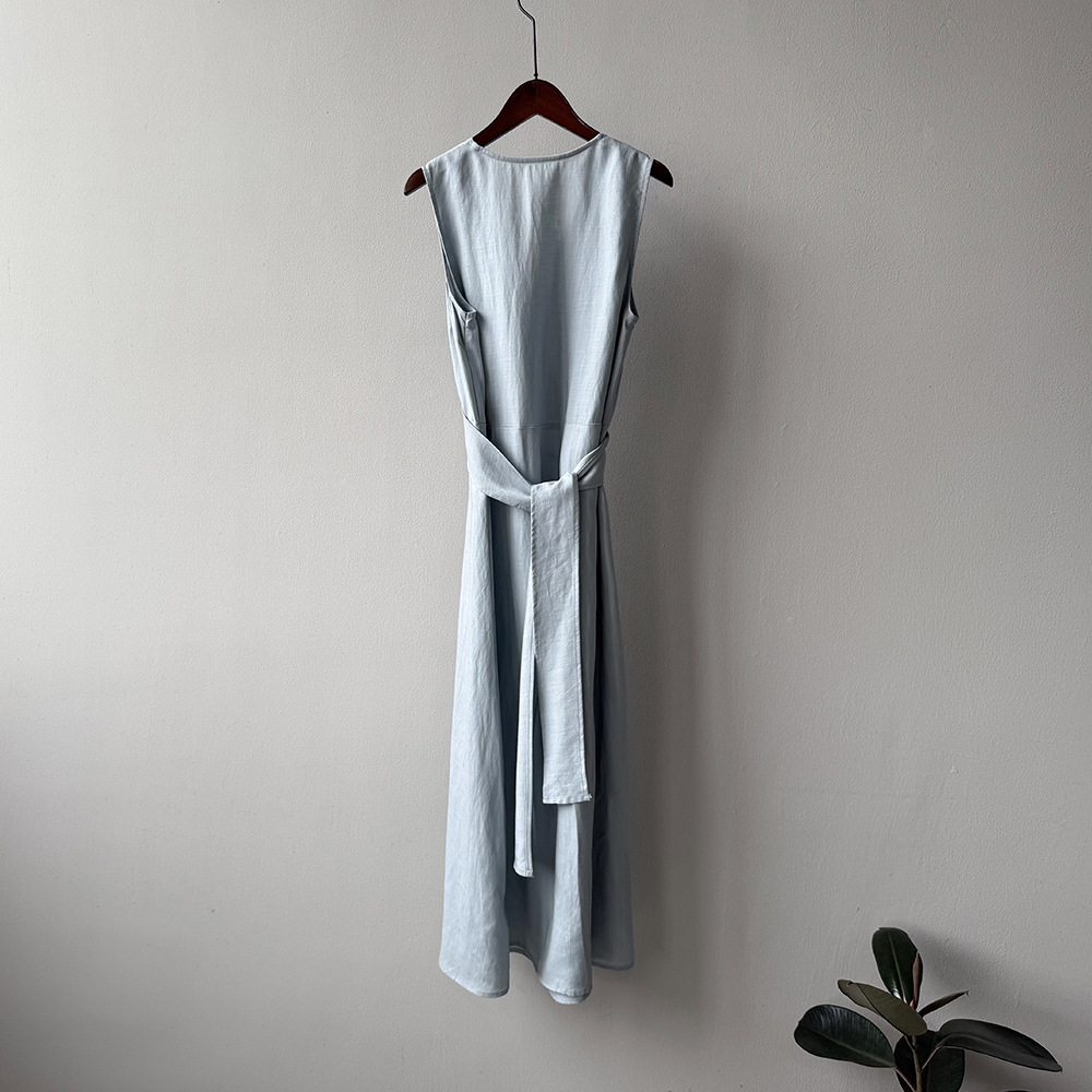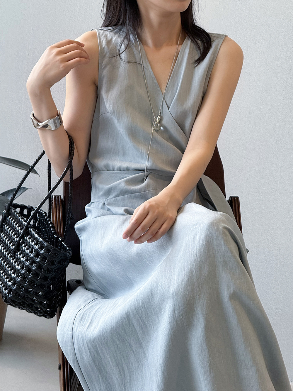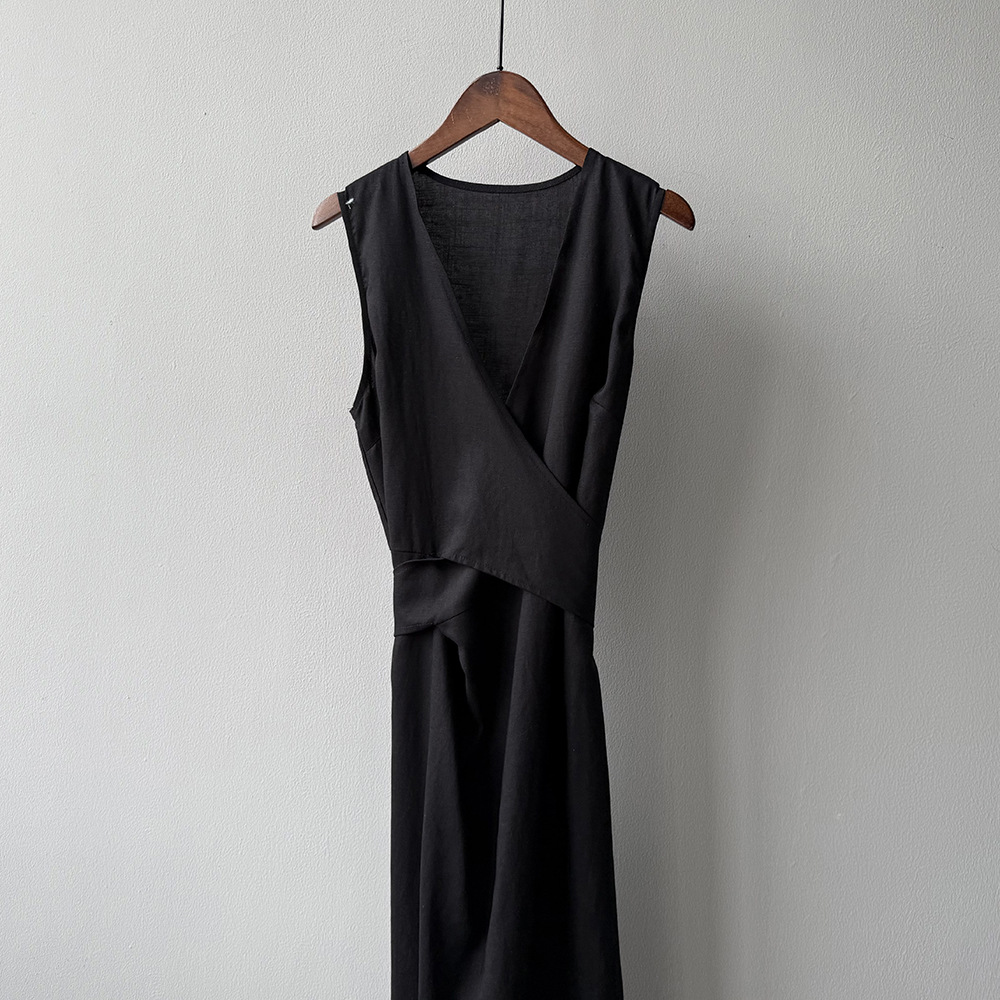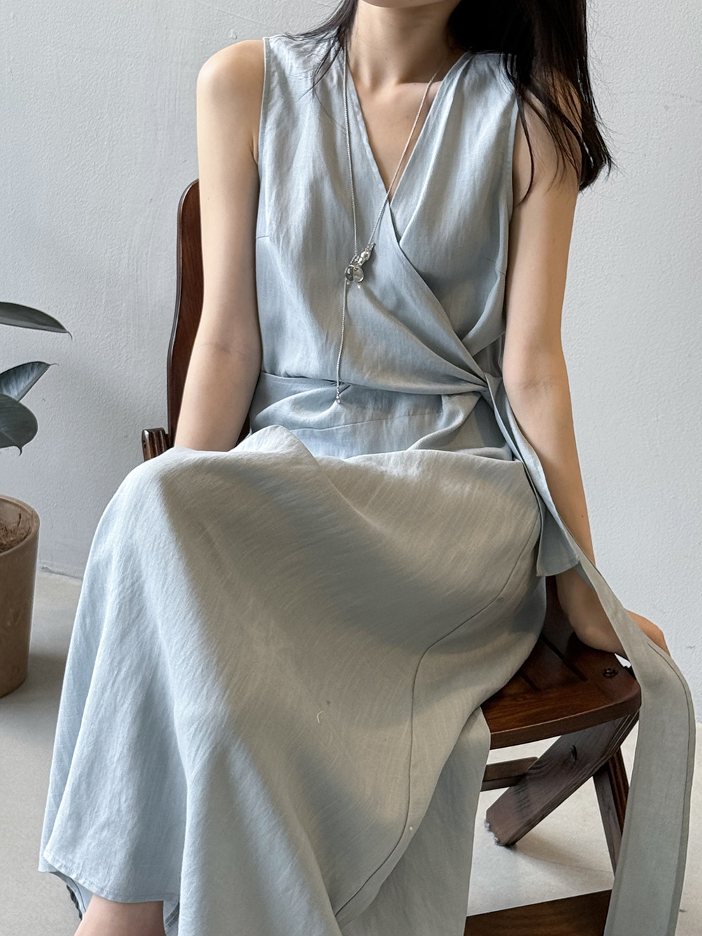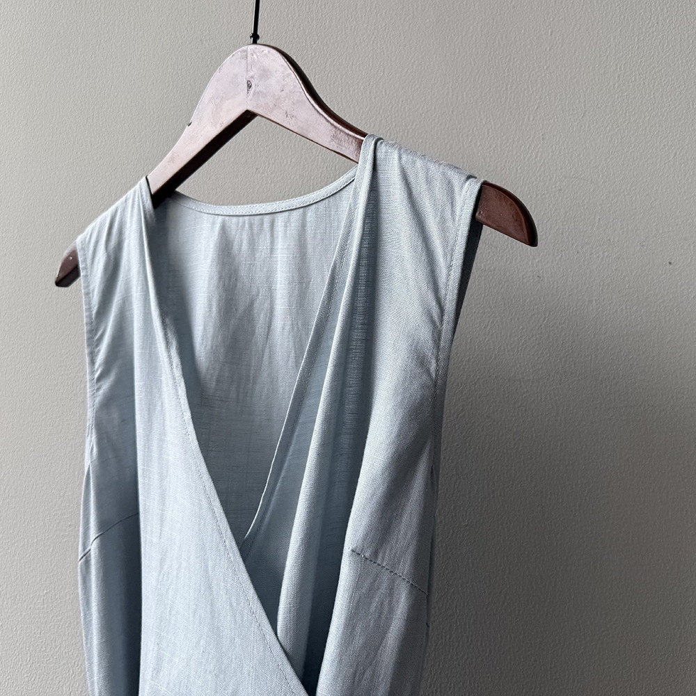 오래된 돈 바람 V넥 아마 스트랩 허리 수축 민소매 맨위 캐주얼 바지 여름 새로운 투피스 세트