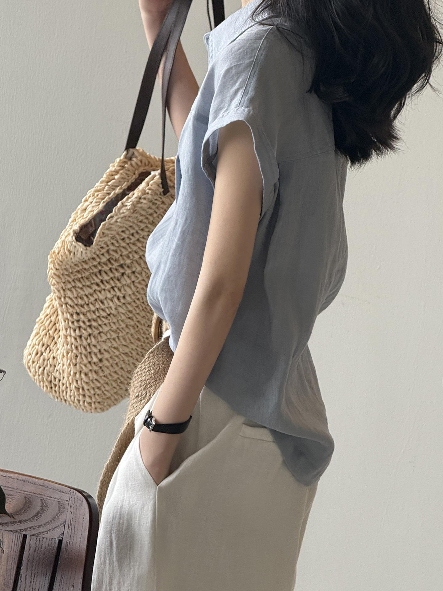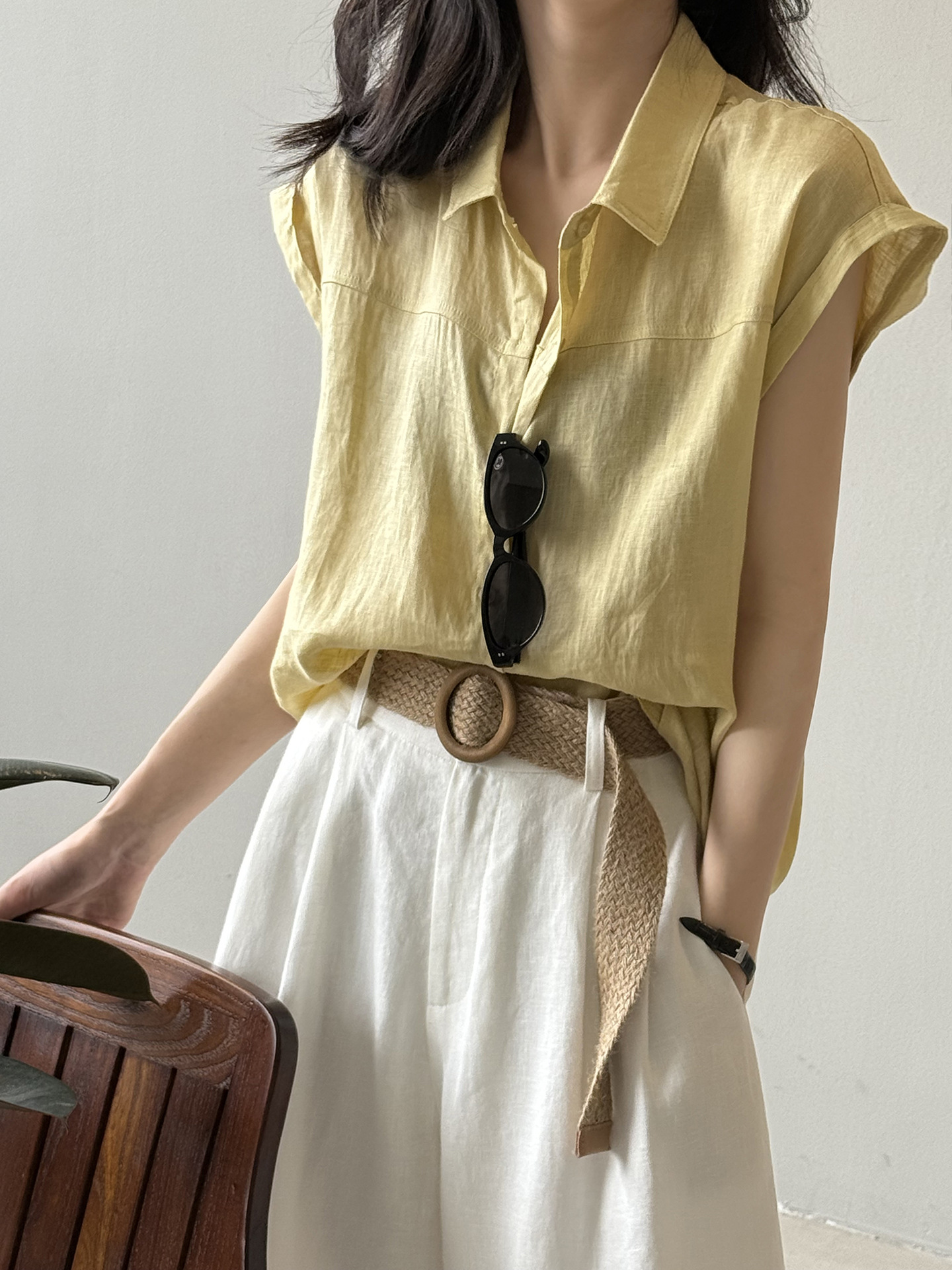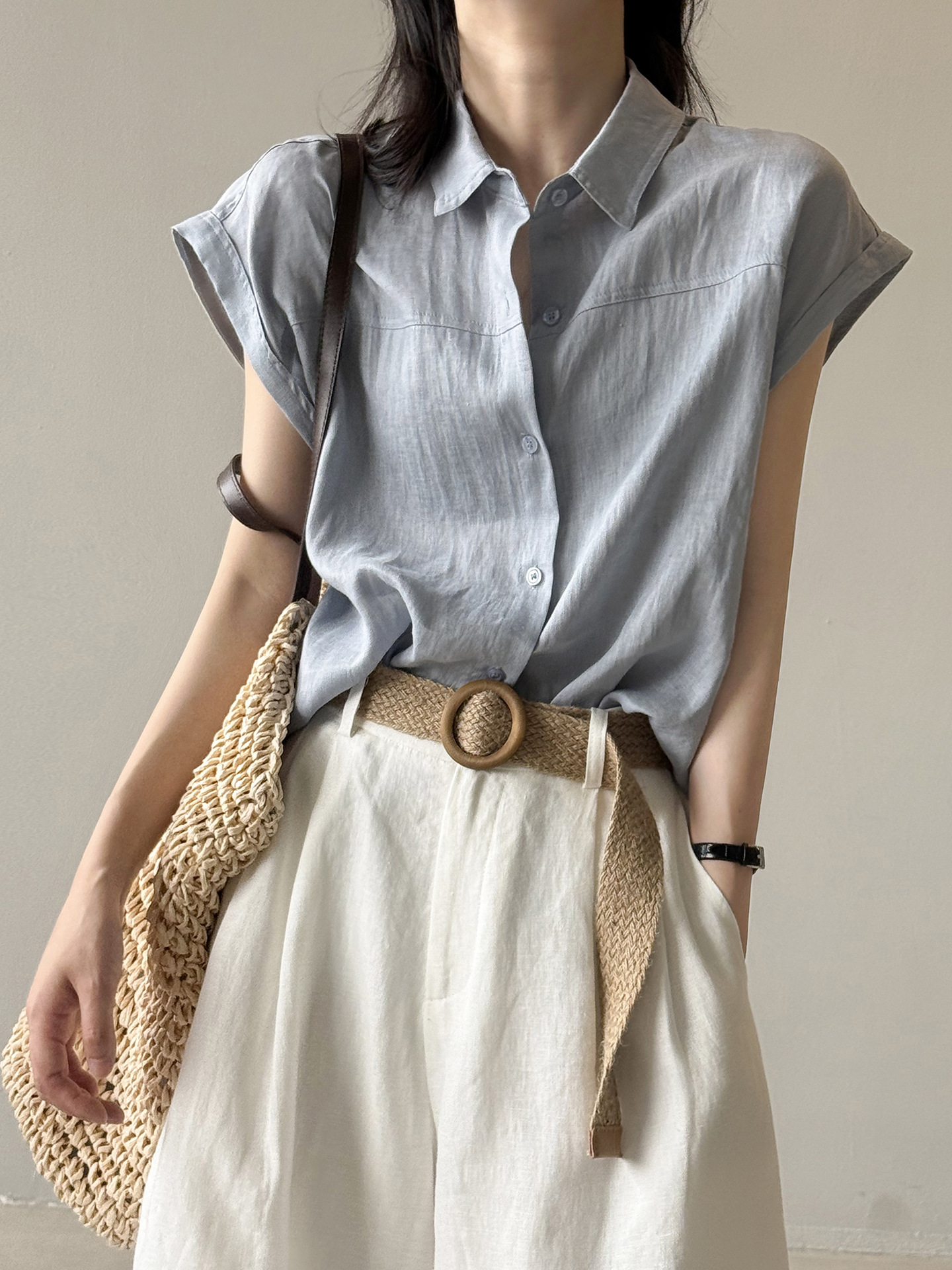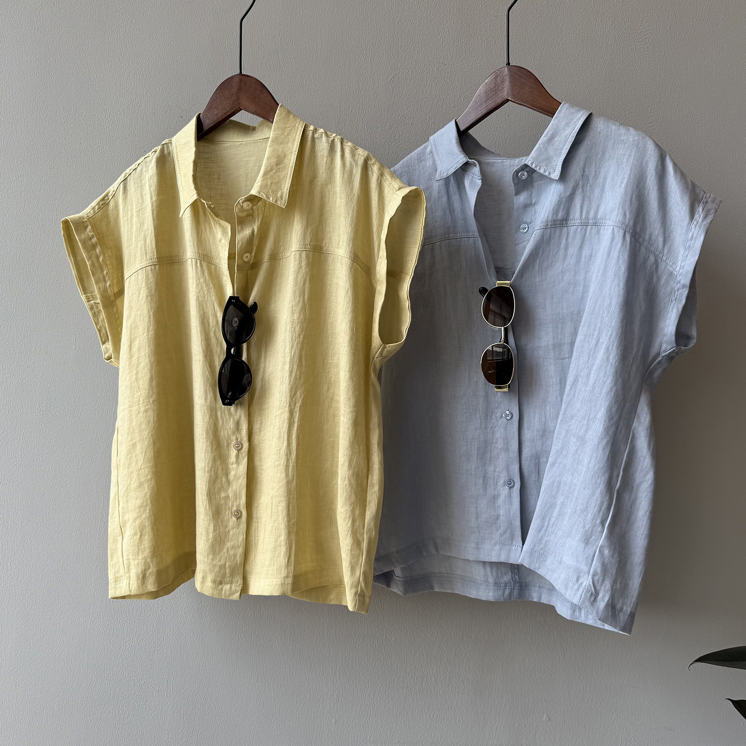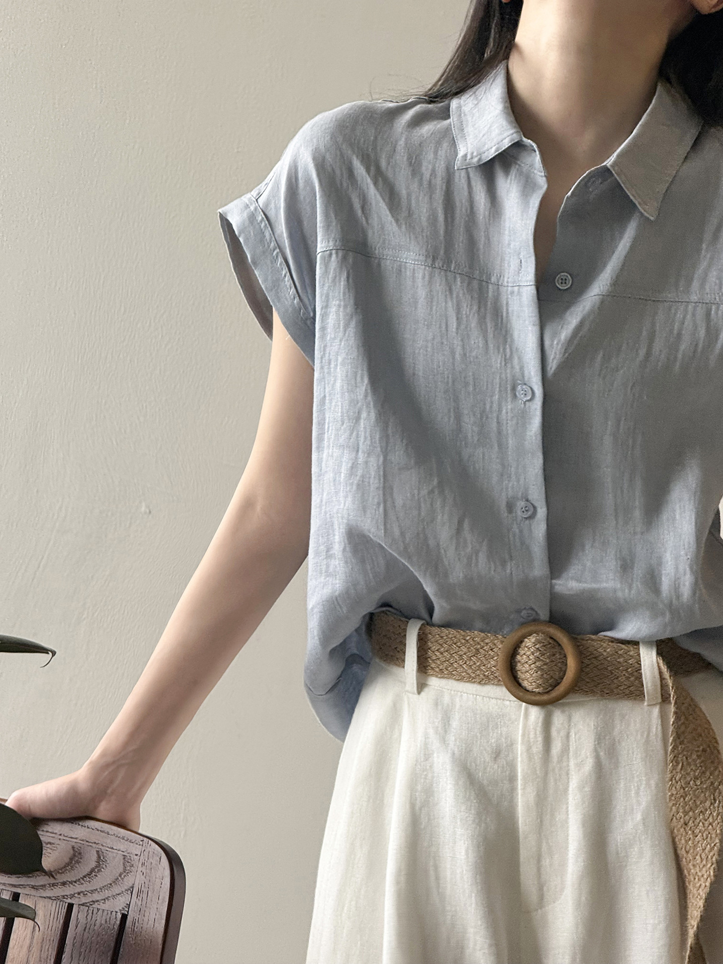 한 부서 순수 린넨 Feifei 소매 여성 셔츠 여름 단색 루즈핏 슬림해 보이는 Chic 작은 셔츠 맨위