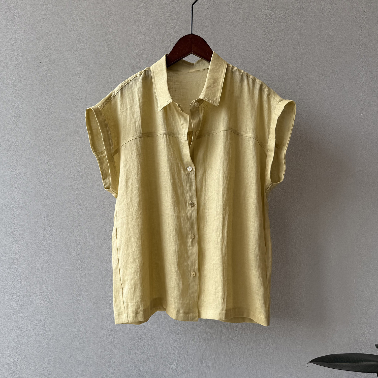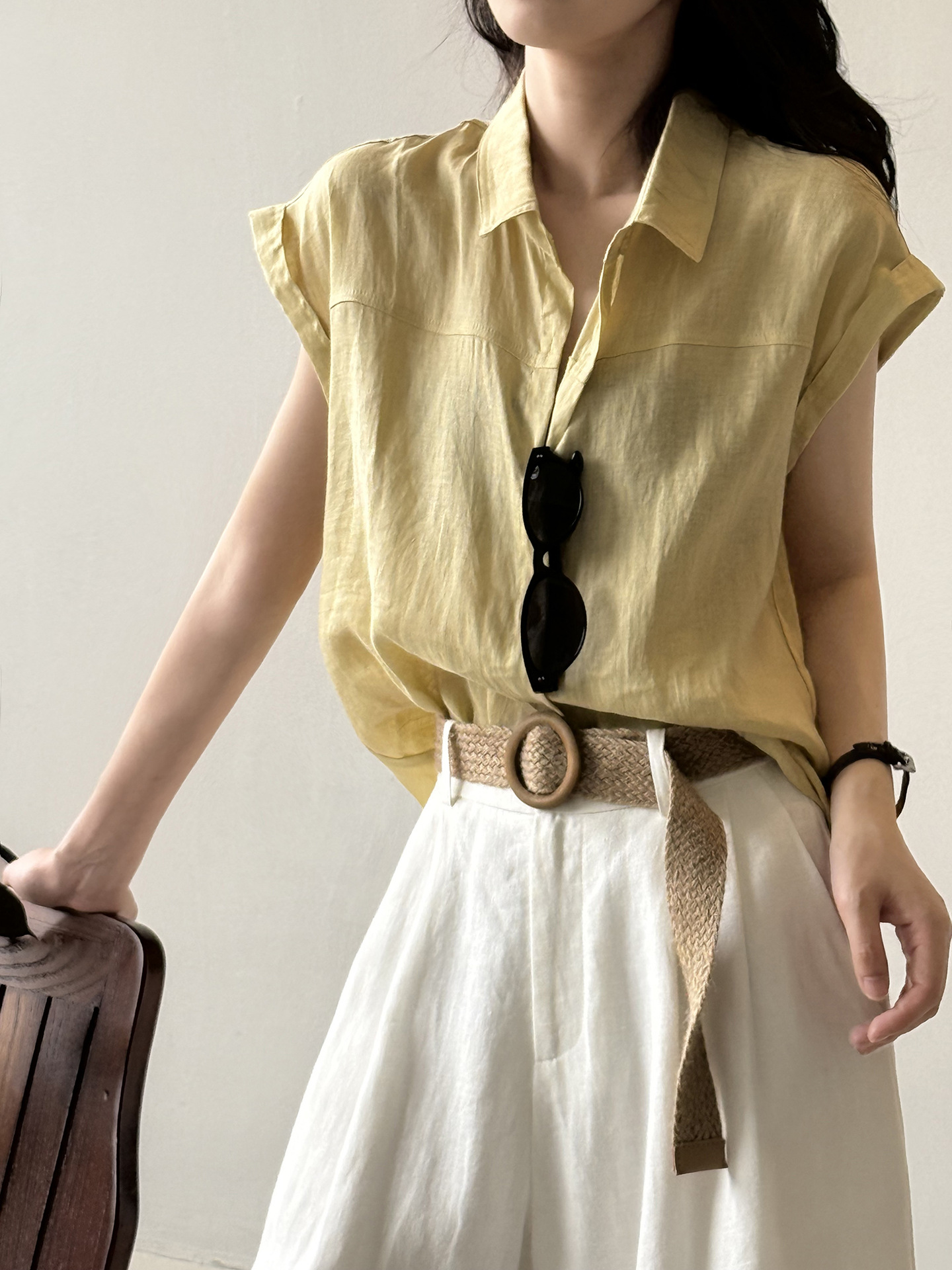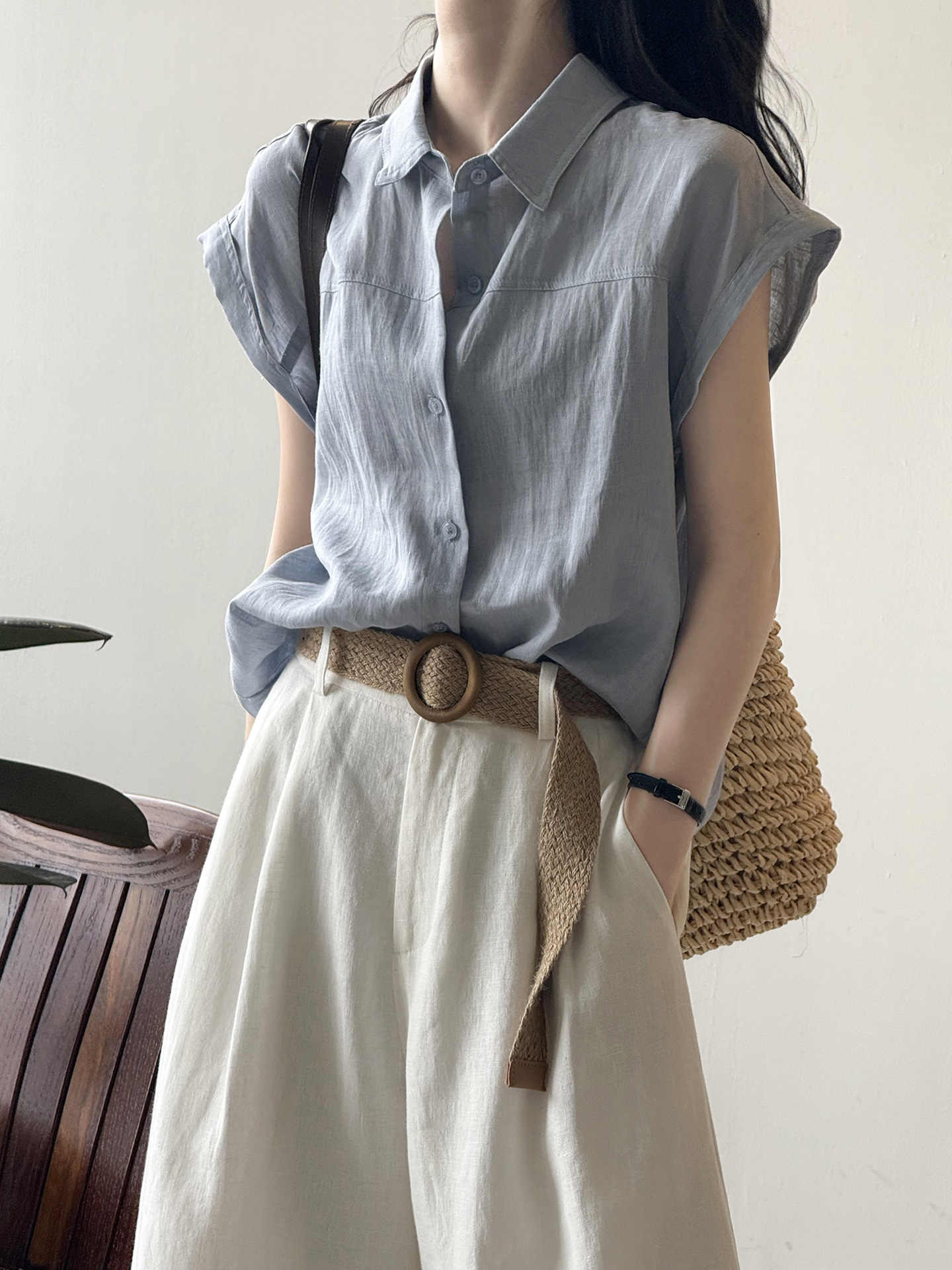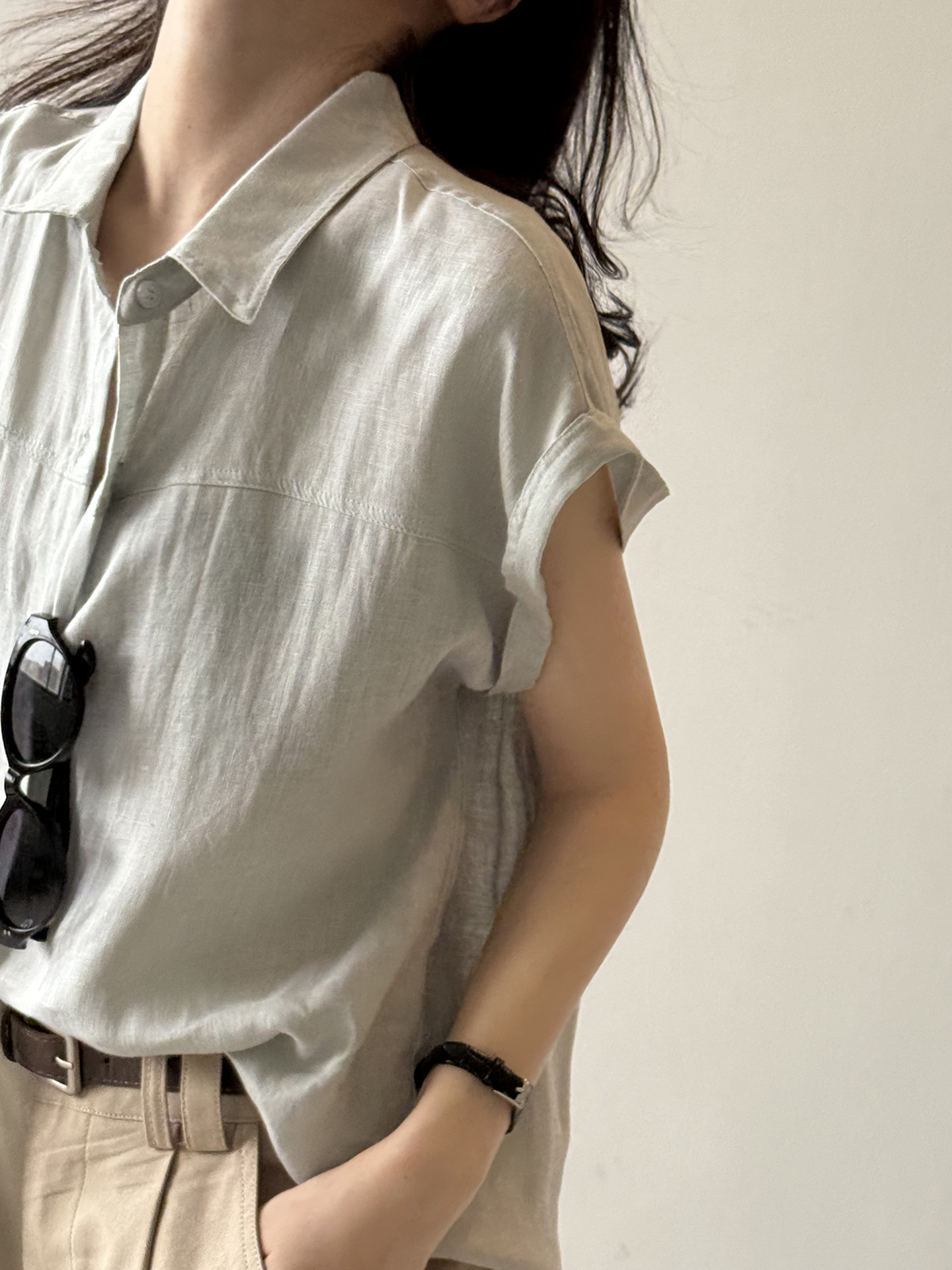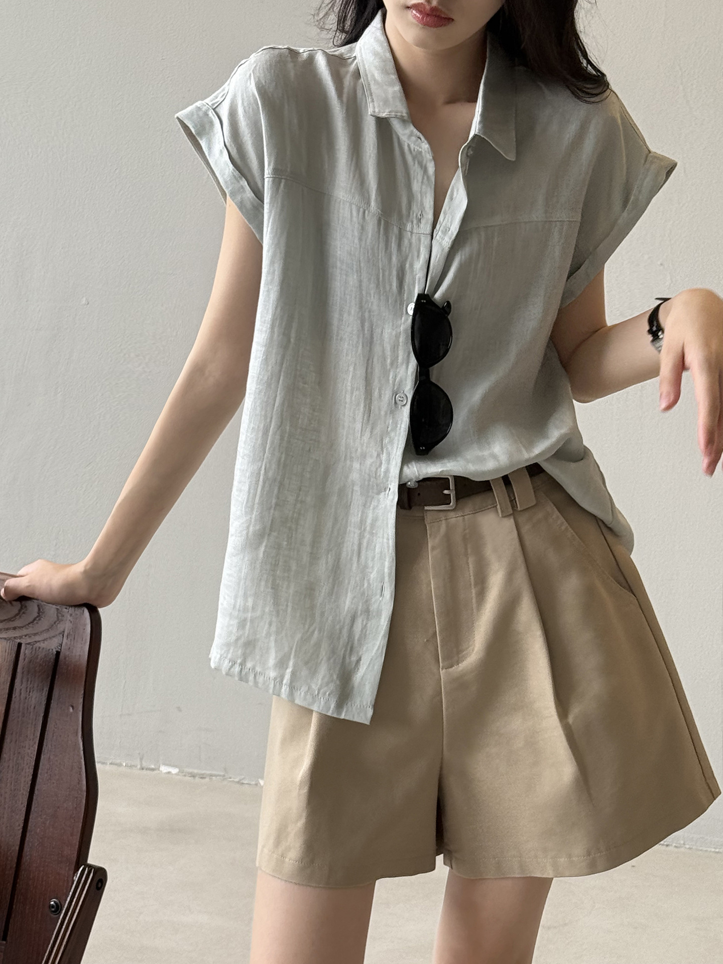 한 부서 순수 린넨 Feifei 소매 여성 셔츠 여름 단색 루즈핏 슬림해 보이는 Chic 작은 셔츠 맨위