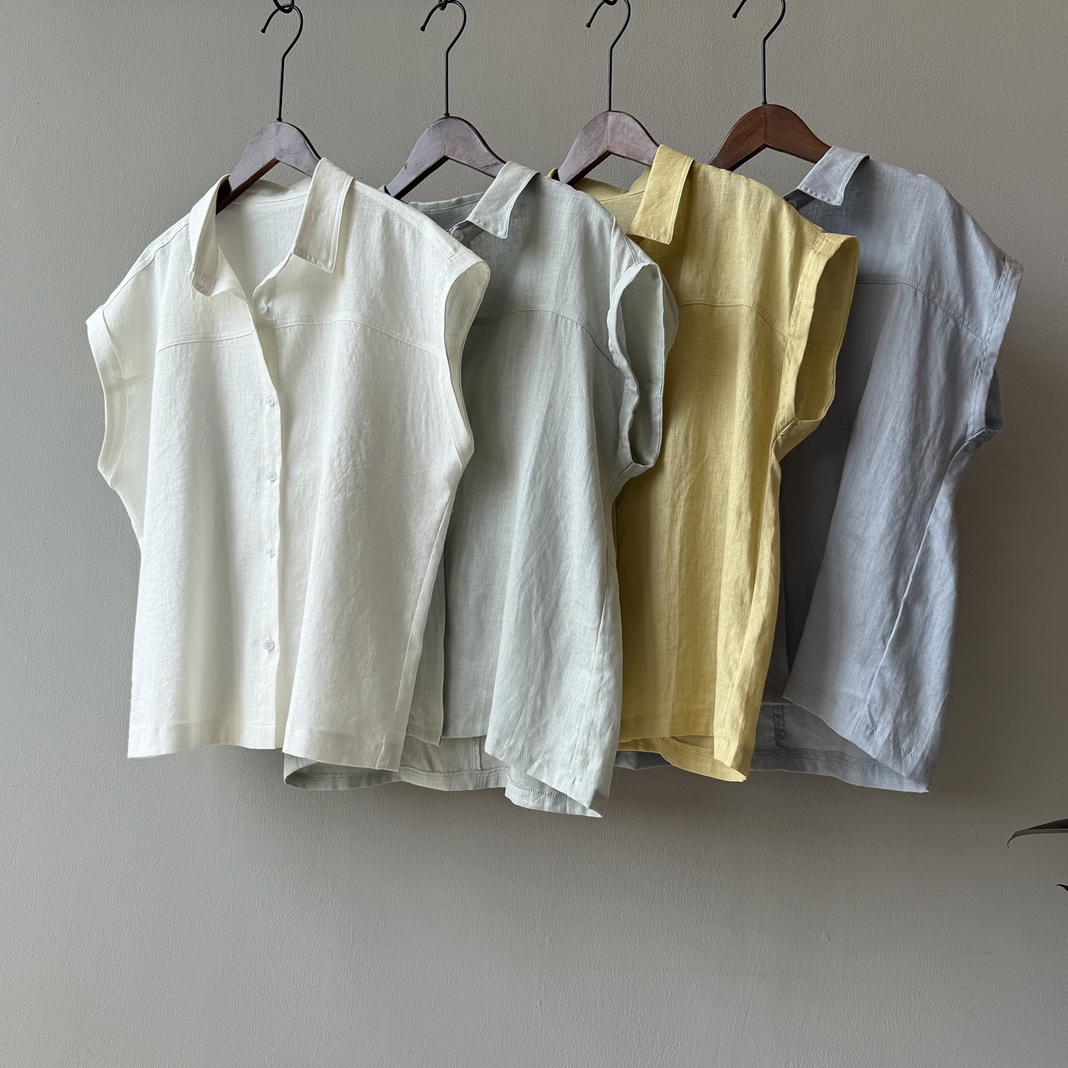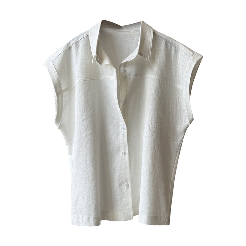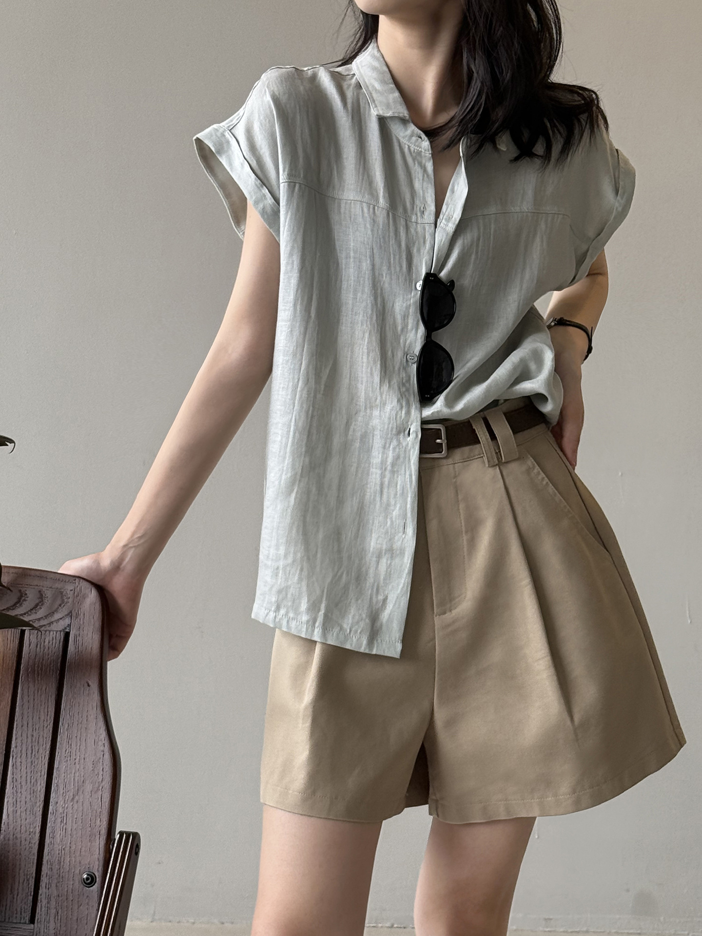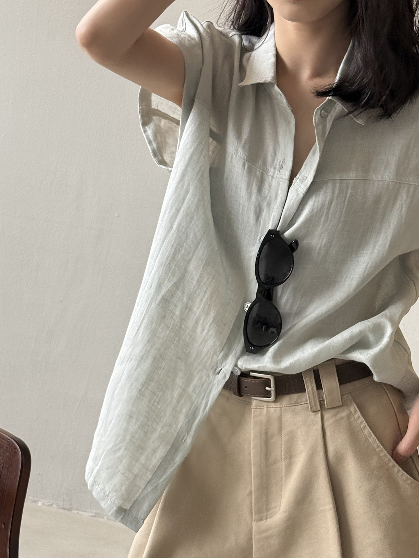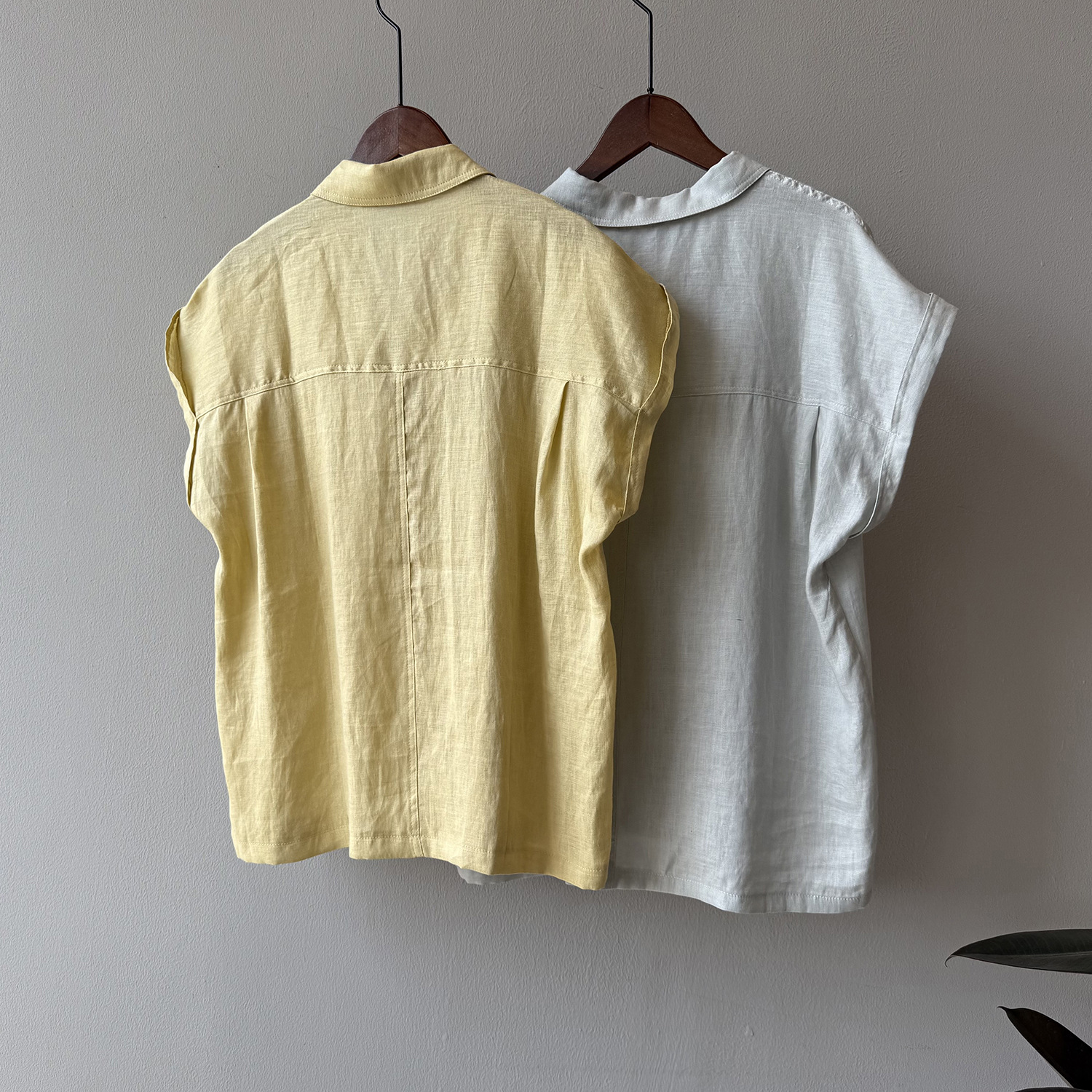 한 부서 순수 린넨 Feifei 소매 여성 셔츠 여름 단색 루즈핏 슬림해 보이는 Chic 작은 셔츠 맨위