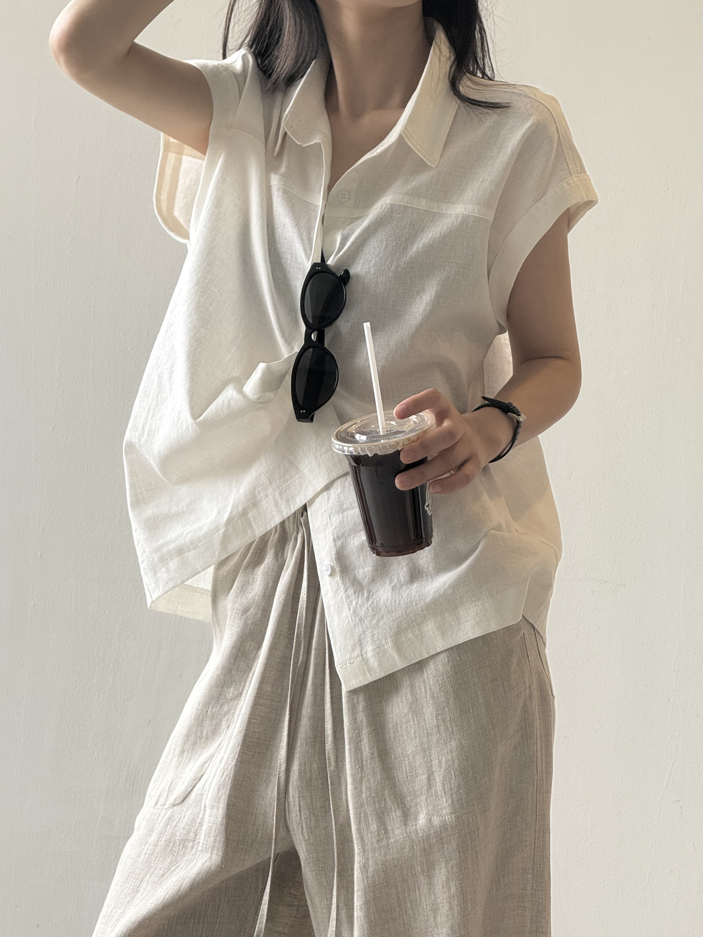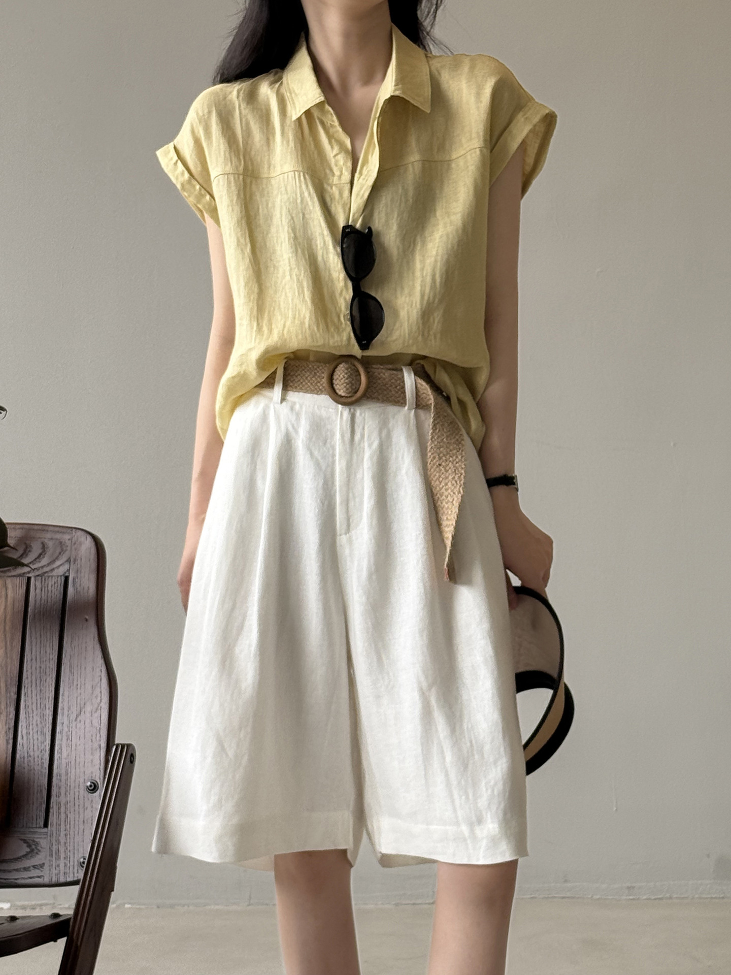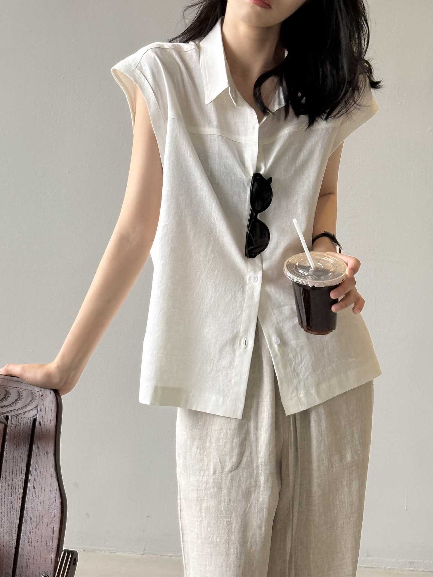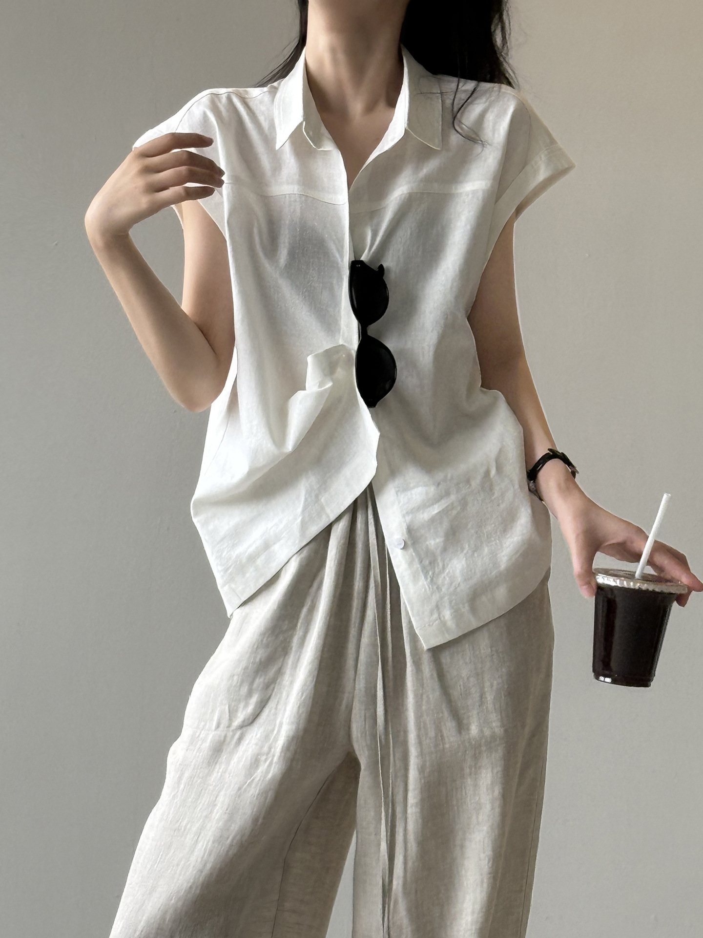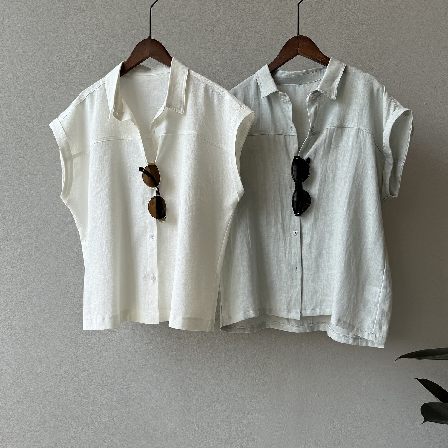 한 부서 순수 린넨 Feifei 소매 여성 셔츠 여름 단색 루즈핏 슬림해 보이는 Chic 작은 셔츠 맨위