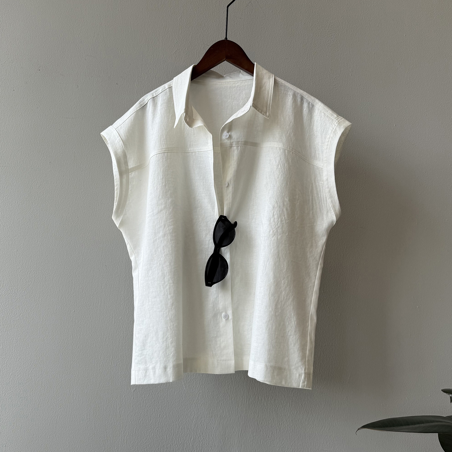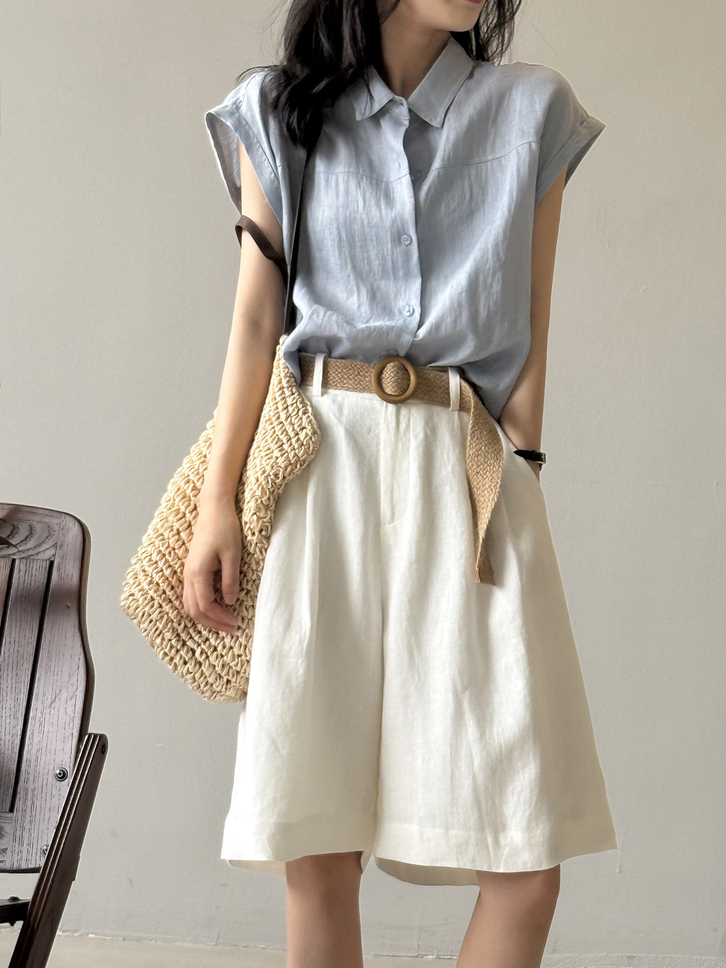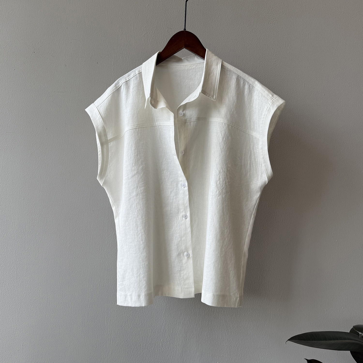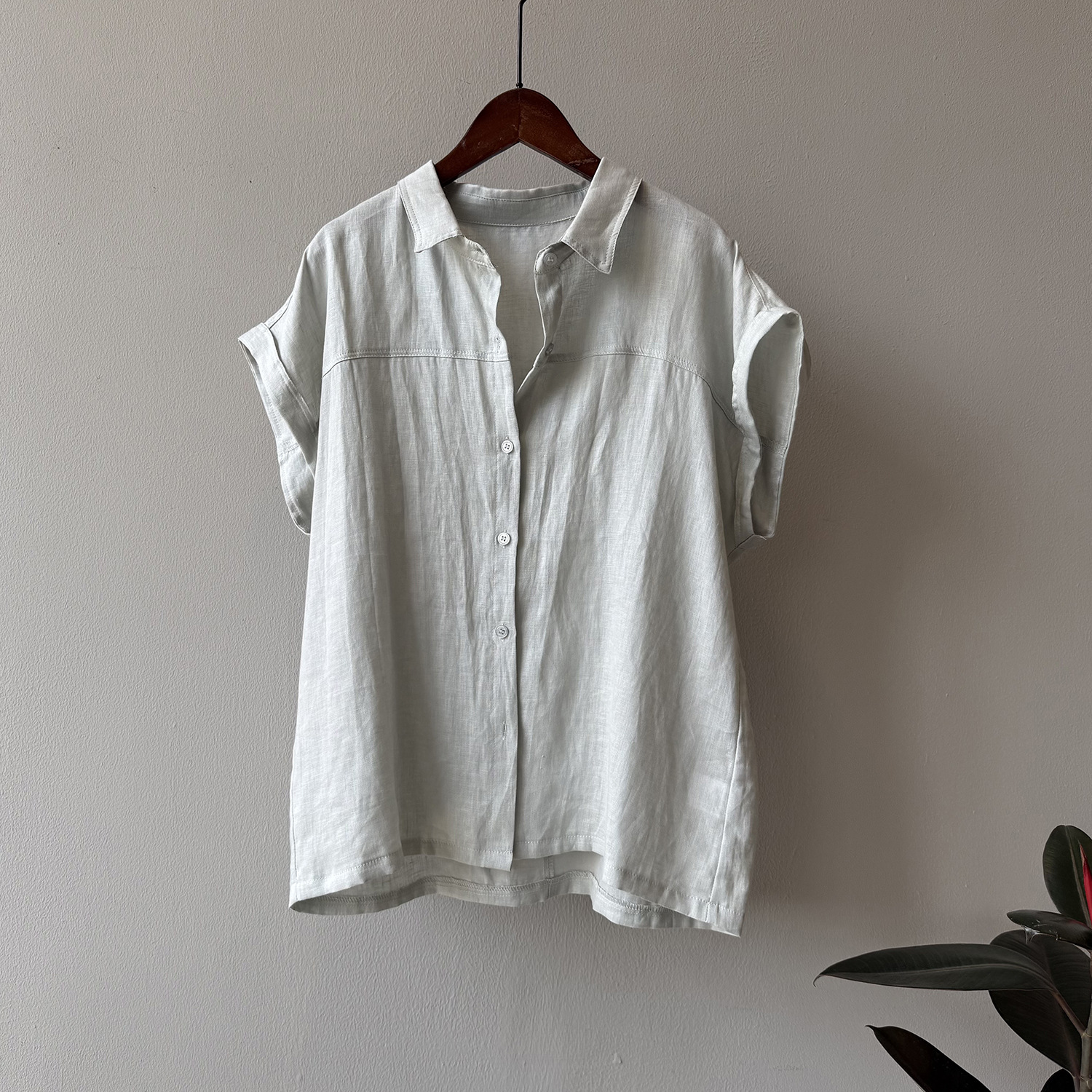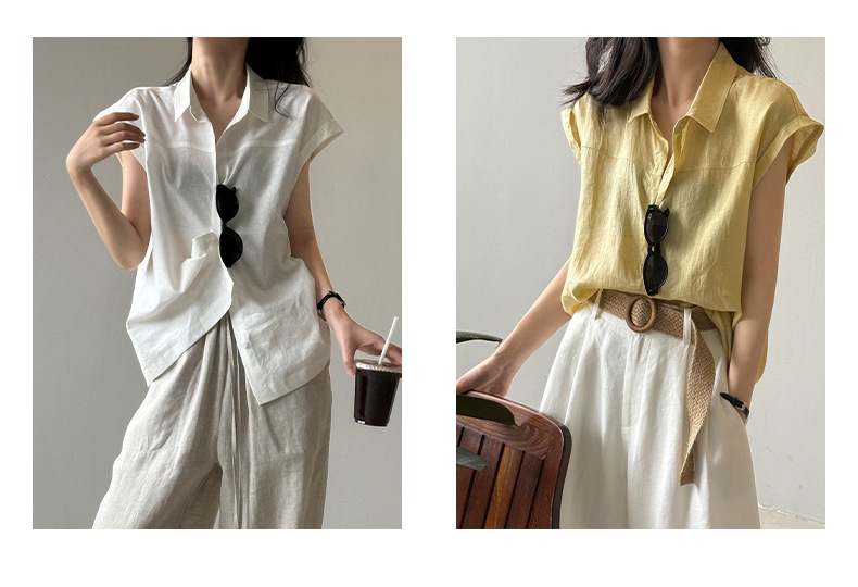 한 부서 순수 린넨 Feifei 소매 여성 셔츠 여름 단색 루즈핏 슬림해 보이는 Chic 작은 셔츠 맨위