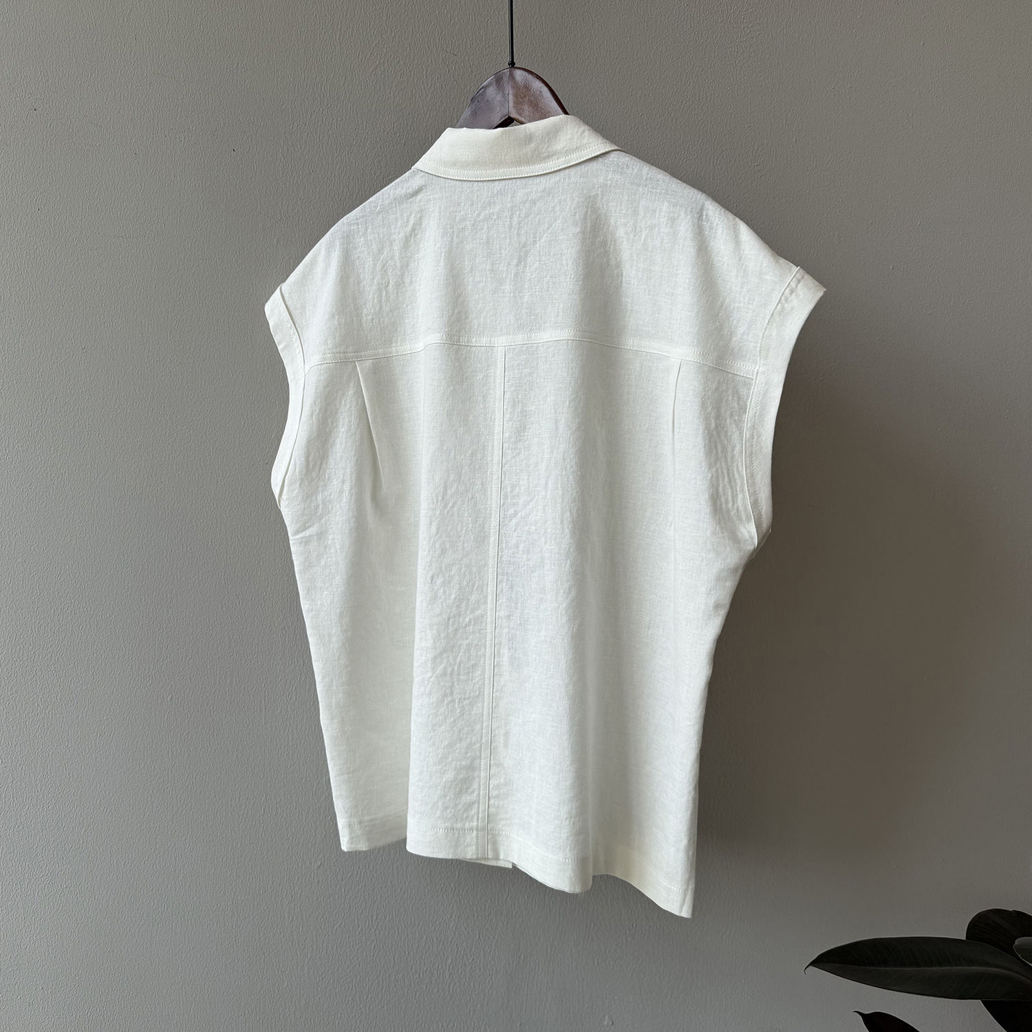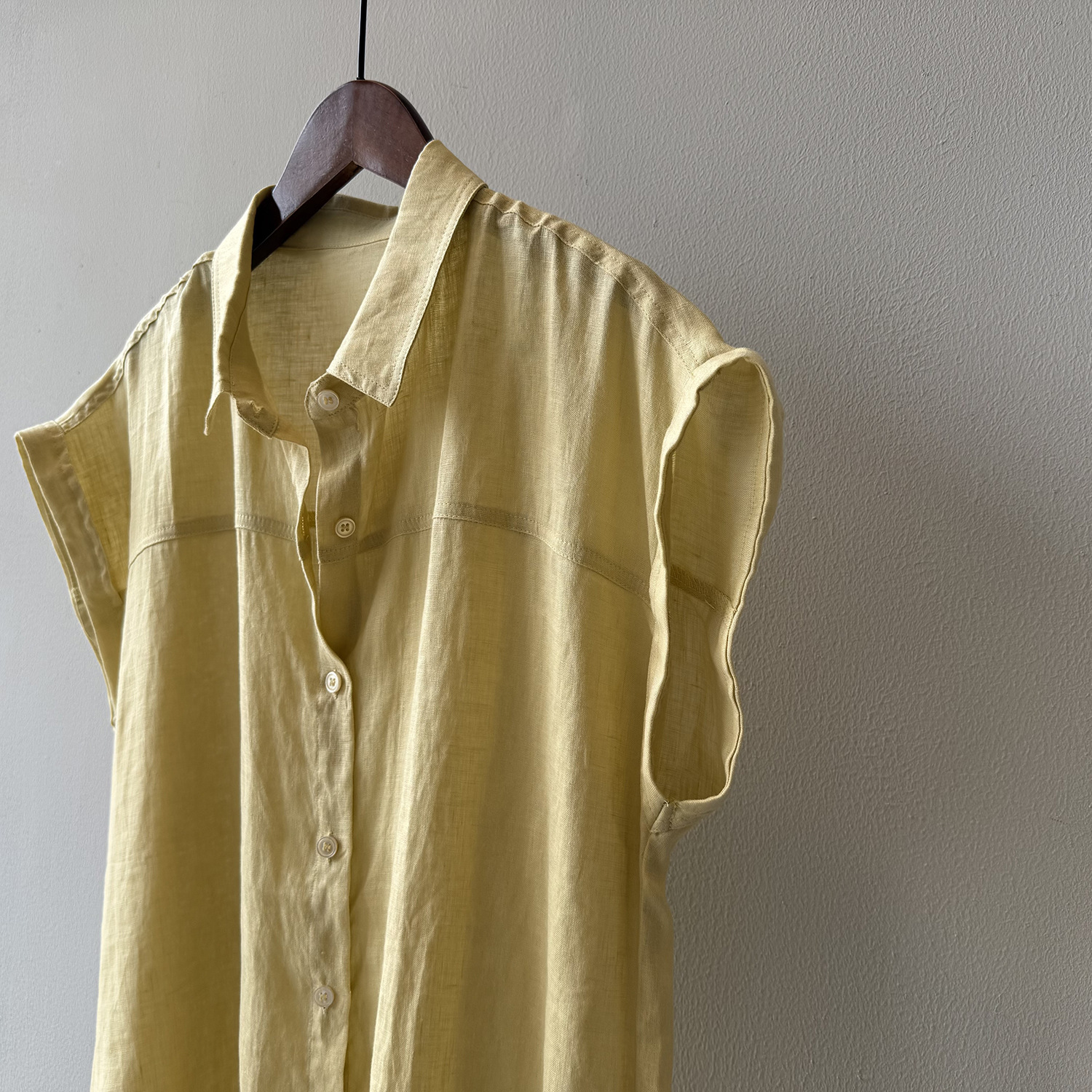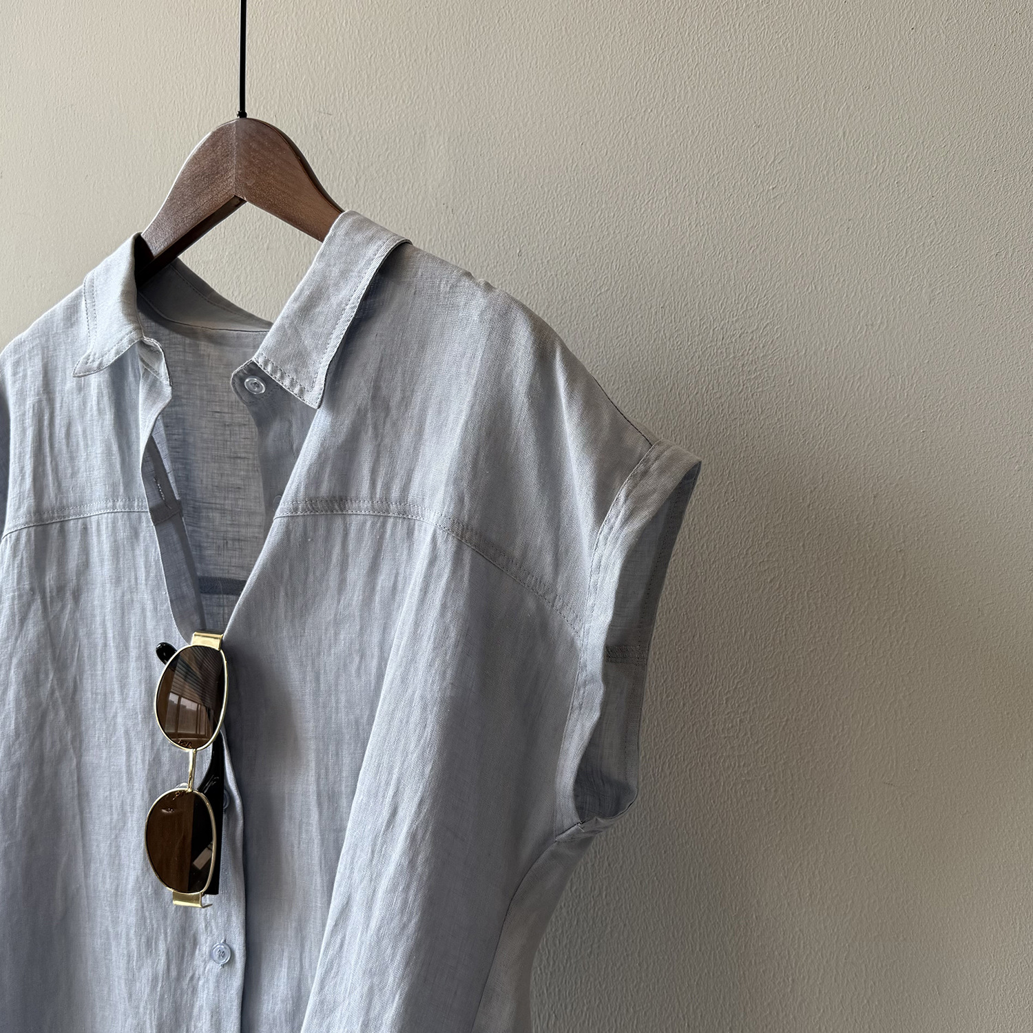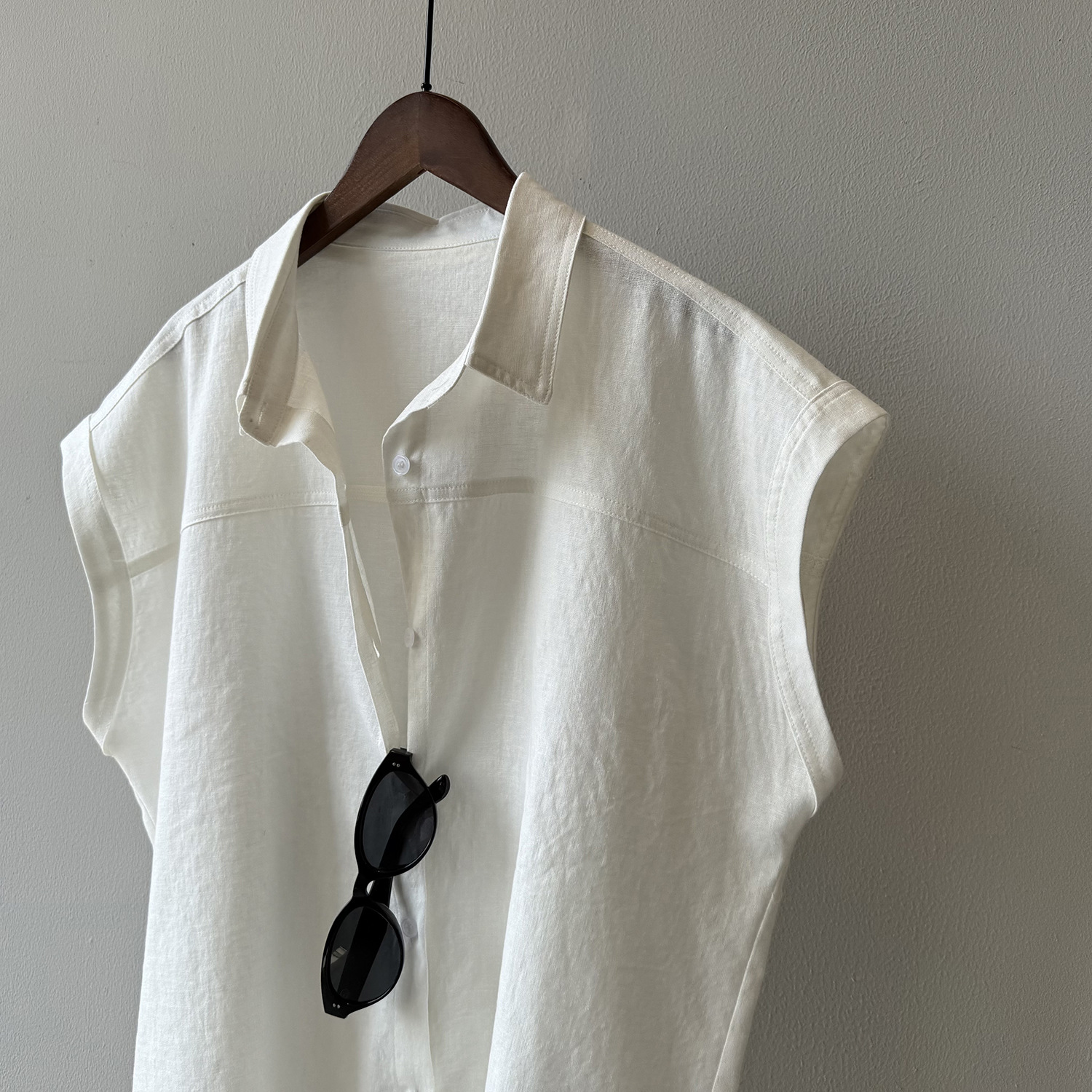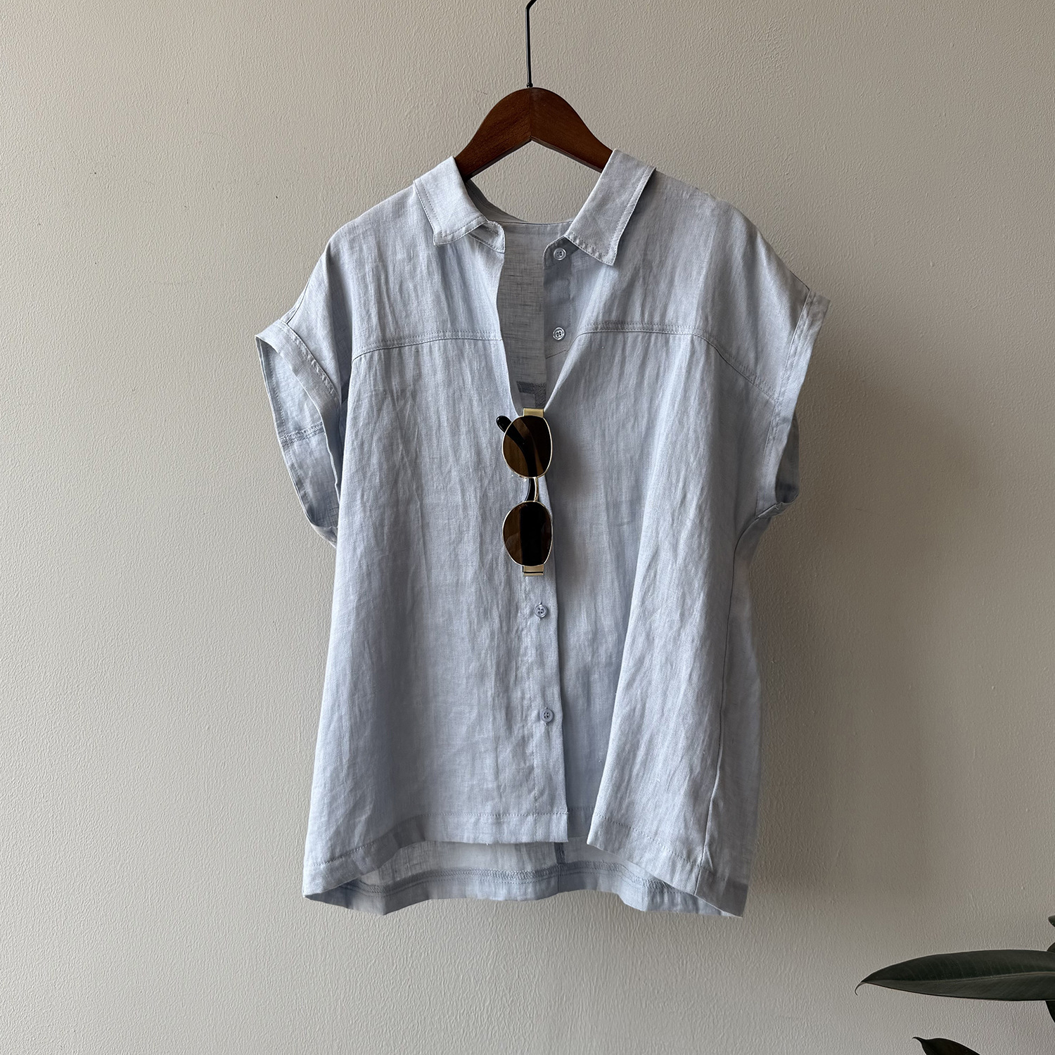 한 부서 순수 린넨 Feifei 소매 여성 셔츠 여름 단색 루즈핏 슬림해 보이는 Chic 작은 셔츠 맨위