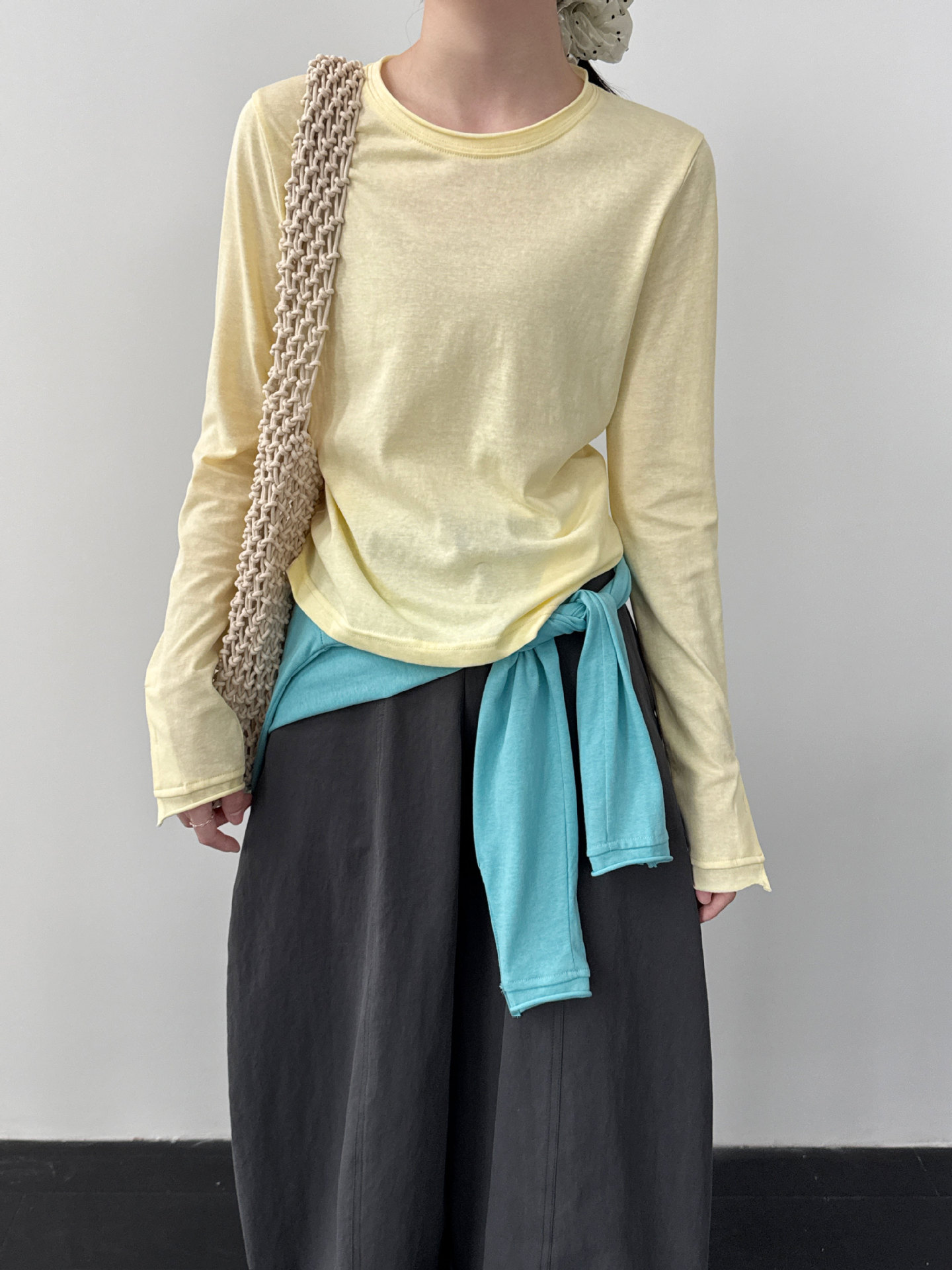 미니멀리즘 몸매 가꾸기 품격 Feifei 소매 양모 니트 맨위 여성 26 봄 새로운 다용도 티셔츠