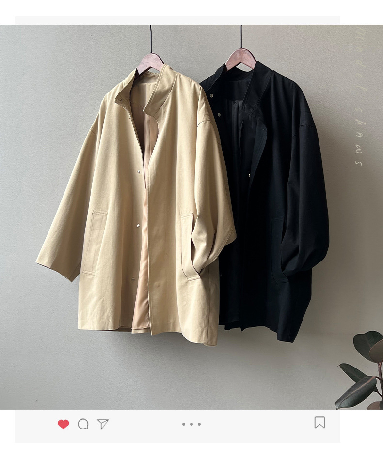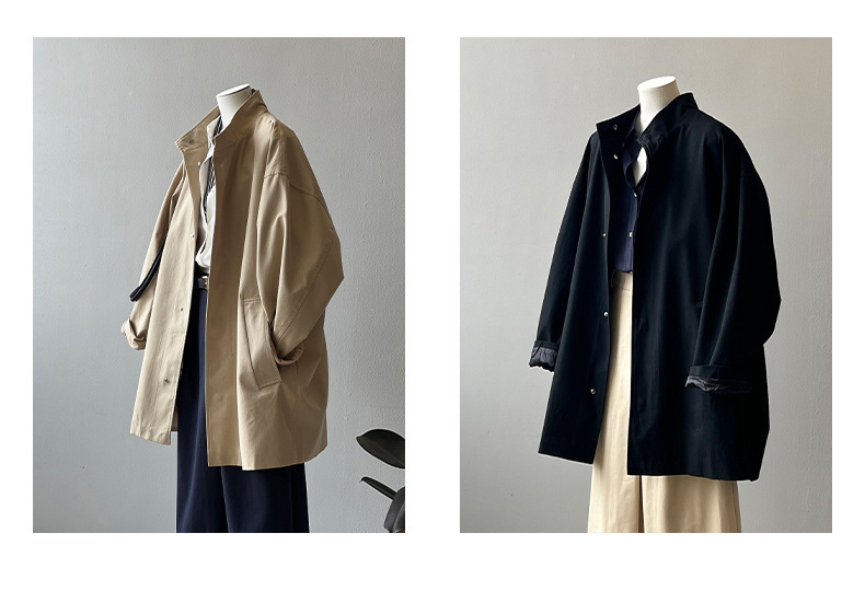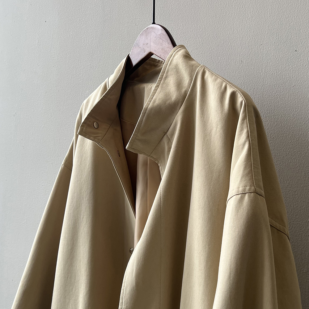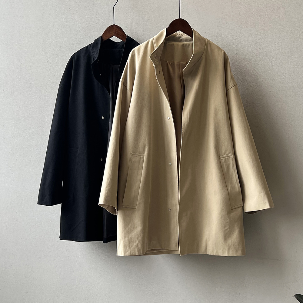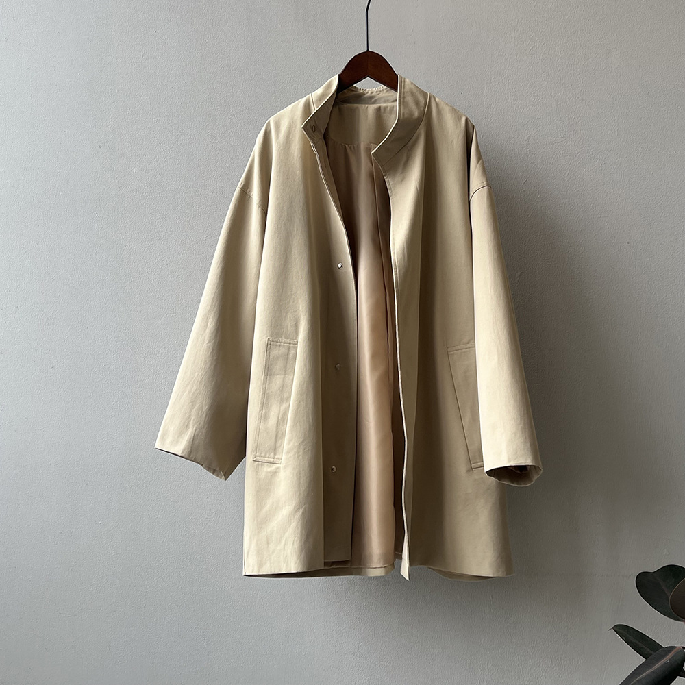 2026 봄 드레스 프랑스식 레트로 품격 중 섹션 바람막이 여성 코트 봄 루즈핏 허리 수축 스탠드 칼라 맨위