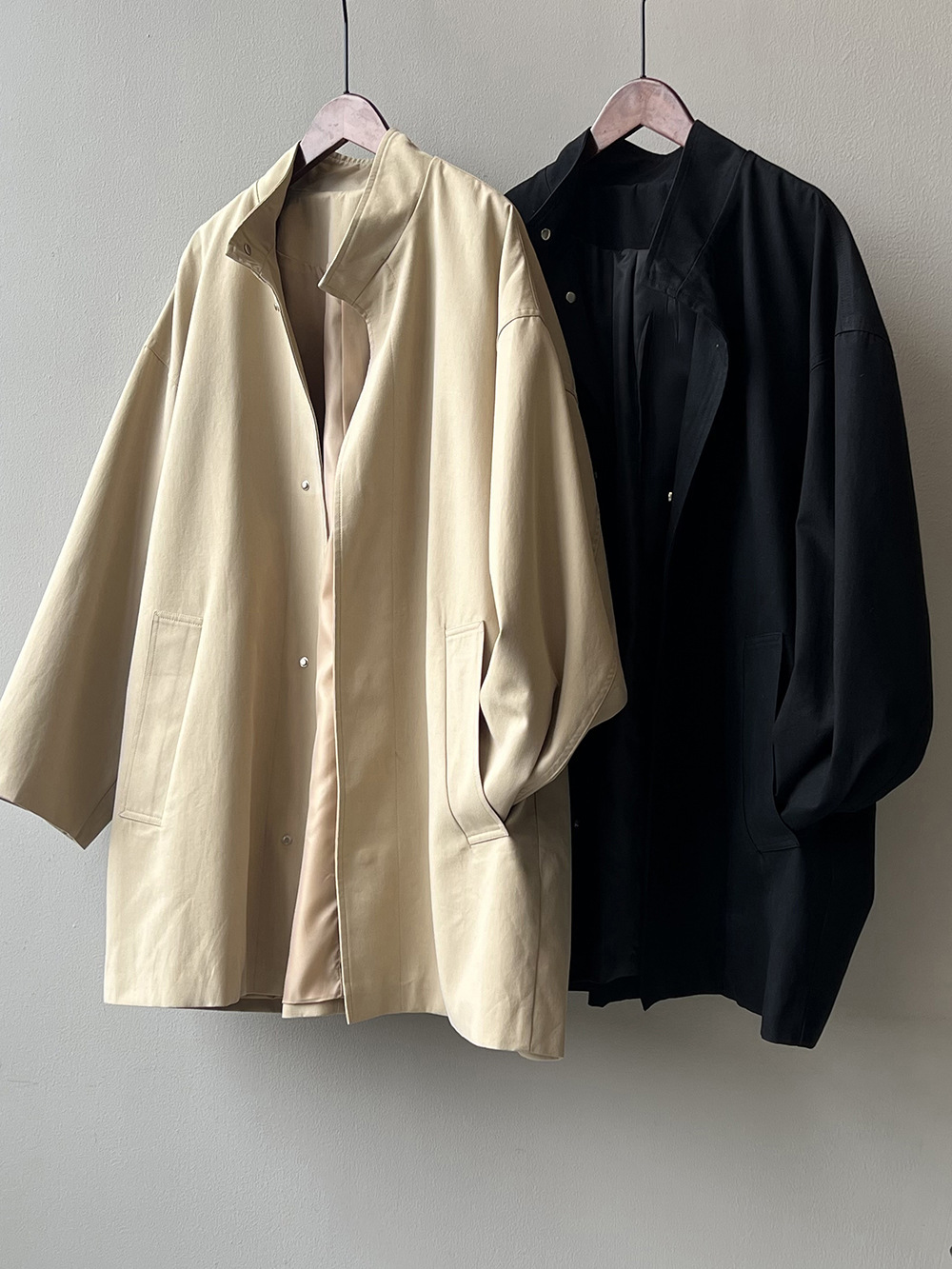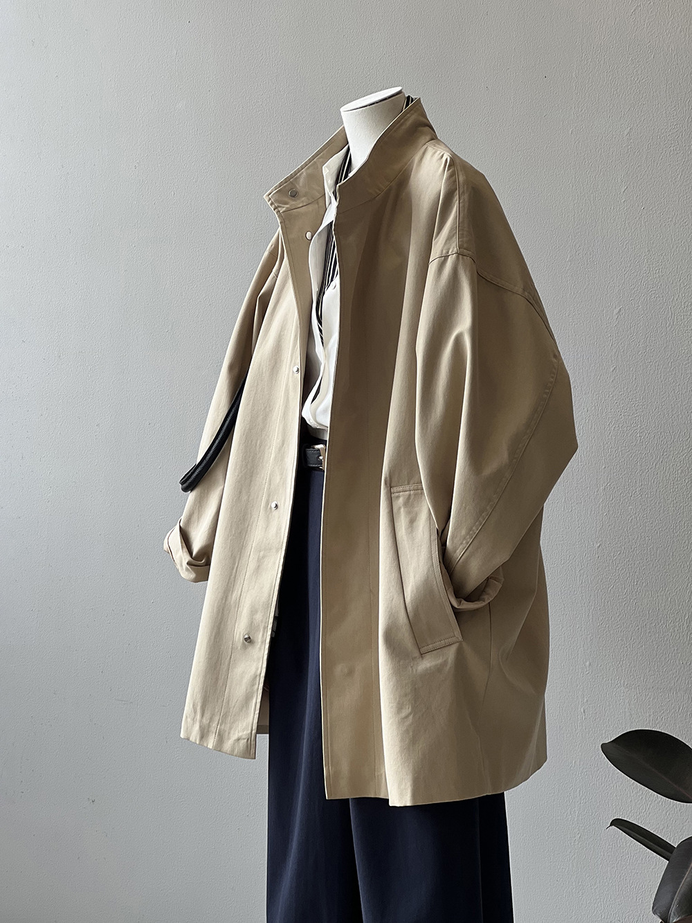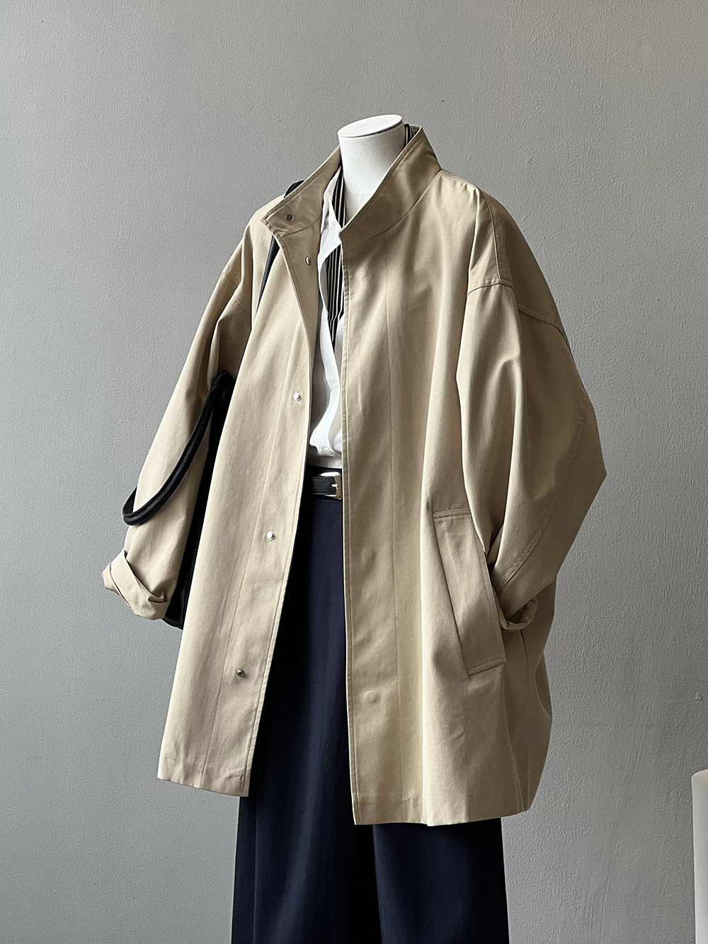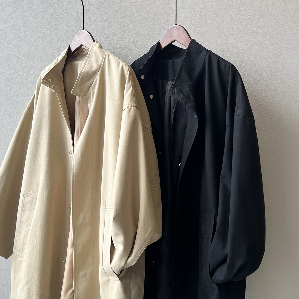2026 봄 드레스 프랑스식 레트로 품격 중 섹션 바람막이 여성 코트 봄 루즈핏 허리 수축 스탠드 칼라 맨위