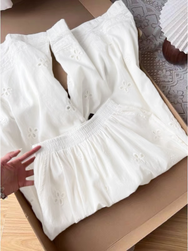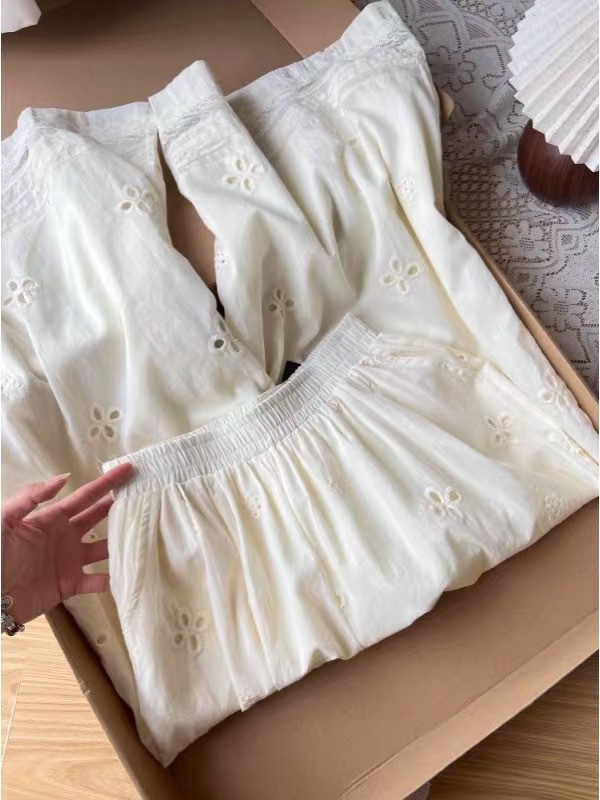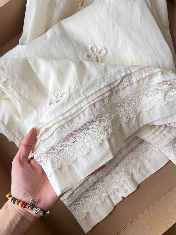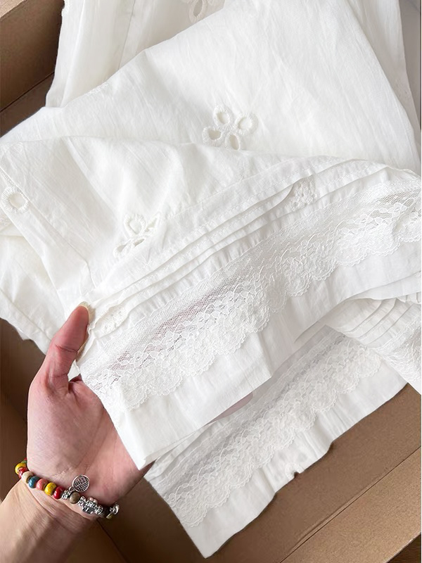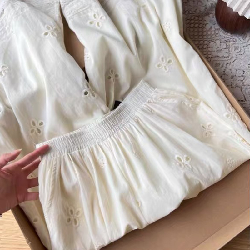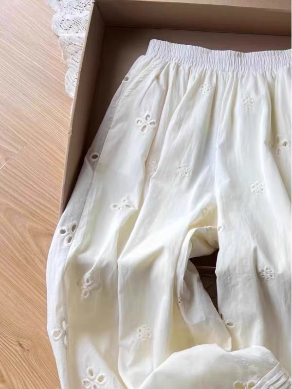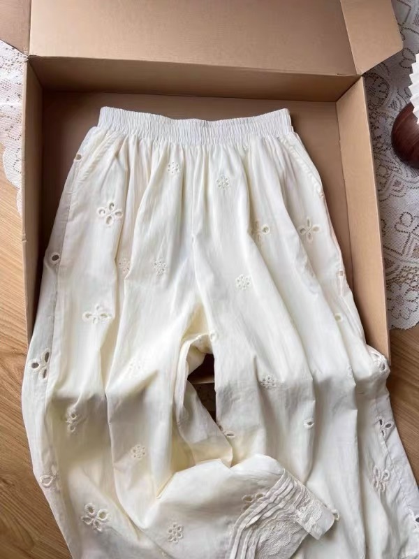 2025 여름 새로운 자수 홀로우 아웃 스트레이트 캐주얼 바지 여성 느긋한 바람 레이스 조각 한국 스타일 다용도 와이드 레그 팬츠