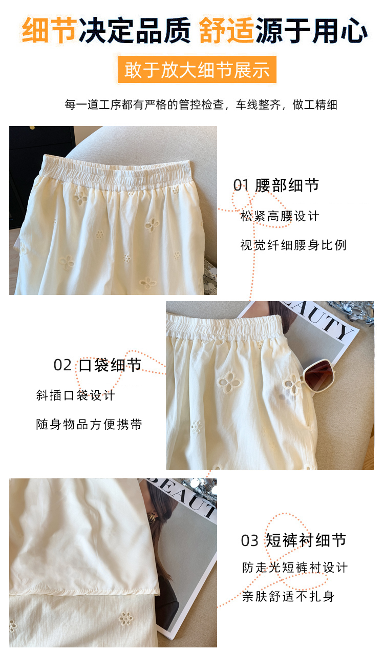 실사 레이스 조각 자수 홀로우 아웃 캐주얼 반바지 여성 2026 여름 새로운 하이웨이스트 루즈핏 넓은 다리 핫 바지