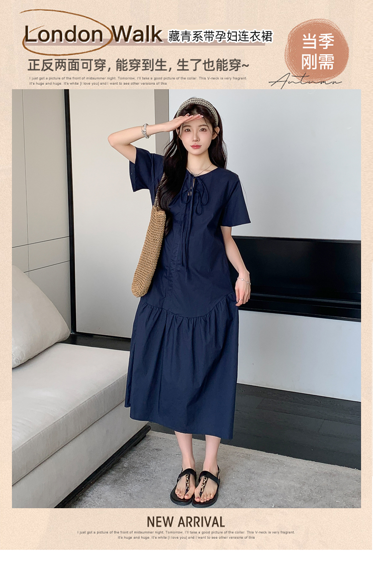 출산 착용 드레스 루즈핏 슬림해 보이는 매운맛 엄마 2026 여름 새로운 양면 착용 중간 길이 임신 기간 착용 가져 가라. 치마