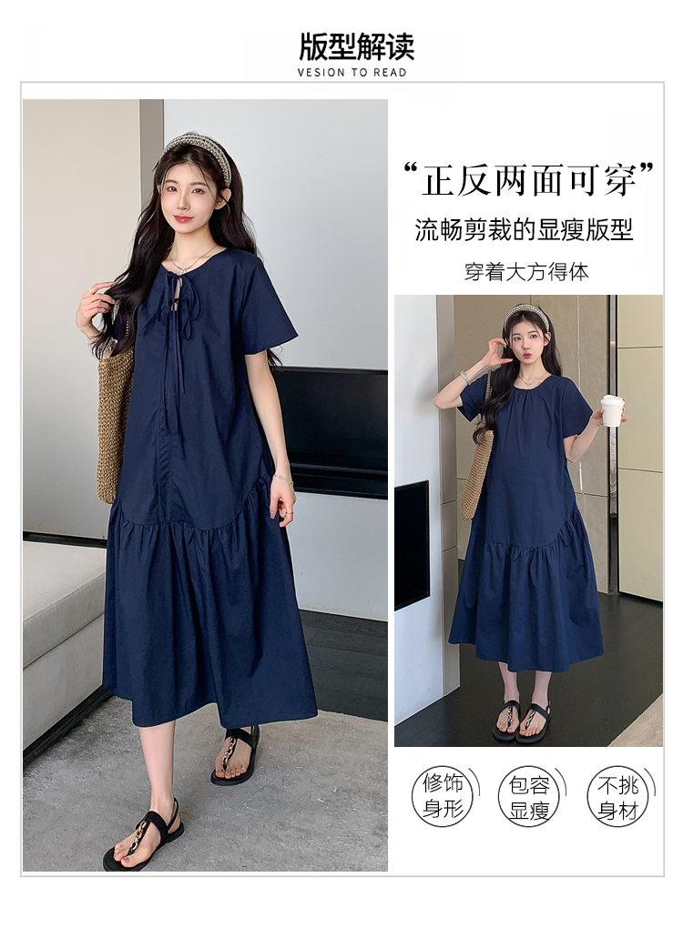 인터넷 유명인 섹션 임신 기간 착용 가져 가라. 중간 길이 치마 2026 여름 새로운 빅 사이즈 루즈핏 슬림해 보이는 출산 착용 드레스
