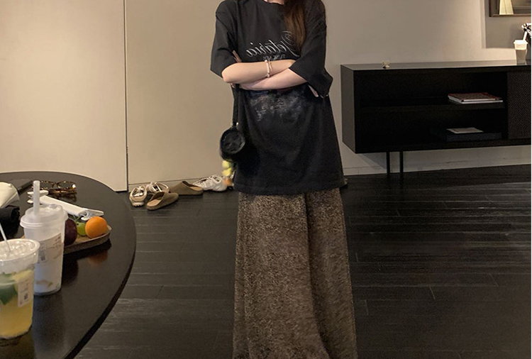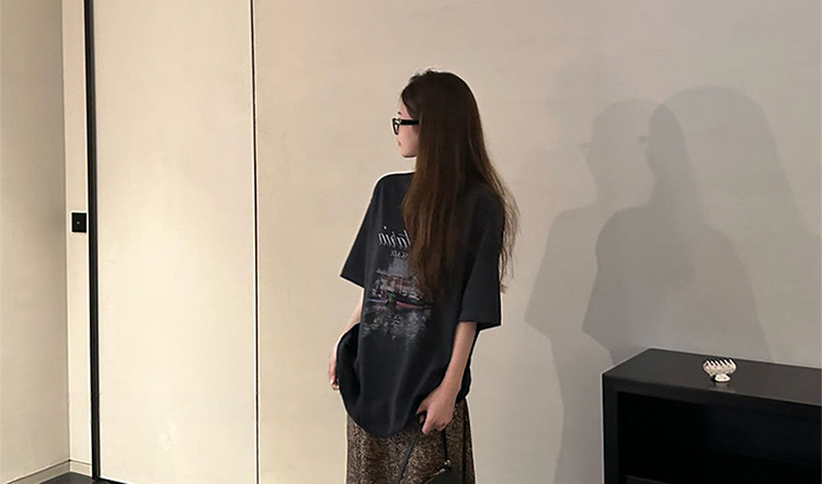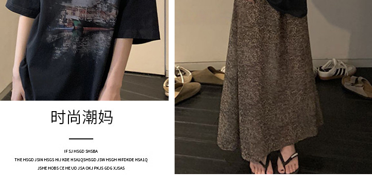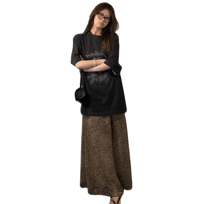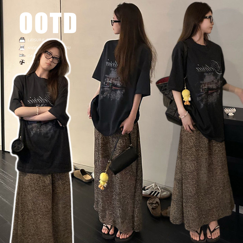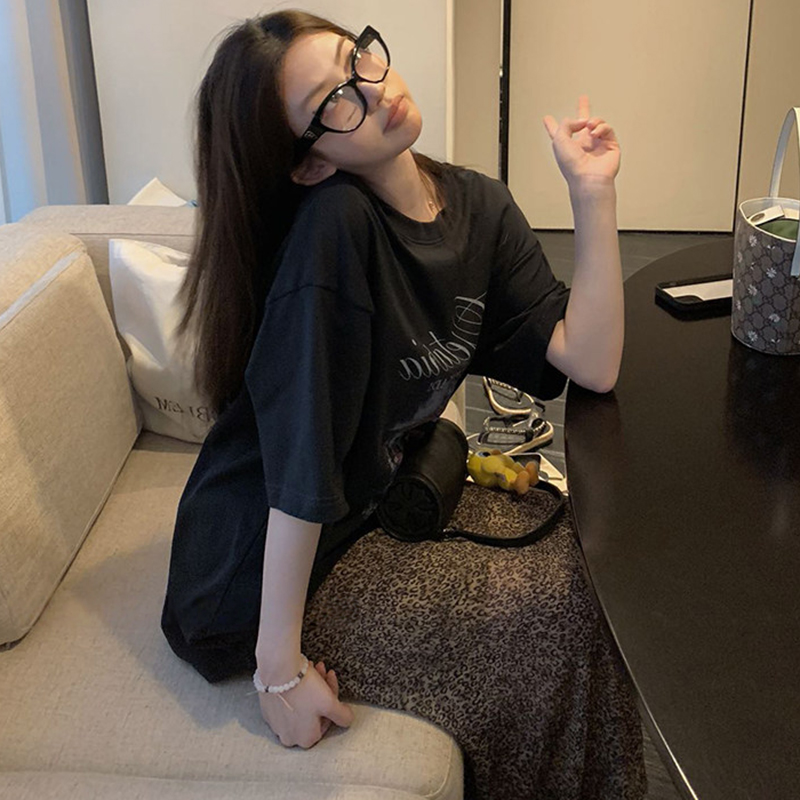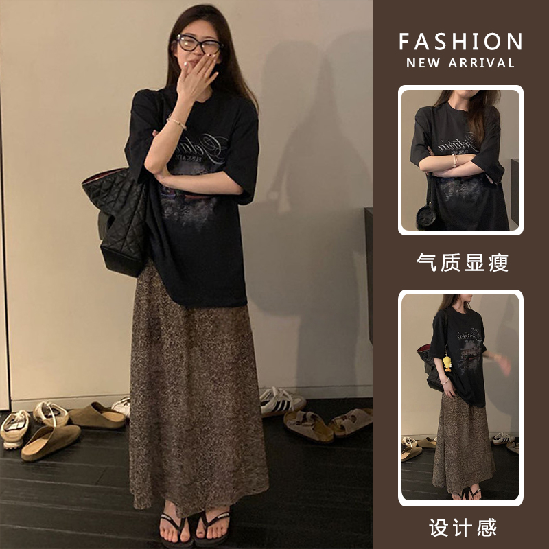 여름 새로운 임산부 세트 프린트 블랙 t+ 나만의 것을 가져와 라. 차가운 센스 레오파드 무늬 반 스커트