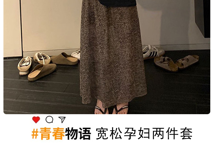 실사 xian 물품 느긋한 센스 배트윙 소매 라운드 넥 맨위 반 스커트 니트 임산부 세트