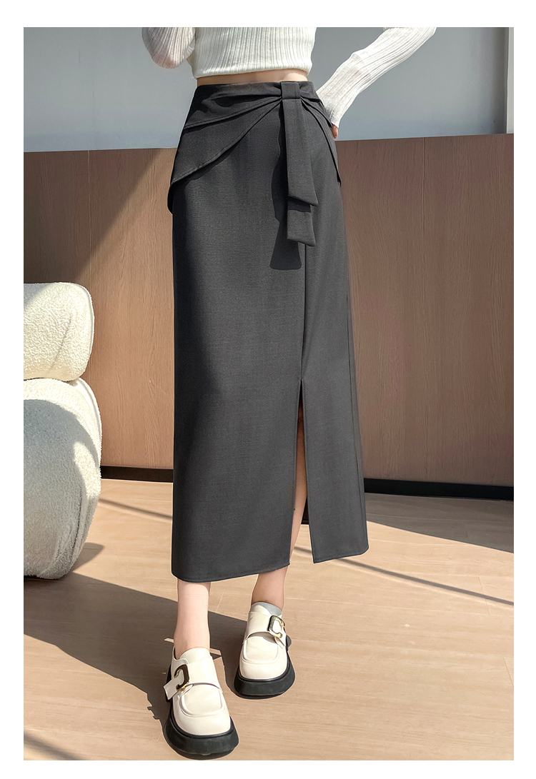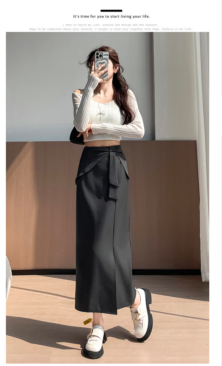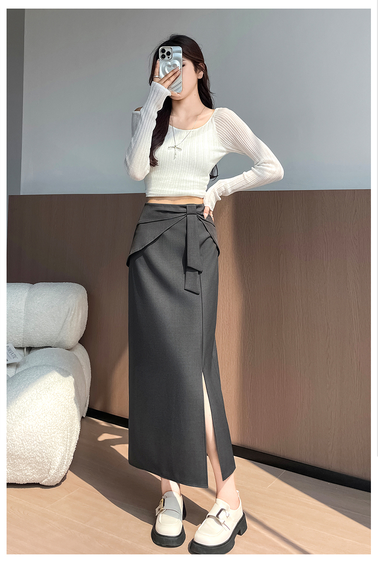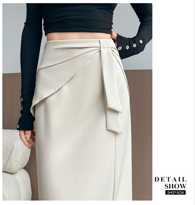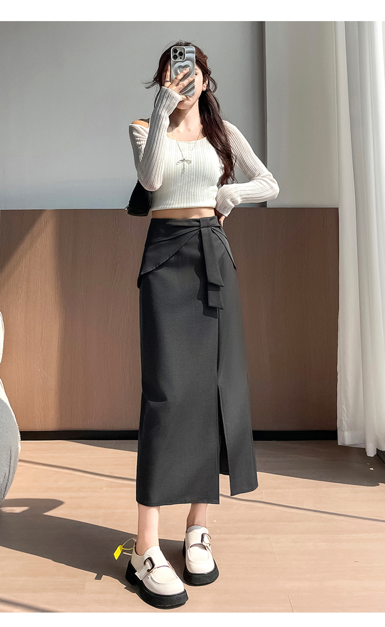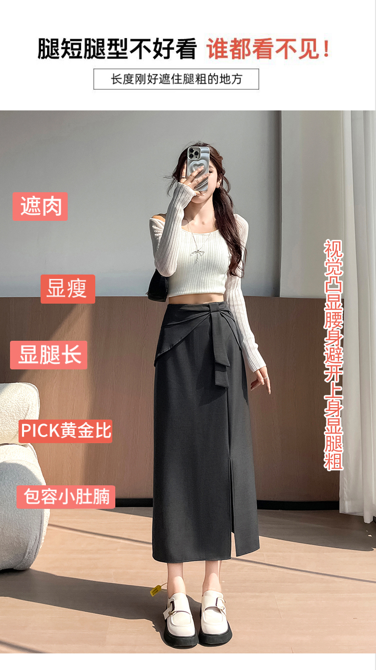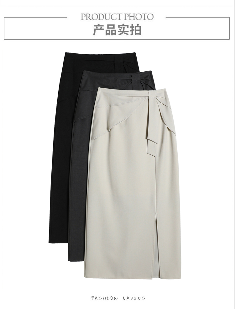 실사 이른 가을 새로운 디자인 센스 나비 매듭 트임 정장 반신 스커트 여성 다용도 하이웨이스트 길다 치마