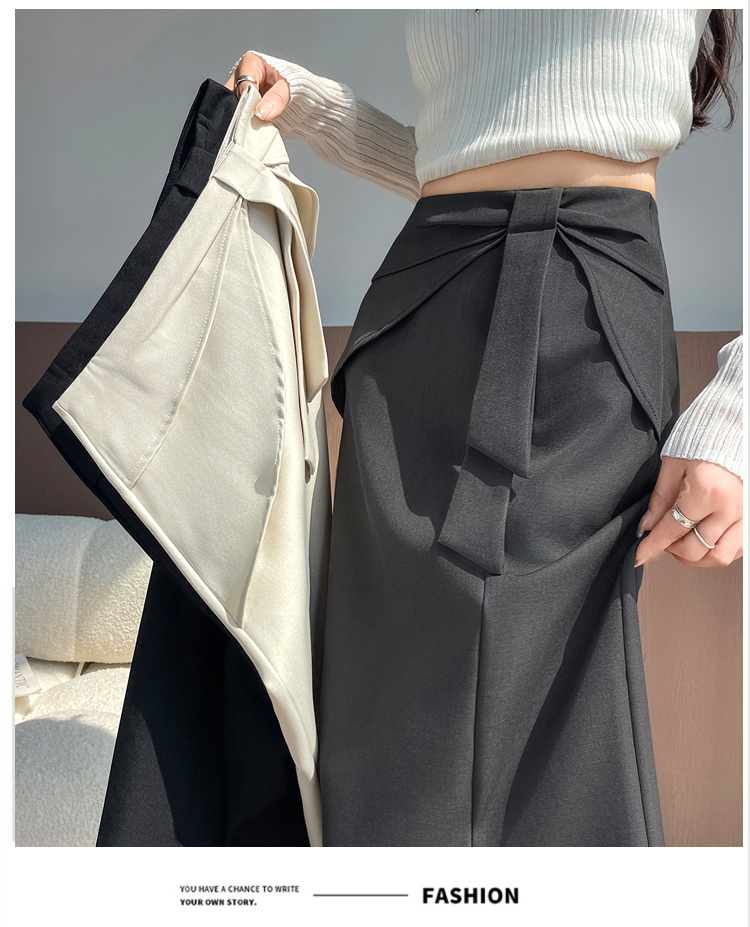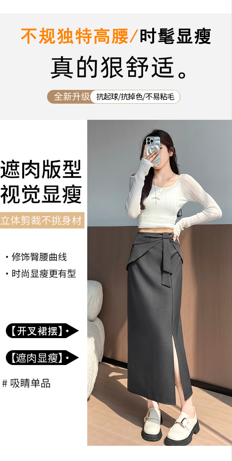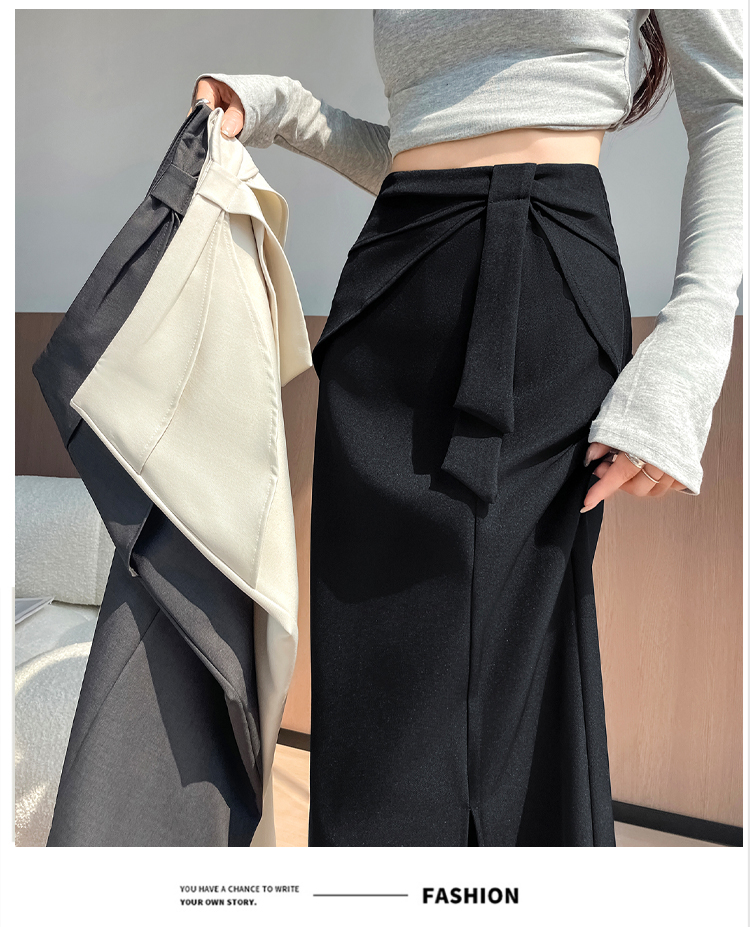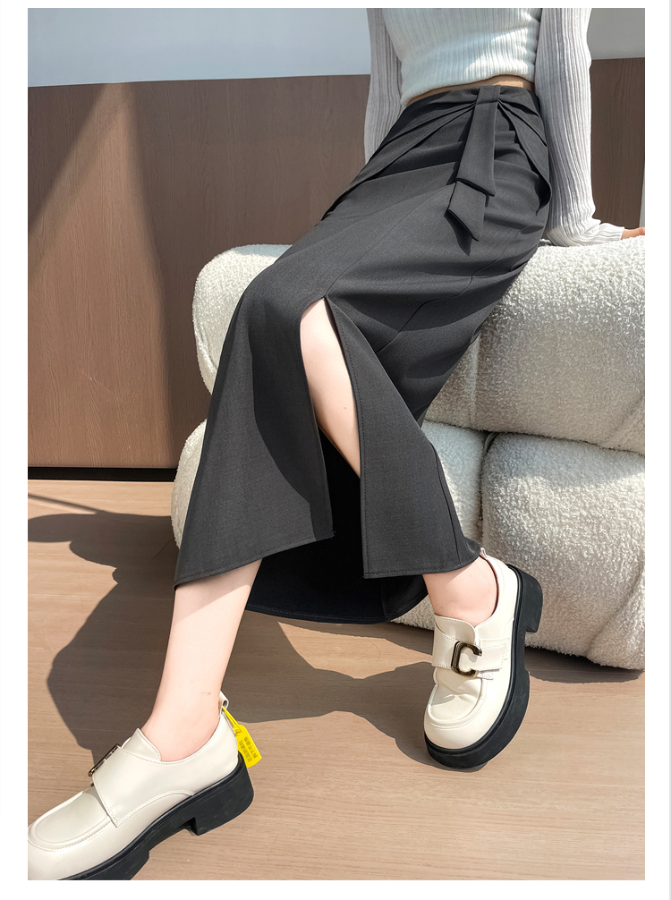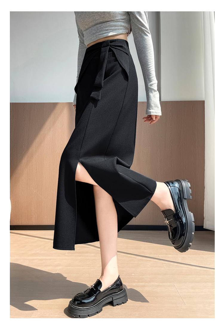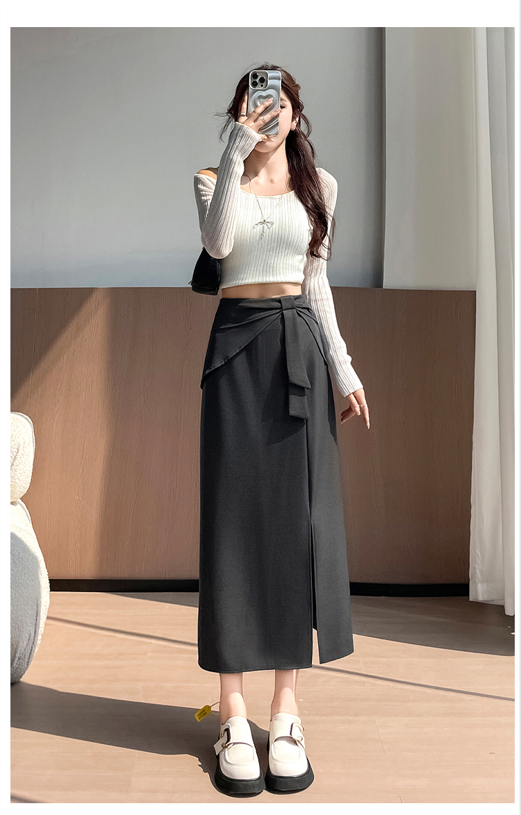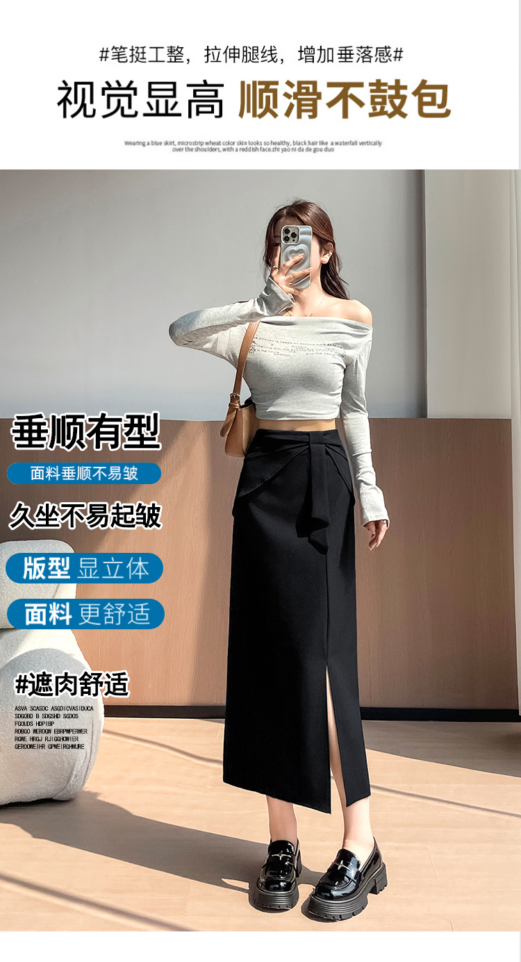 실사 이른 가을 새로운 디자인 센스 나비 매듭 트임 정장 반신 스커트 여성 다용도 하이웨이스트 길다 치마