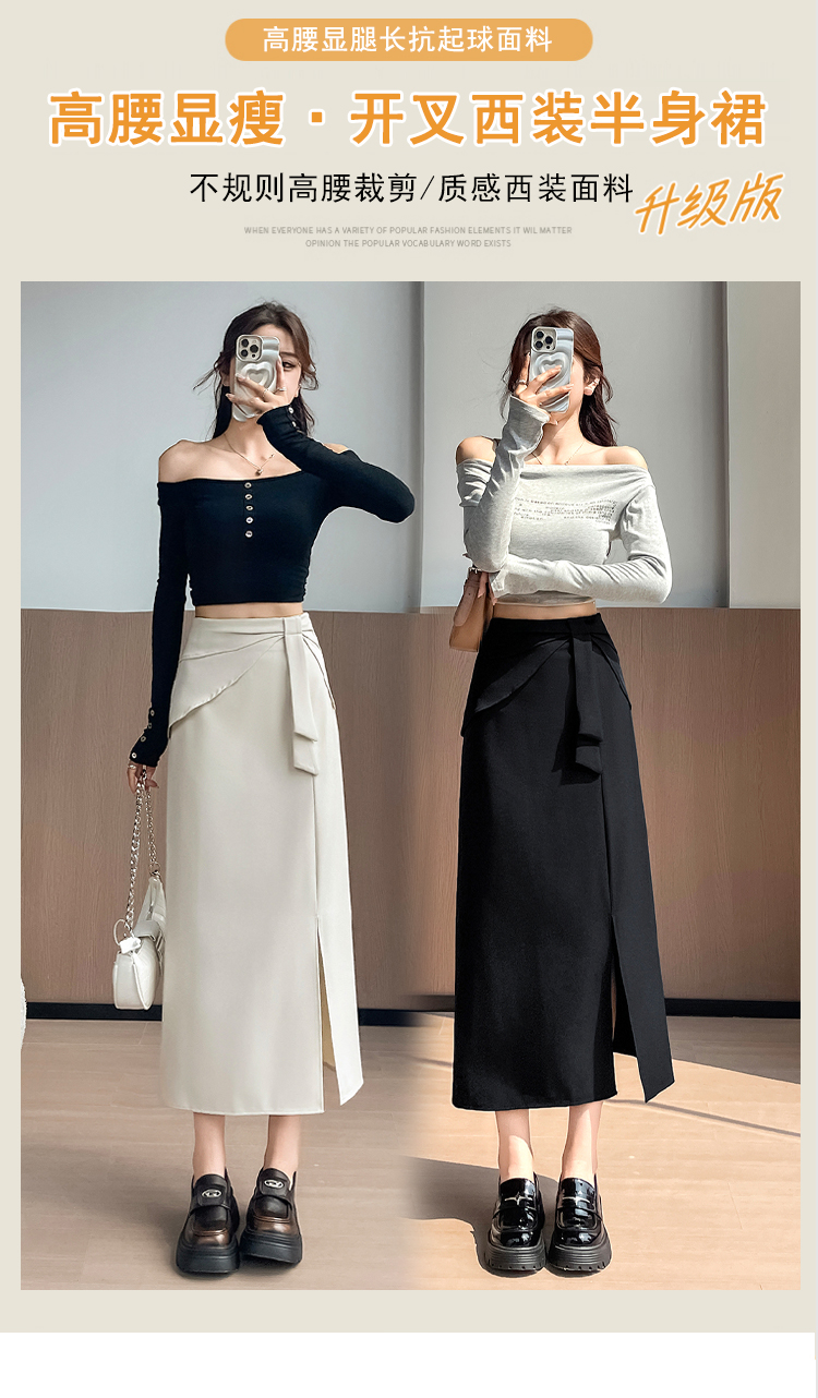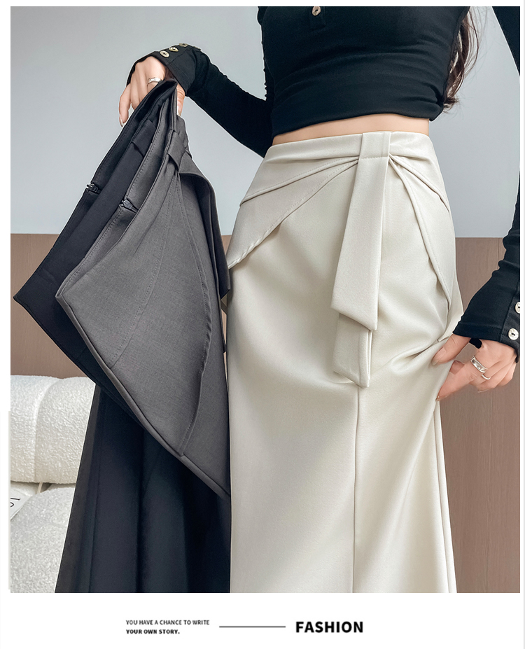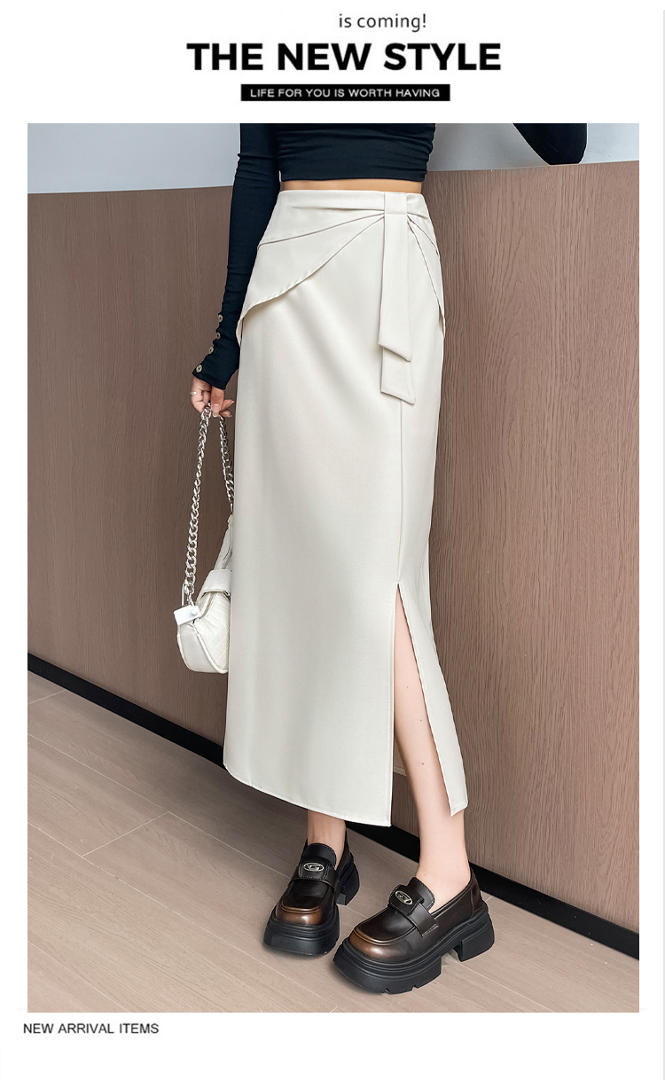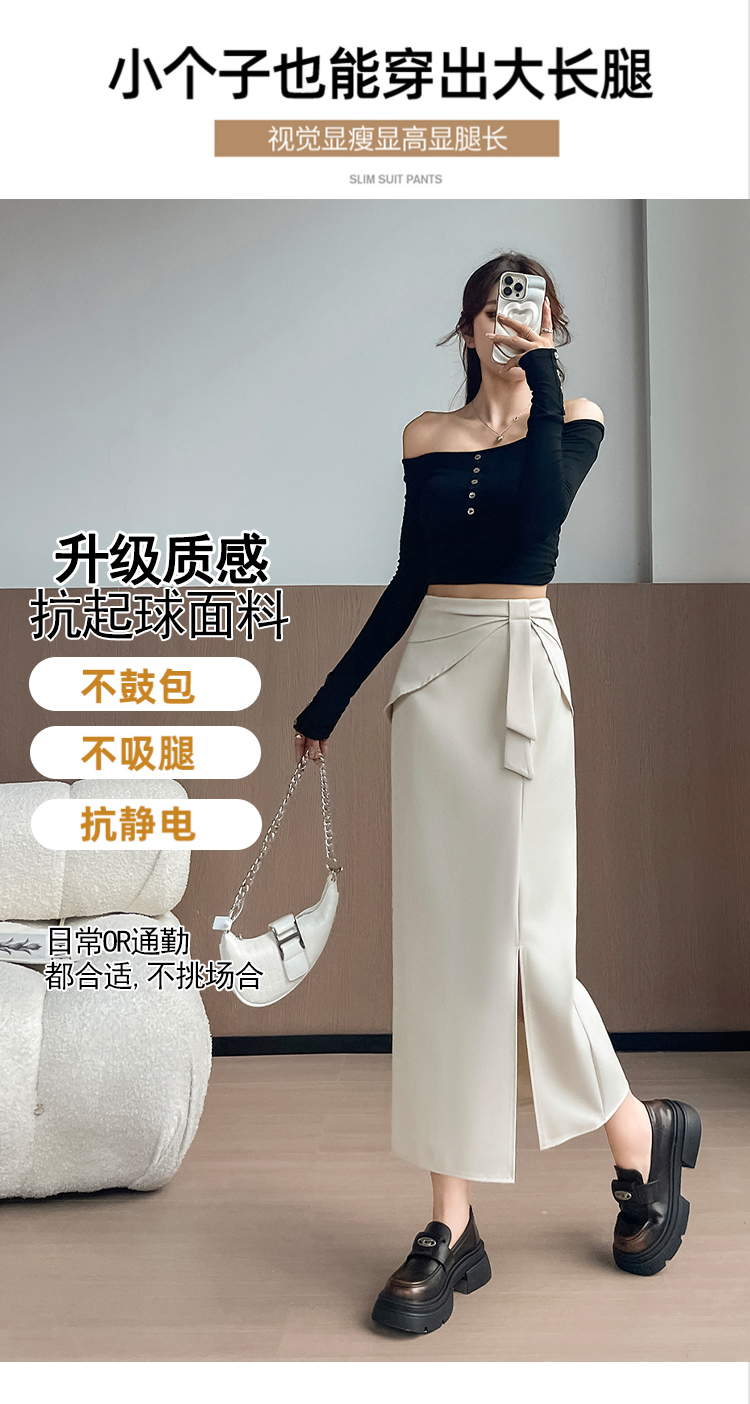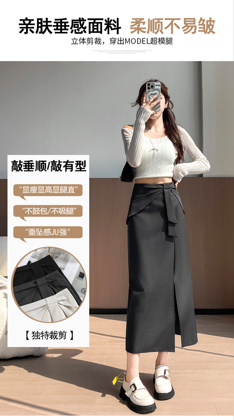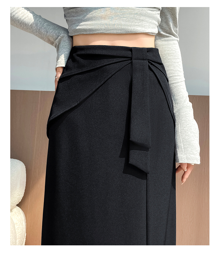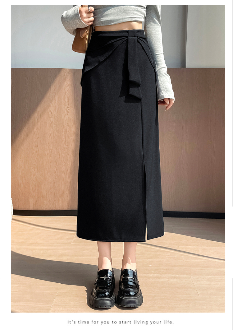 실사 이른 가을 새로운 디자인 센스 나비 매듭 트임 정장 반신 스커트 여성 다용도 하이웨이스트 길다 치마