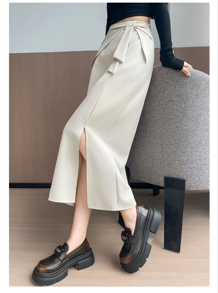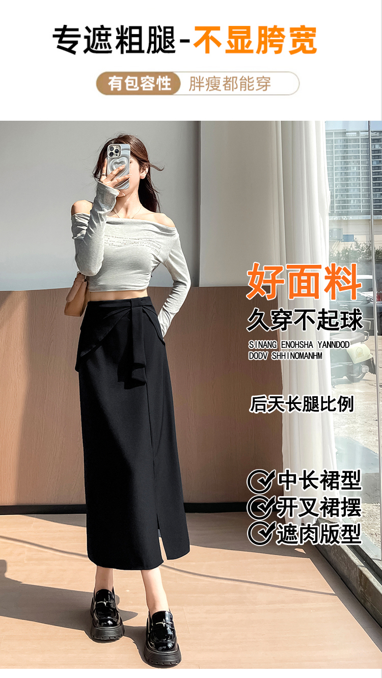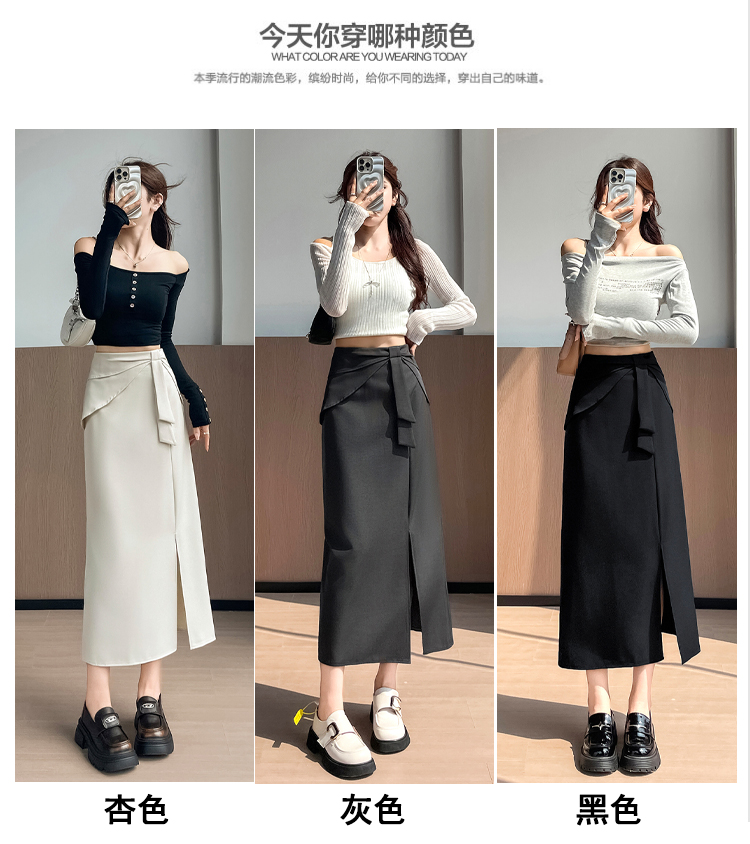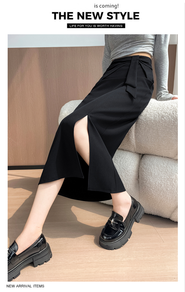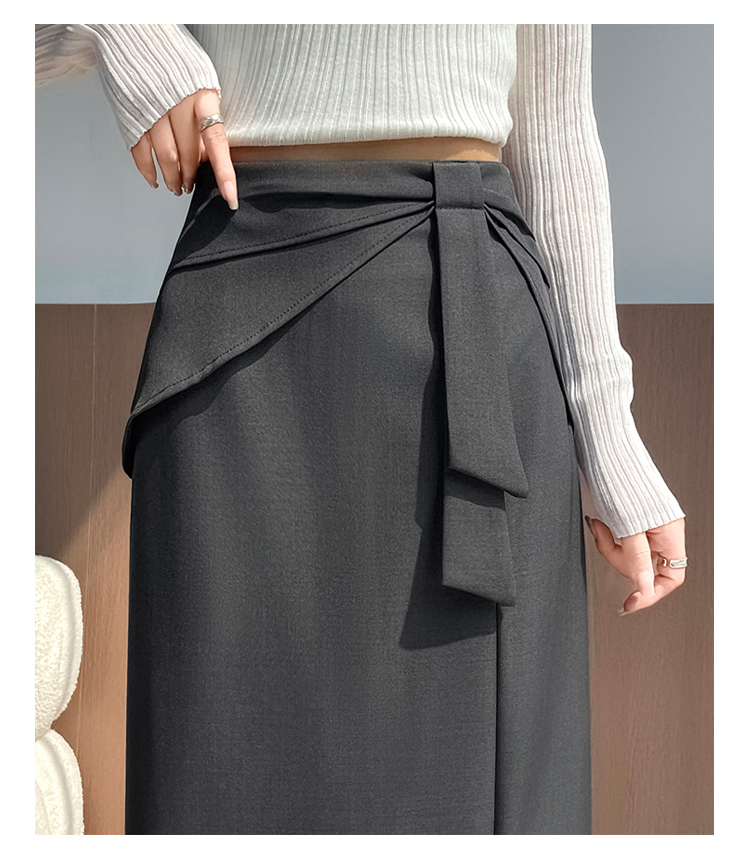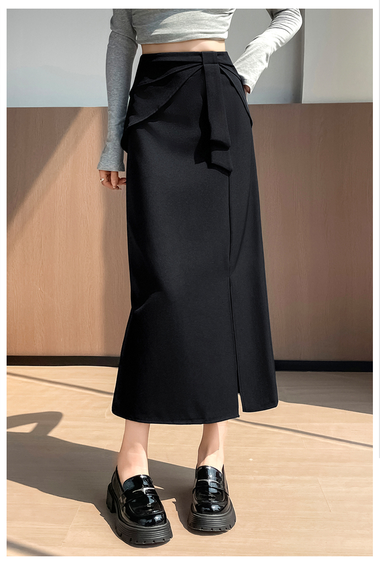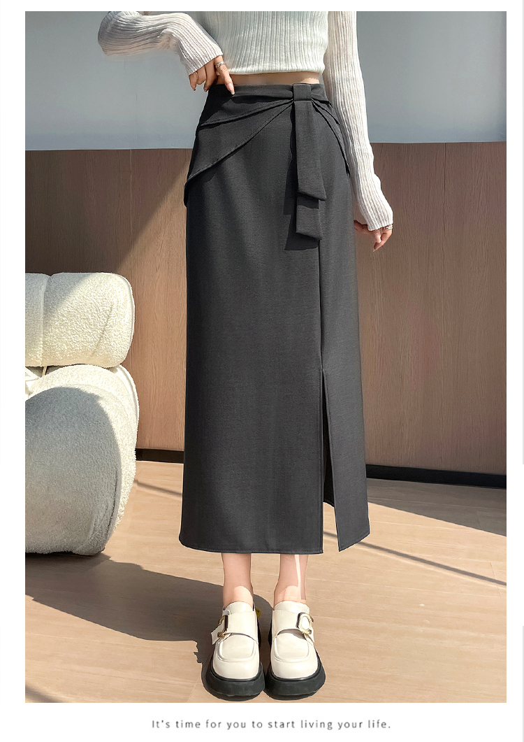 실사 이른 가을 새로운 디자인 센스 나비 매듭 트임 정장 반신 스커트 여성 다용도 하이웨이스트 길다 치마
