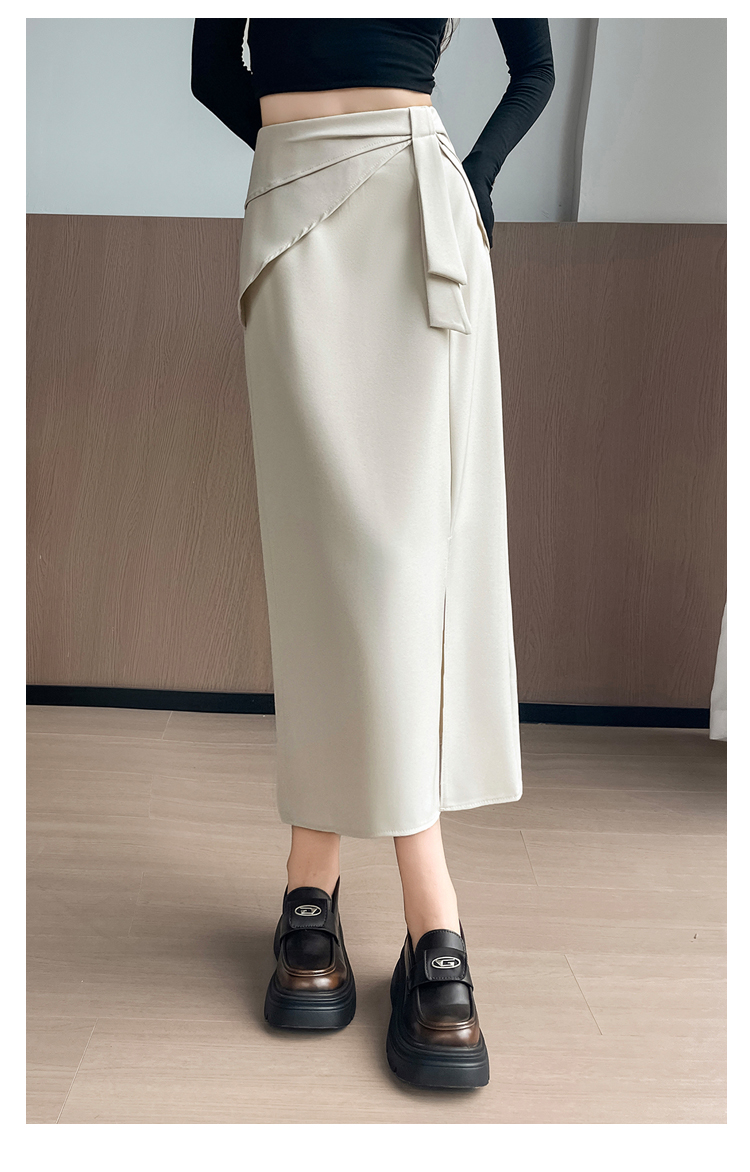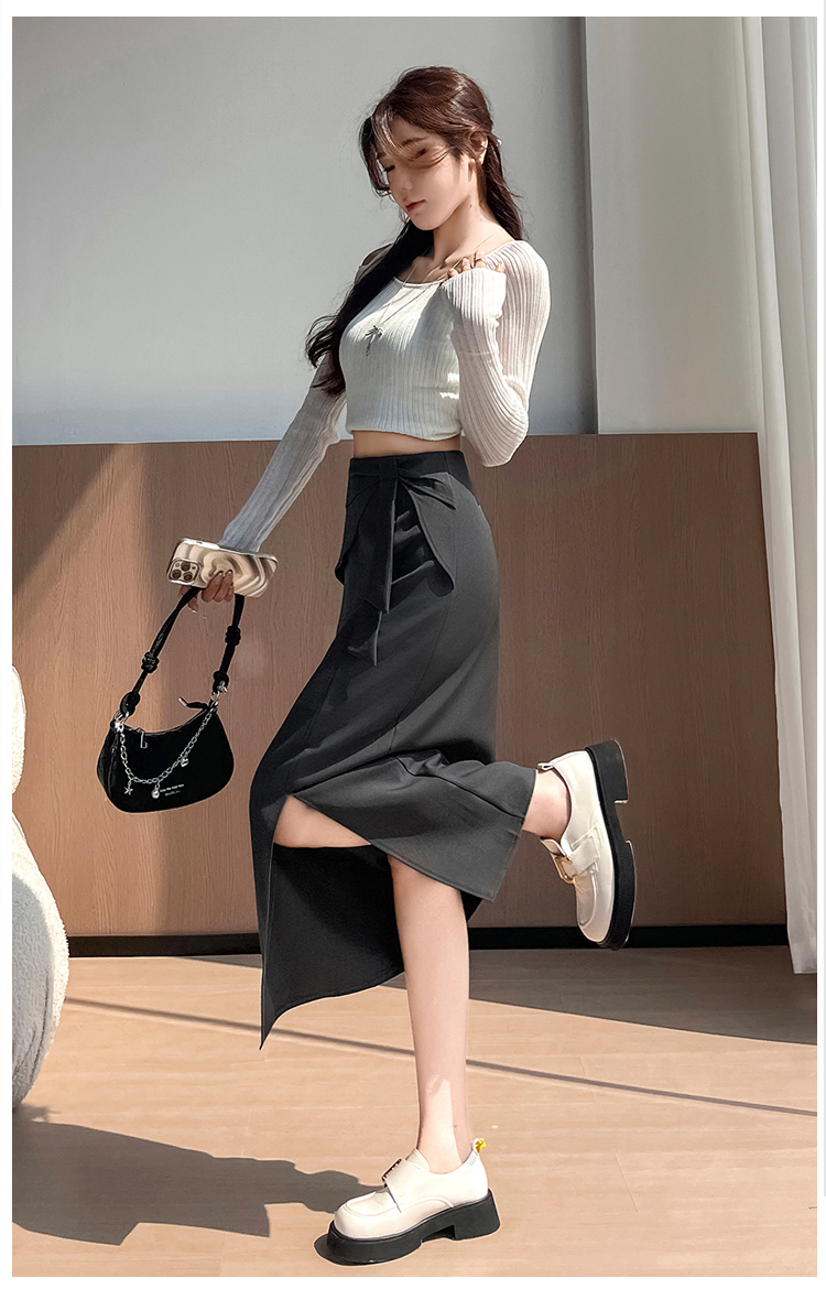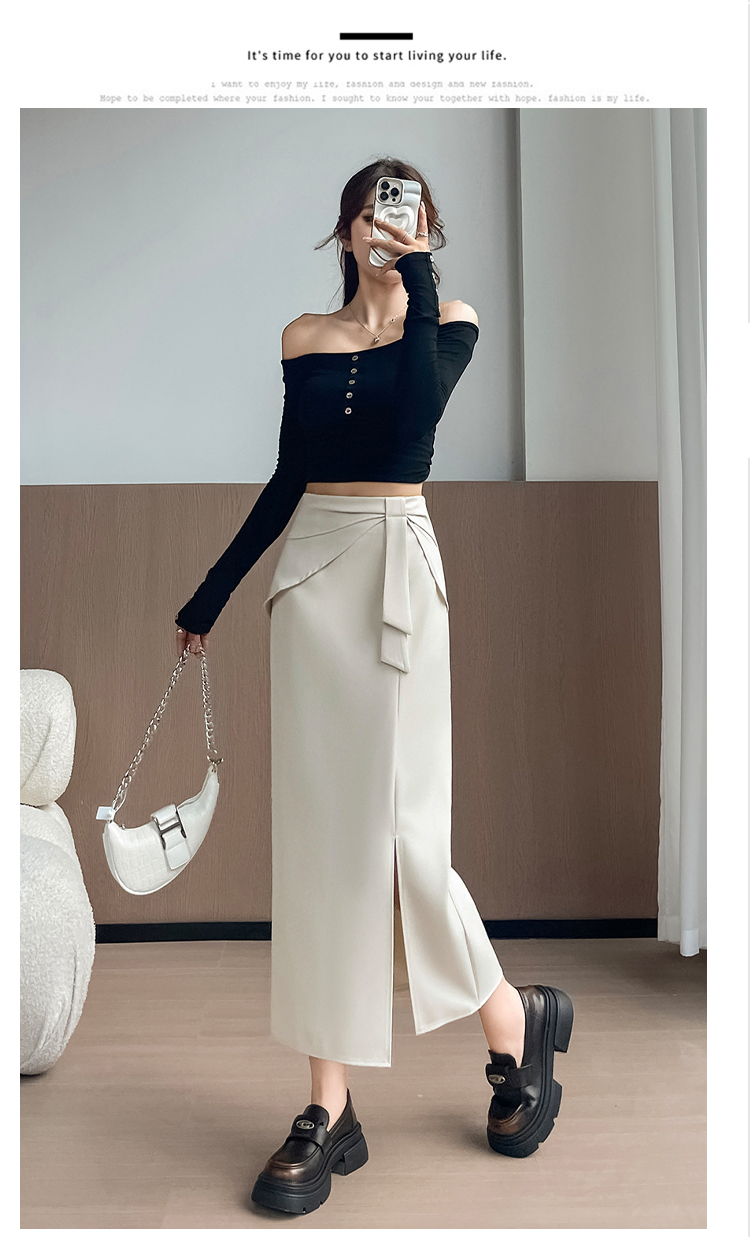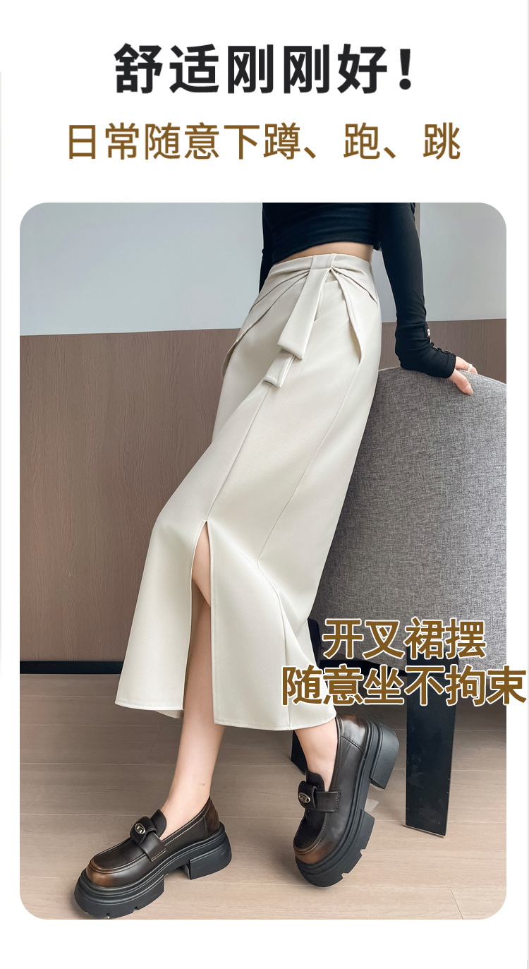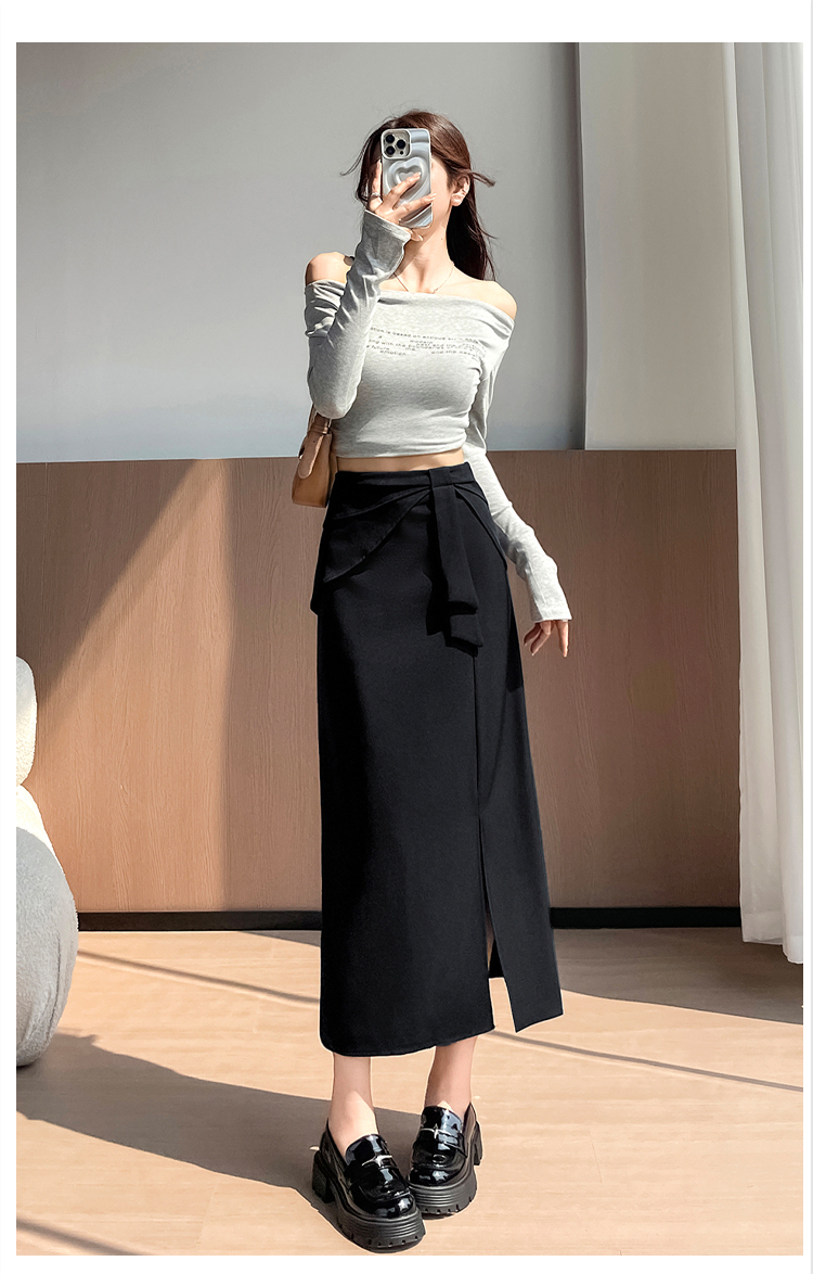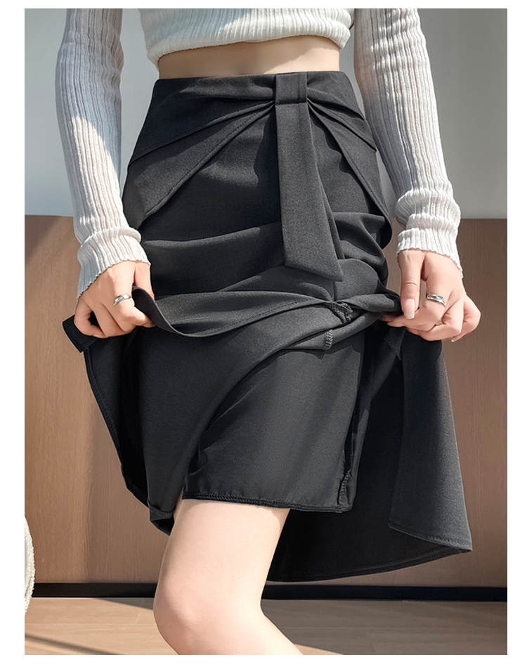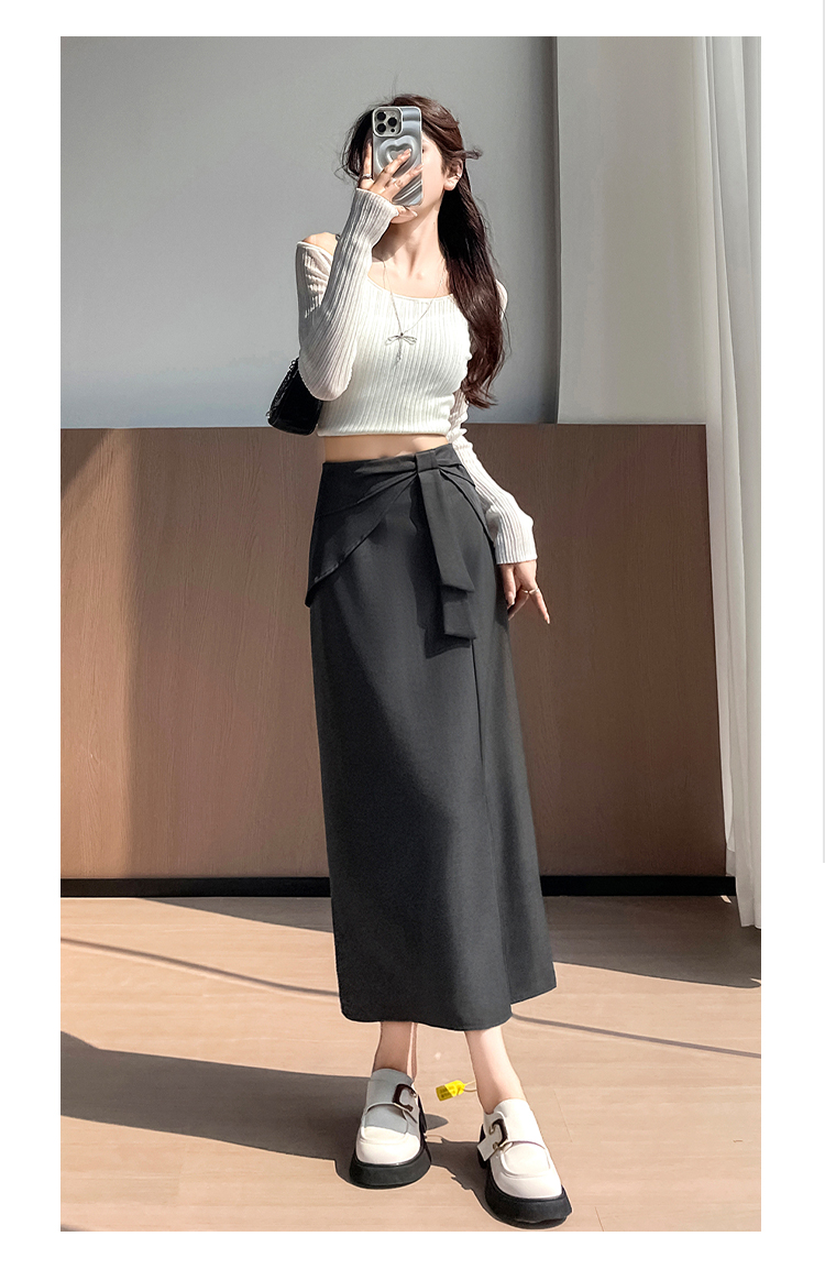 실사 이른 가을 새로운 디자인 센스 나비 매듭 트임 정장 반신 스커트 여성 다용도 하이웨이스트 길다 치마