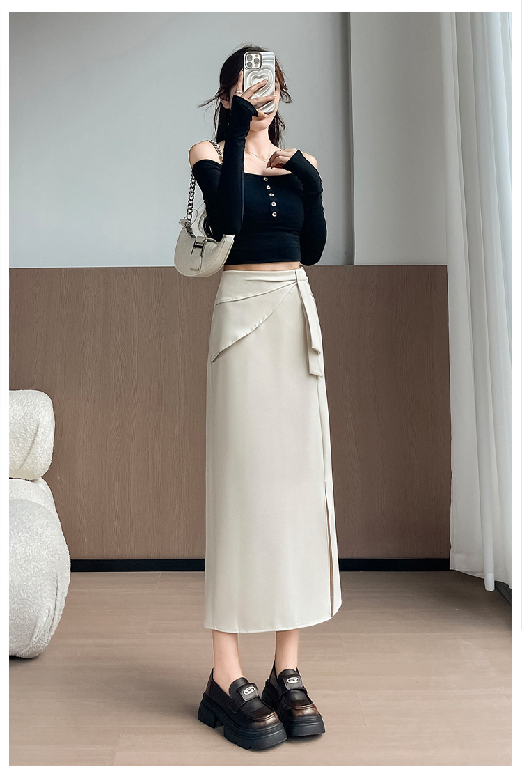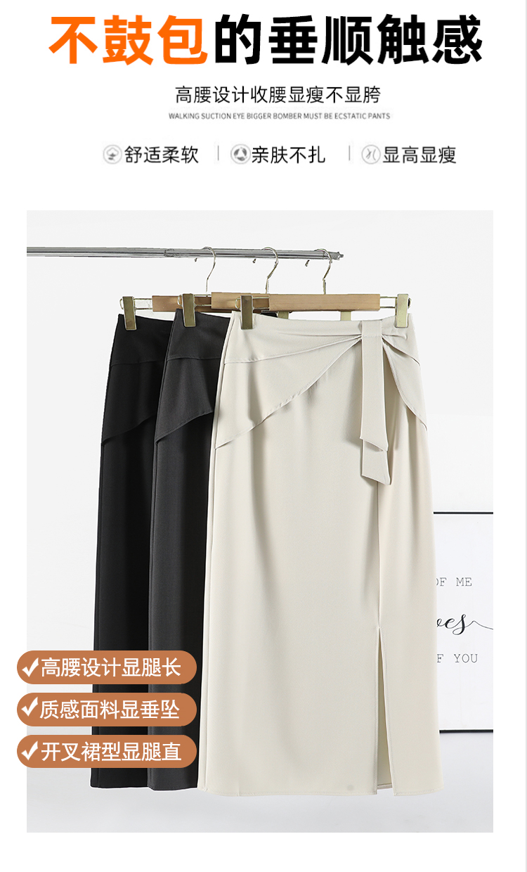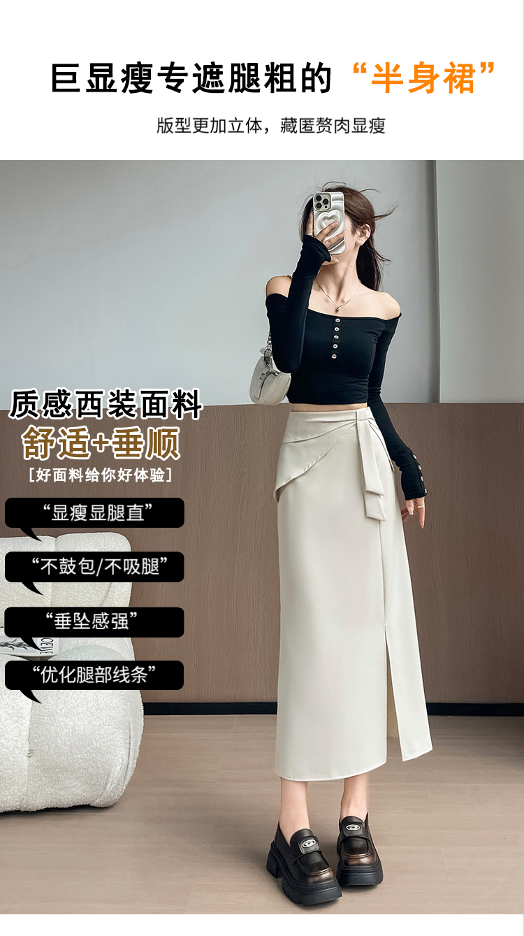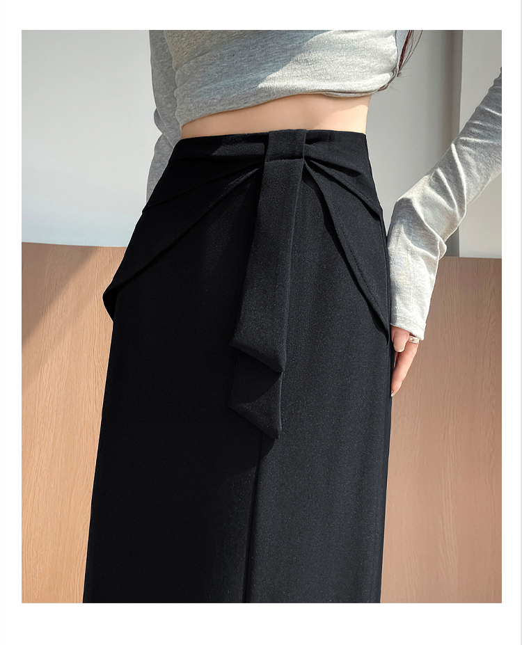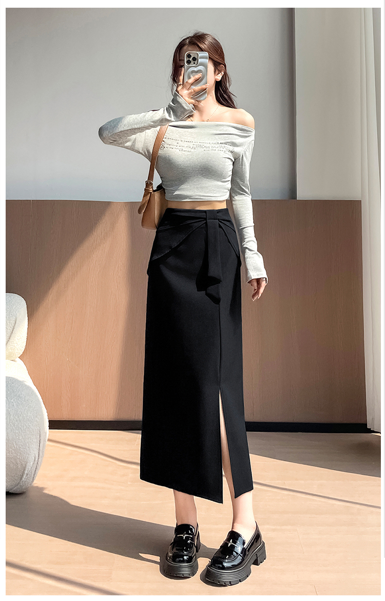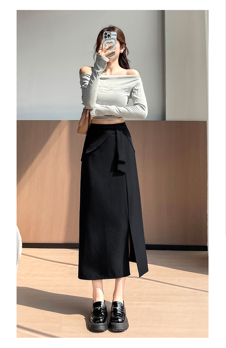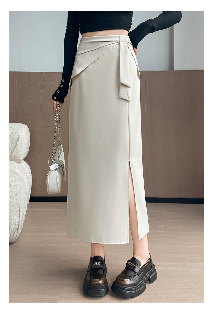 실사 이른 가을 새로운 디자인 센스 나비 매듭 트임 정장 반신 스커트 여성 다용도 하이웨이스트 길다 치마