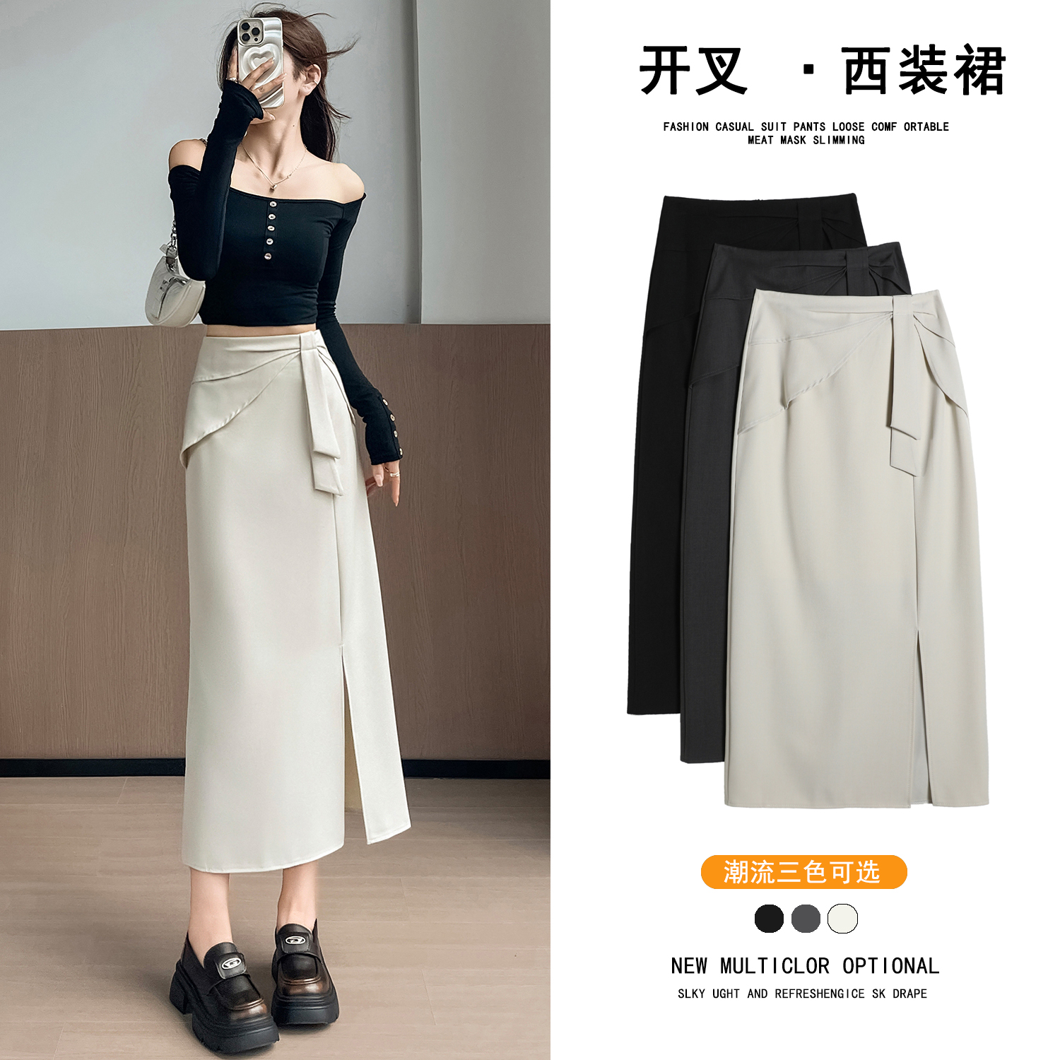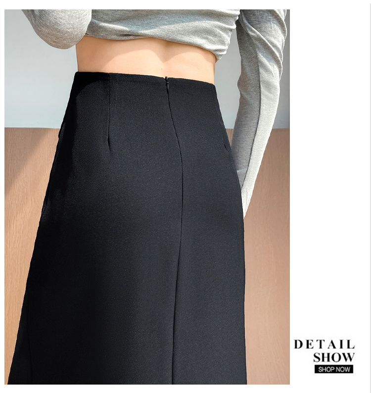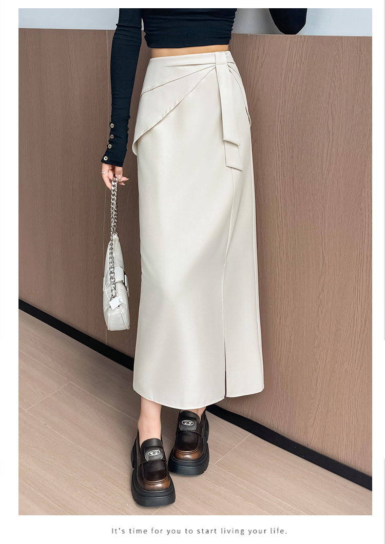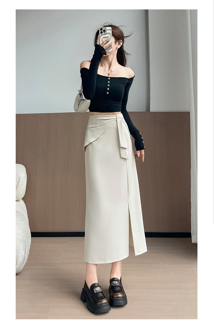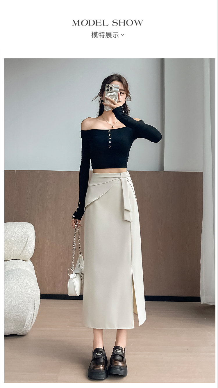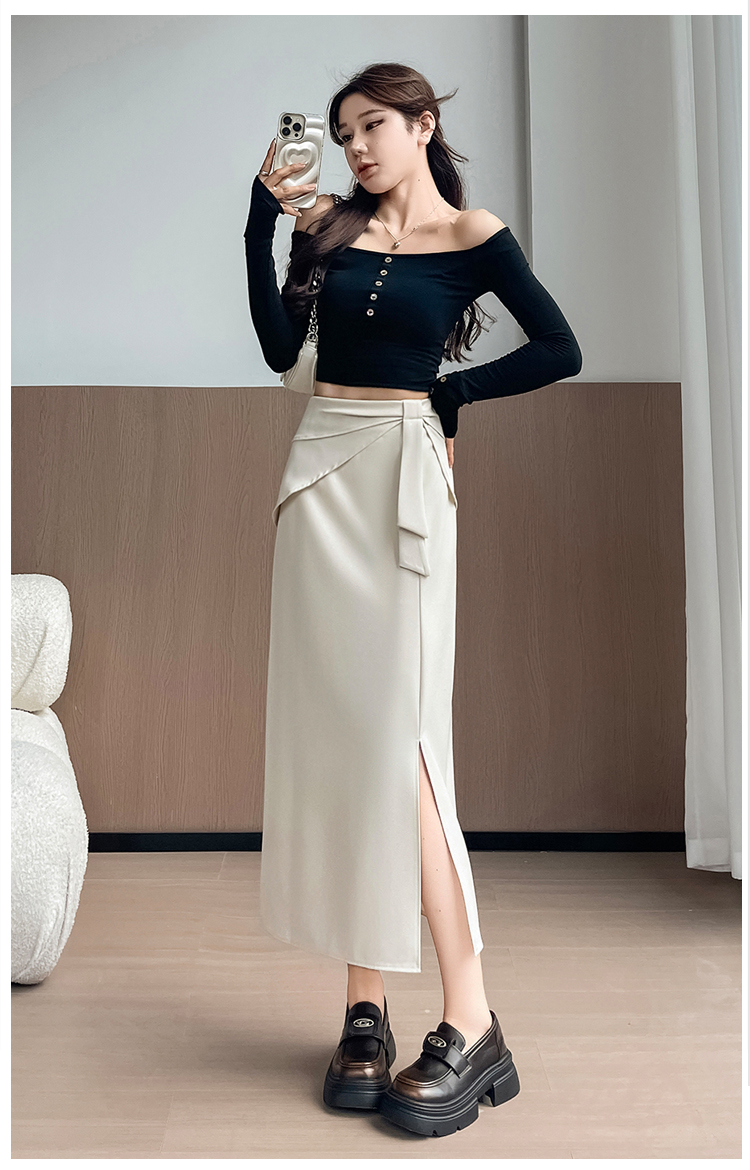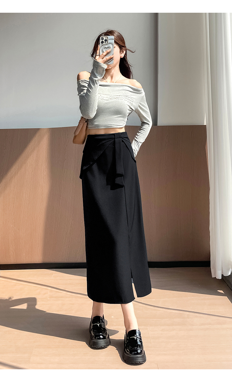 실사 이른 가을 새로운 디자인 센스 나비 매듭 트임 정장 반신 스커트 여성 다용도 하이웨이스트 길다 치마