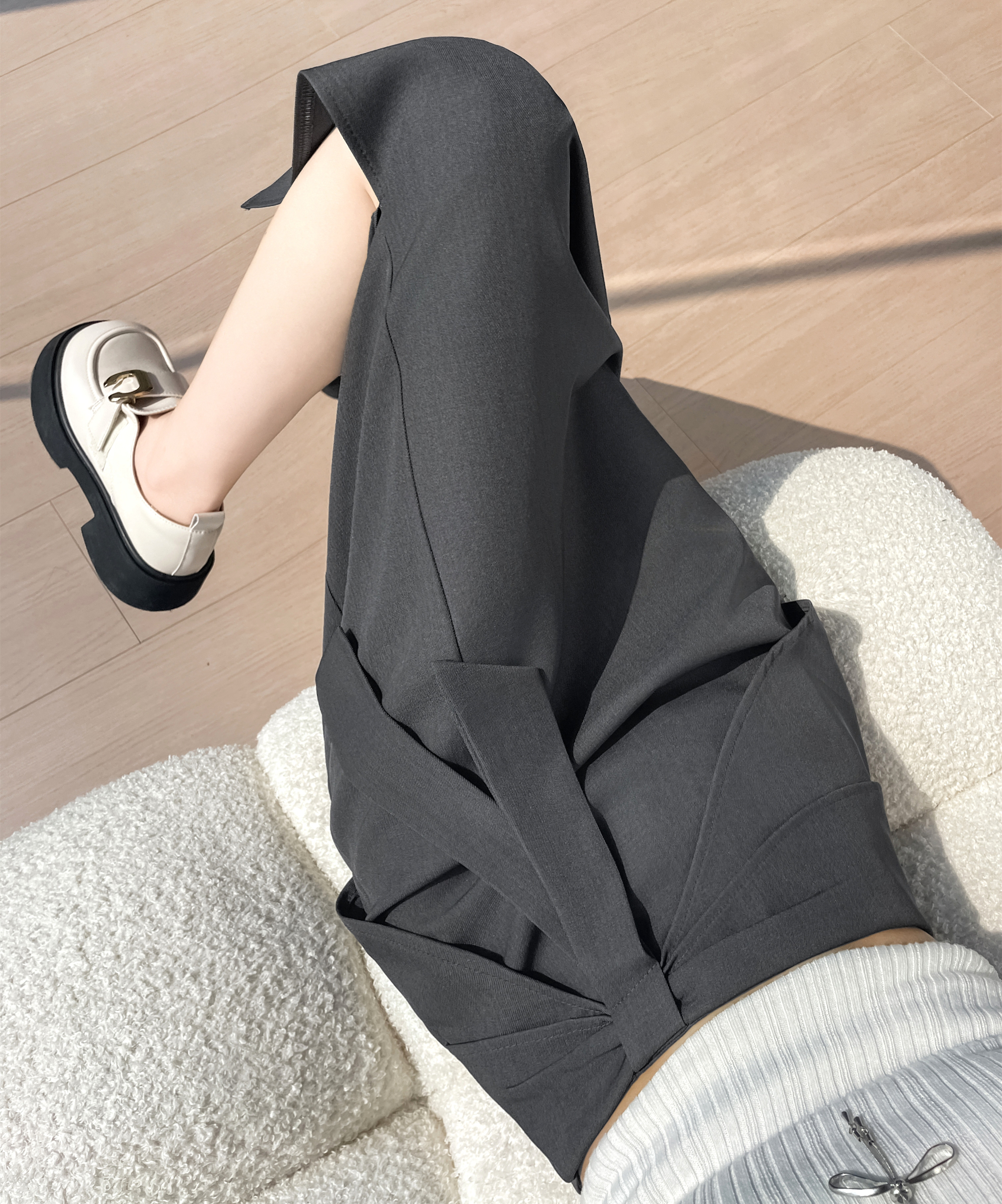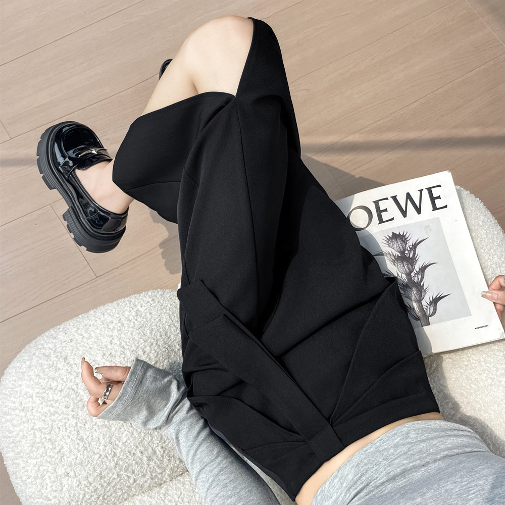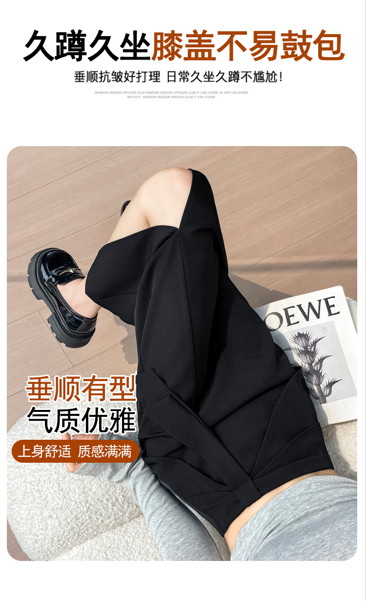 실사 새로운 워시 물 면 정장 스트레이트 팬츠 여성 하이웨이스트 슬림해 보이는 캐주얼 넓은 다리 길이 바지