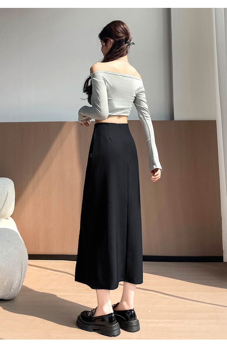 실제 촬영 정가 높은 허리 슬림 플리츠 정장 롱 스커트 와일드 빅 스윙 스커트 하프 바디 A 라인 치마