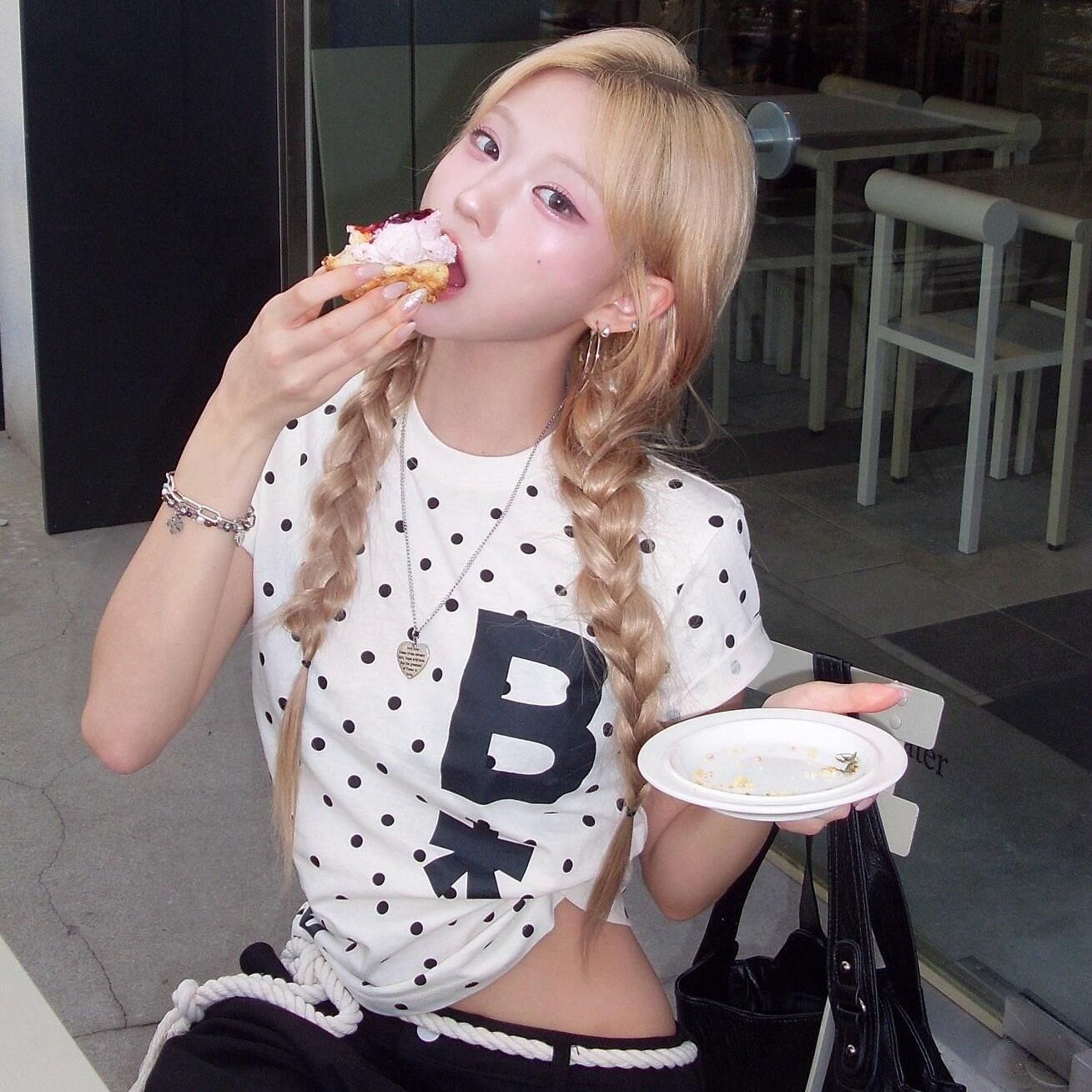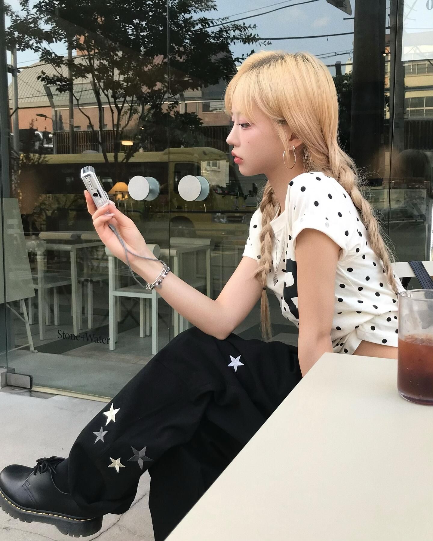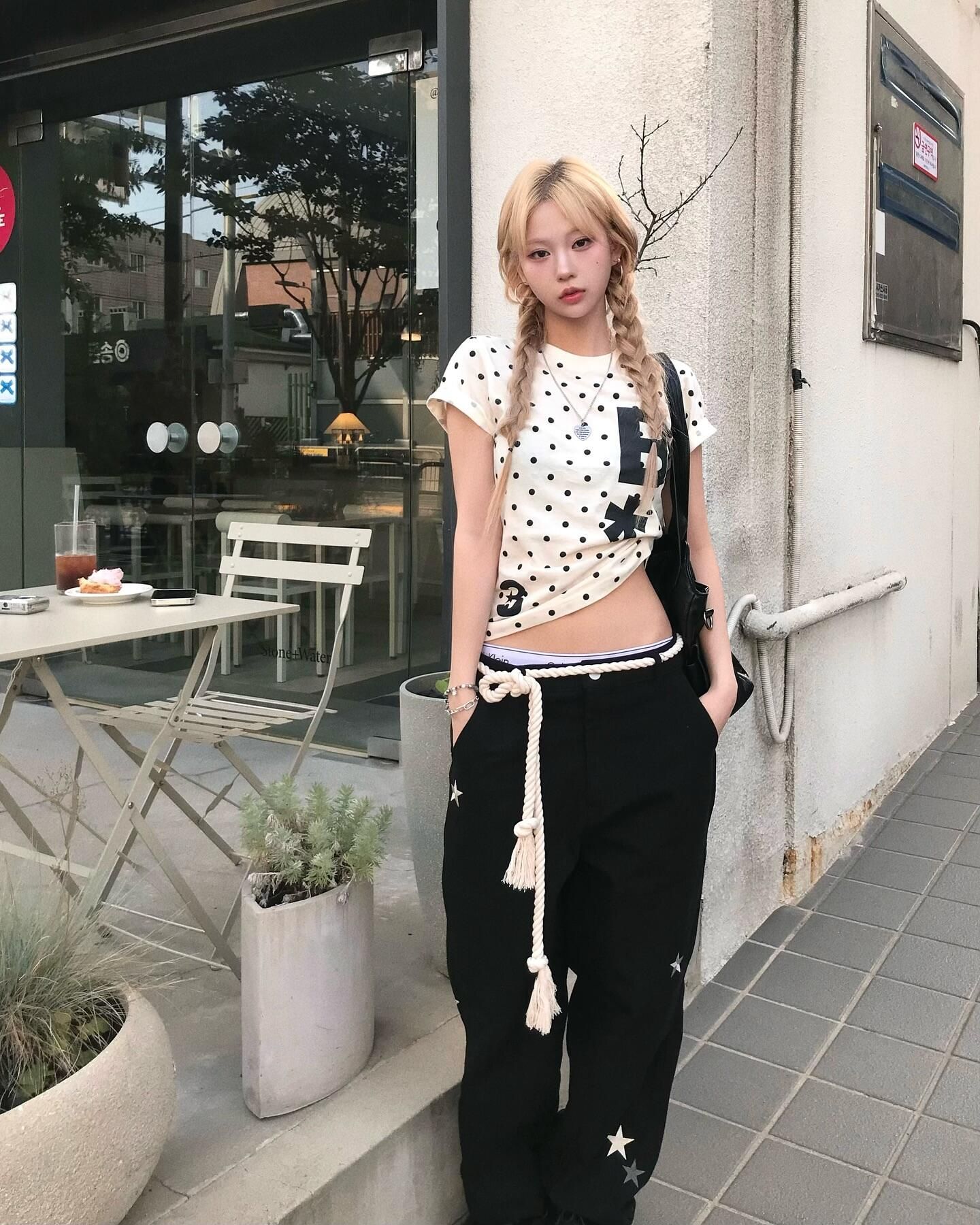 아메리칸 한 부서 알파벳 전체 인쇄 도트 무늬 화이트 반팔 티셔츠 여성 여름 달콤한 스타일 몸매 가꾸기 슬림해 보이는 쇼트 스타일 맨위