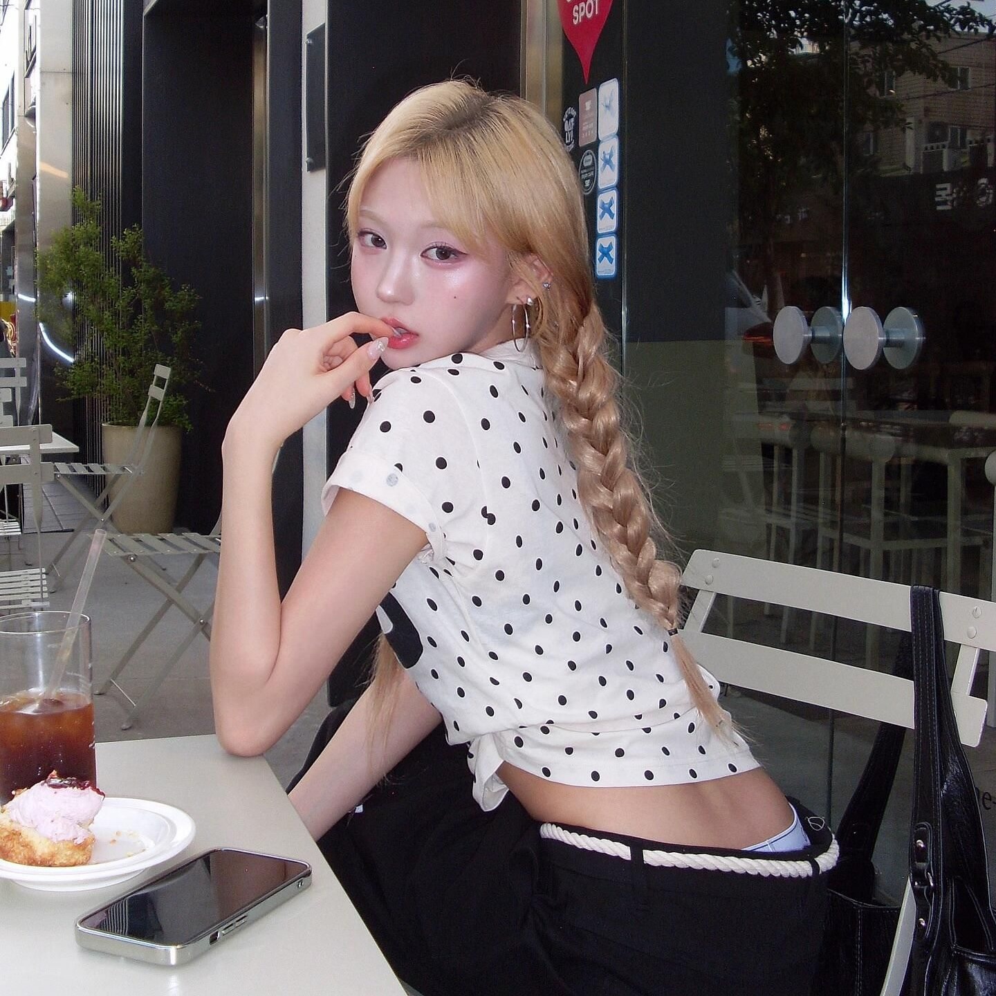 한 부서 화이트 도트 무늬 알파벳 라운드 넥 긍정적 인 어깨 반팔 티셔츠 여성 여름 몸매 가꾸기 달콤한 차가운 바람 핫걸 쇼트 스타일 맨위