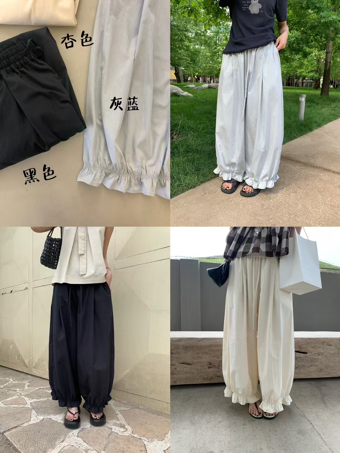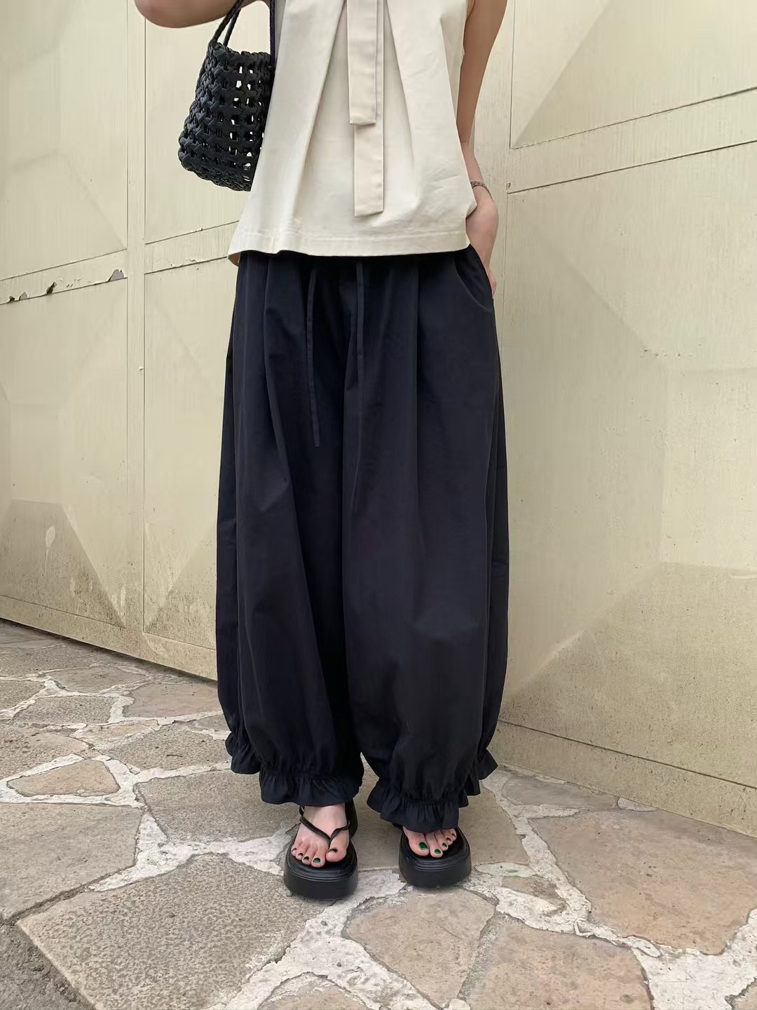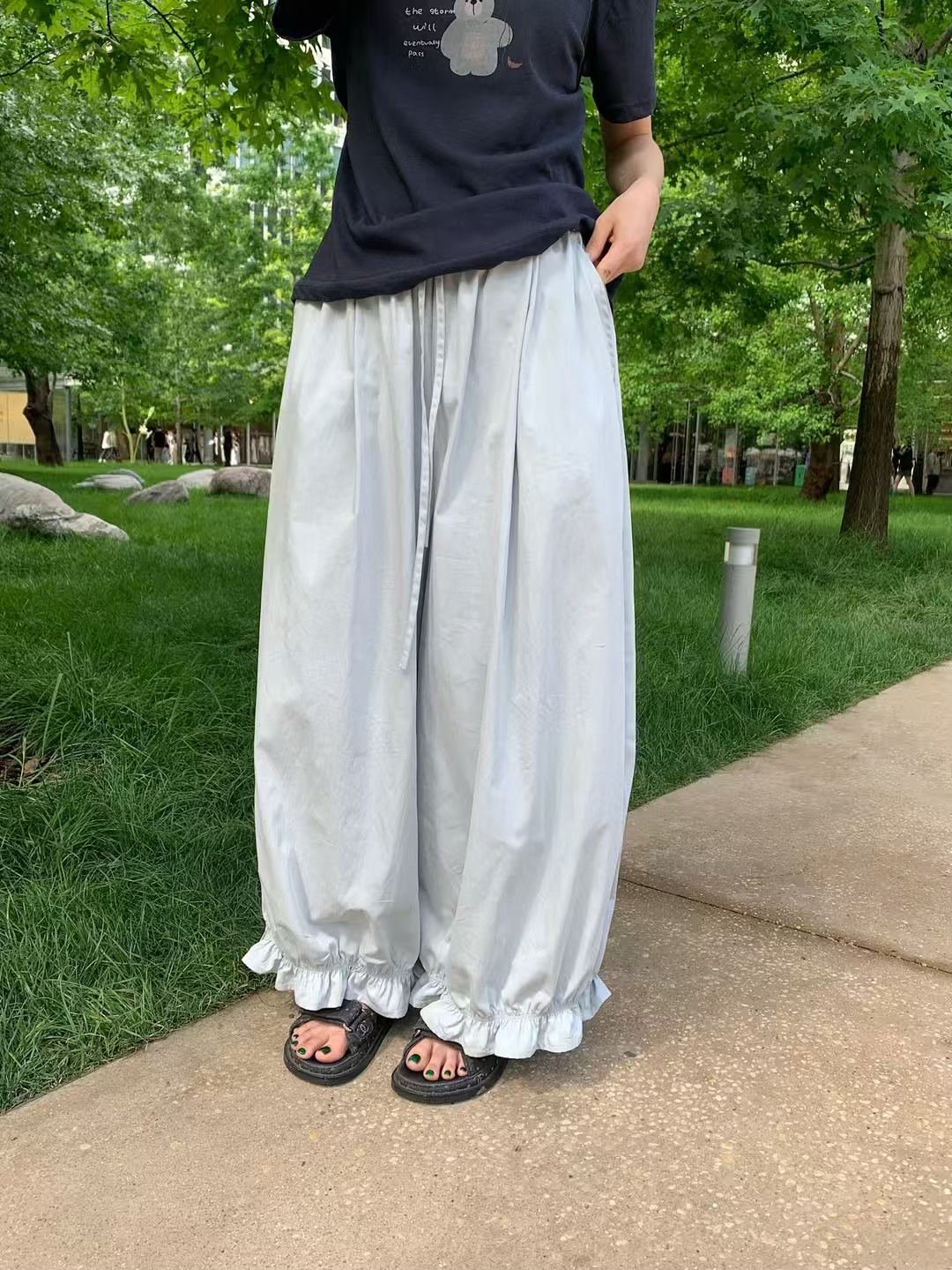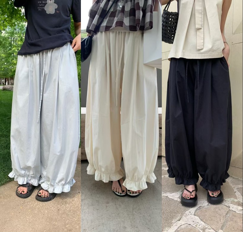 프릴 방귀 커튼 캐주얼 바지 여성 2026 여름 조거 둘 착용 달콤함 풍선 바지 작은 키 넓은 다리 길이 바지