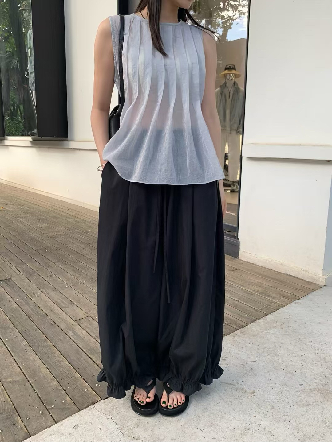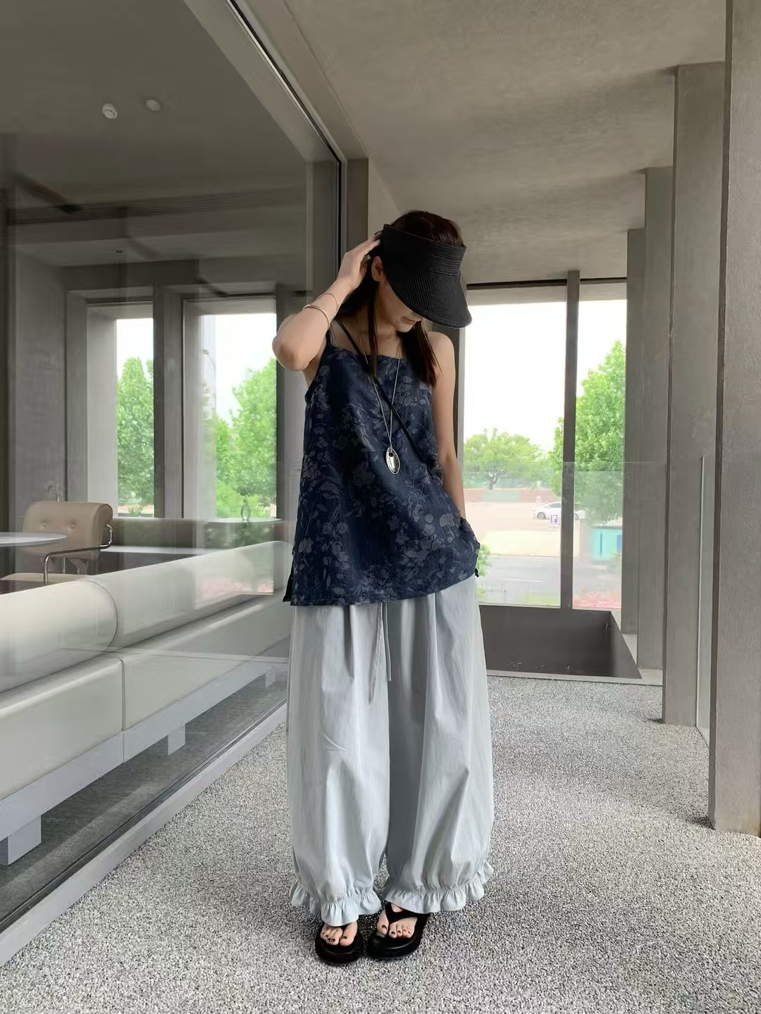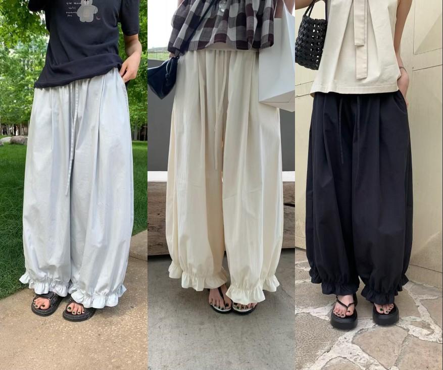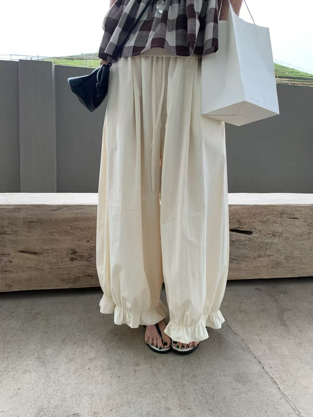 프릴 방귀 커튼 캐주얼 바지 여성 2026 여름 조거 둘 착용 달콤함 풍선 바지 작은 키 넓은 다리 길이 바지