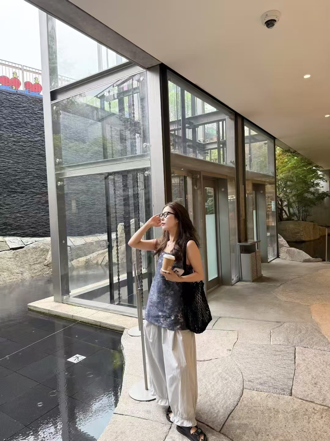 일본식 스트라이프 와이드 레깅스 바지 여름 섹션 하이웨이스트 루즈핏 느긋한 도루 센스 바닥 청소 다용도 캐주얼 바지 작은 키