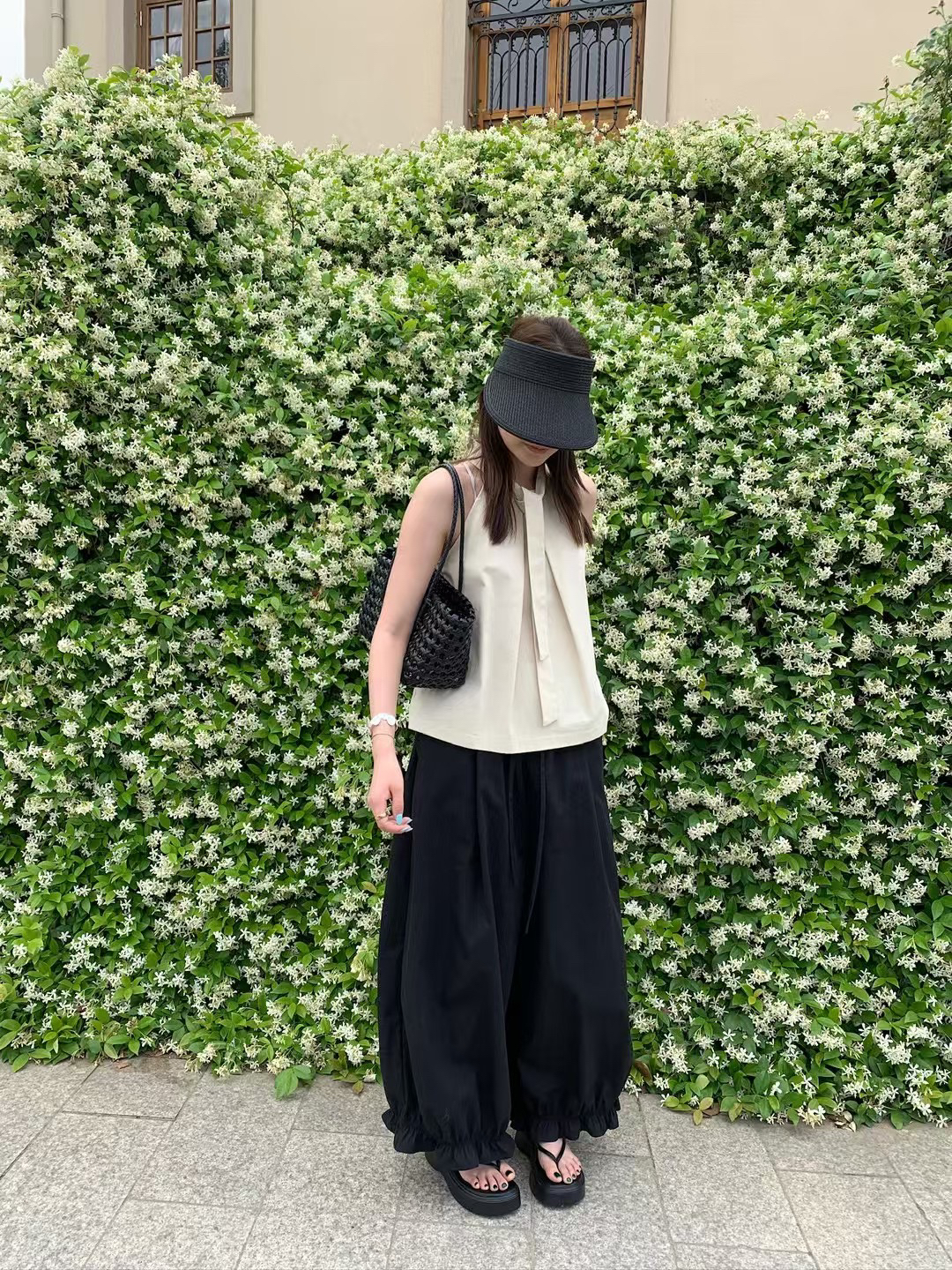 여름 새로운 2026 한국 스타일 하이웨이스트 슬림해 보이는 꽃밭 측면 디자인 루즈핏 다용도 캐주얼 긴 바지