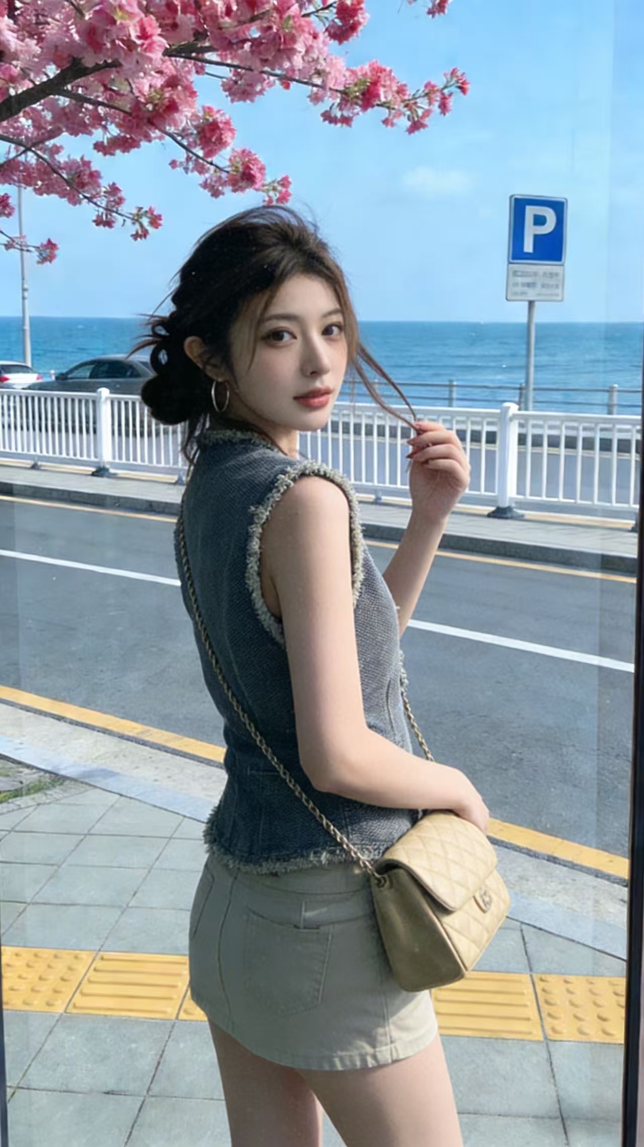 아마 민소매 베스트 반신 치마 세트 여성 2026 슈퍼 화재 열린 봄 착용 가져 가라. 자이언트 잘 생긴 캐주얼 고유 한 디자인 센스