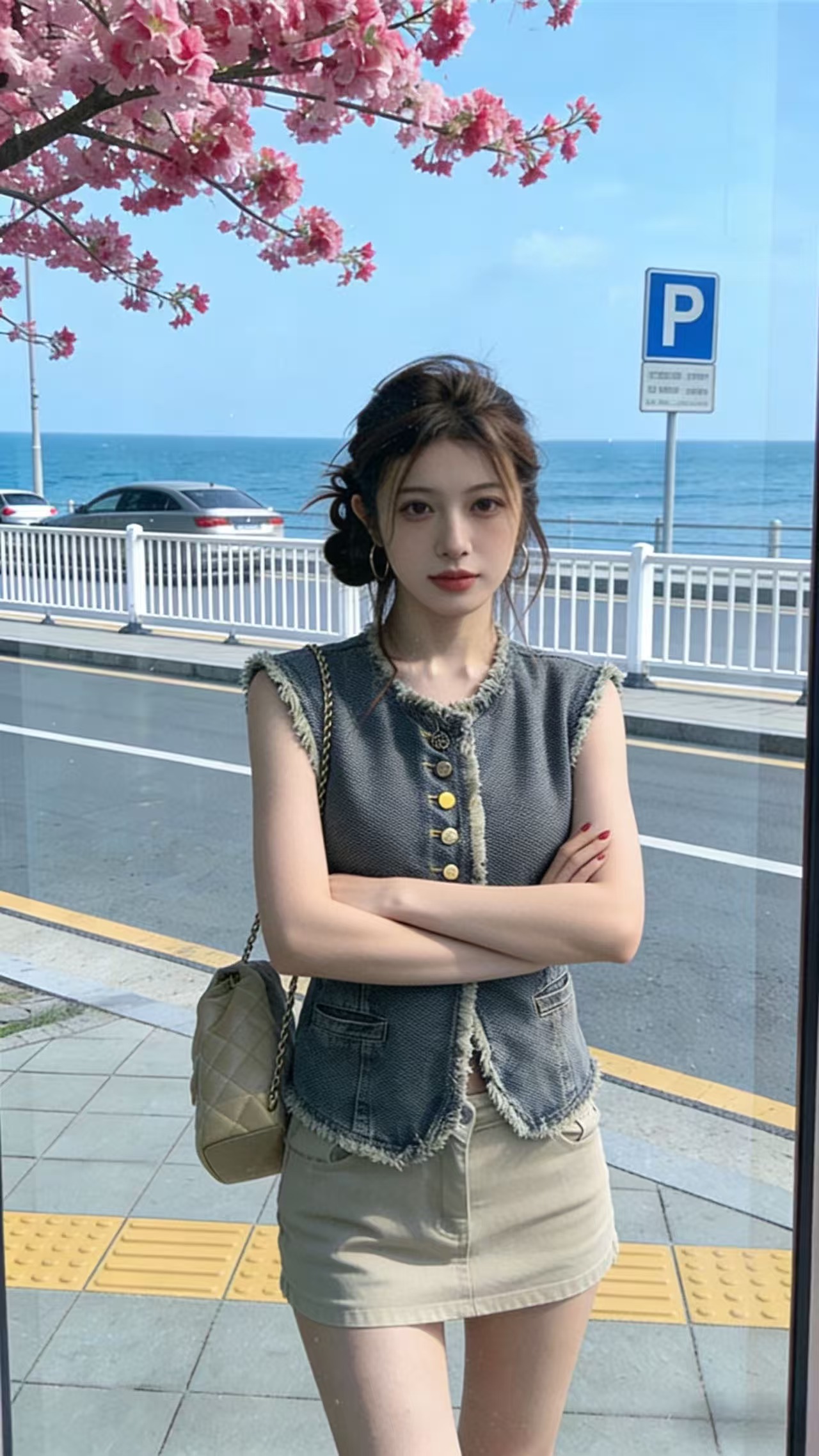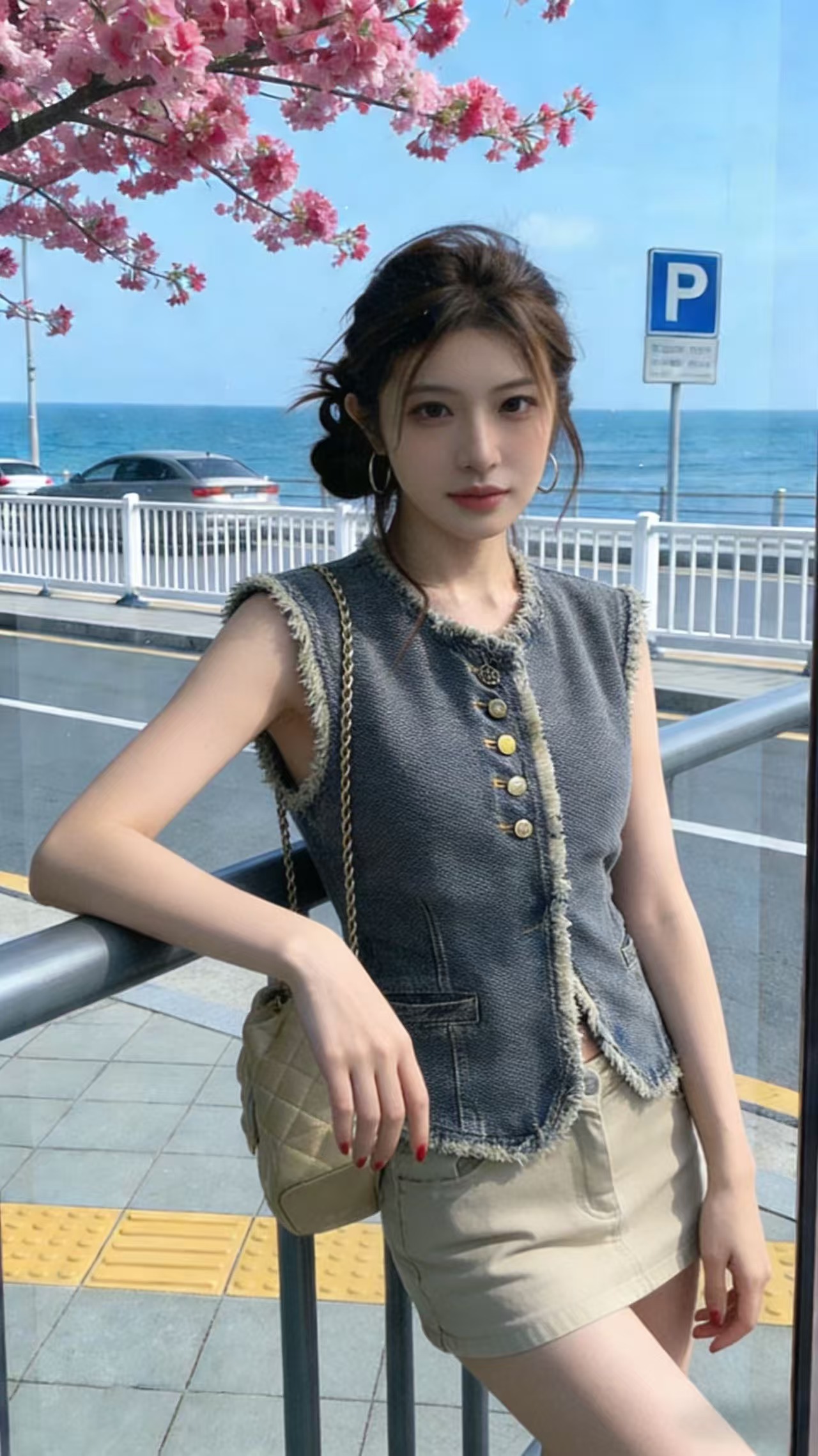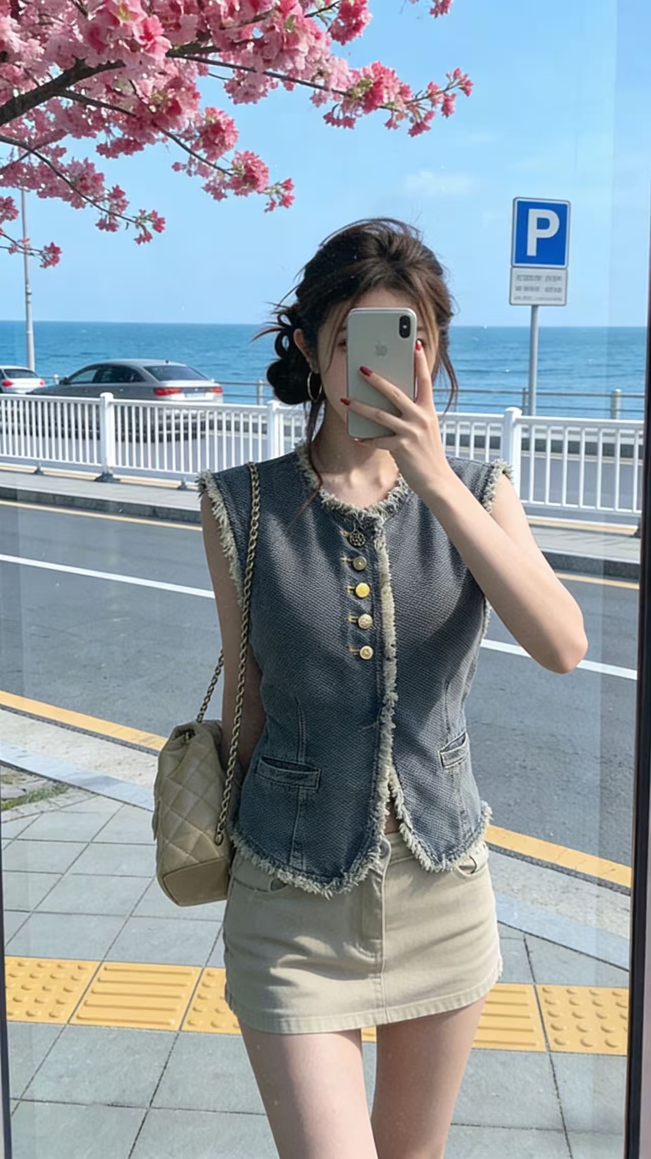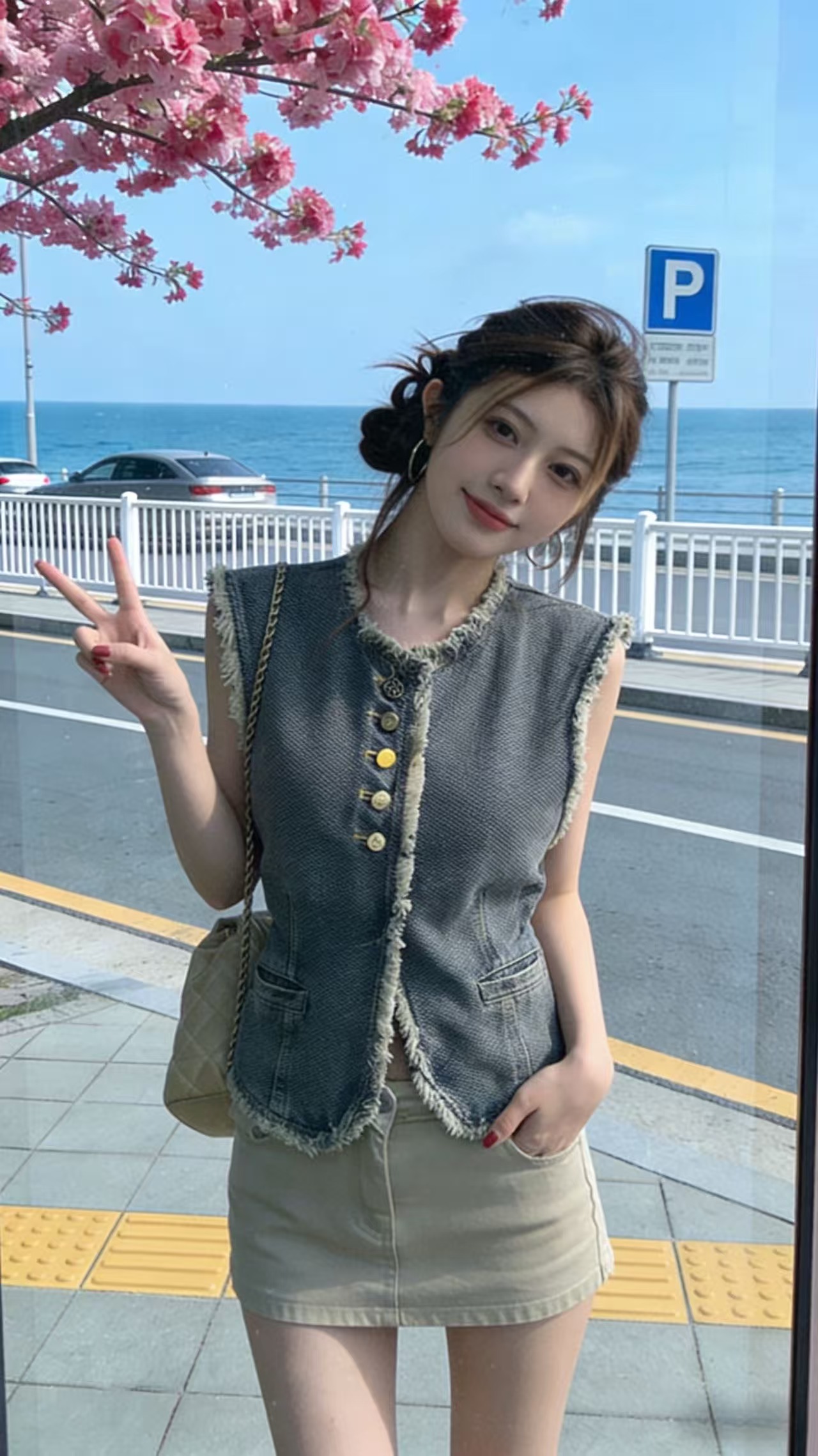 일본식 외부 가져 가라. 스택 착용 셔츠 데님 베스트 조끼 여성 봄 가을 2026 새로운 작은 키 레트로 어깨 조끼