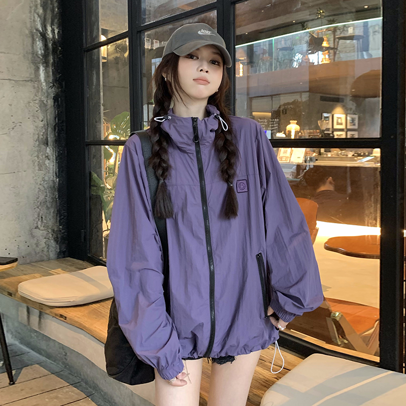 실사 보라색 자외선 차단 의류 여성 여름 얇고 가벼운 통기성 사이클링 자외선 차단 복 운동 블라우스 얇은 코트