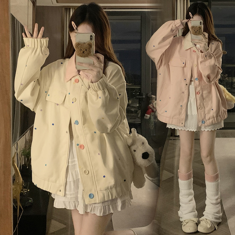 실사 새로운 색상 도트 무늬 재킷 맨위 봄 가을 오픈 가디건 데님 재킷
