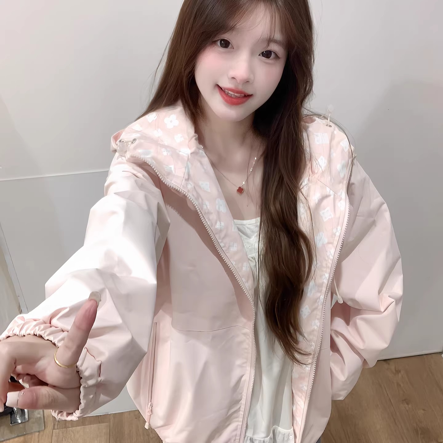 핑크색 요금 외투 여자 2026 새로운 봄 슈퍼 잘 생긴 루즈핏 캐주얼 후드 방풍 재킷 맨위